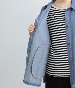 やや薄手のコットンデニムを540gと軽やかに仕立てました。やわらかな肌なじみでさらりと羽織れる、デイリー使いにぴったりな素材感です。