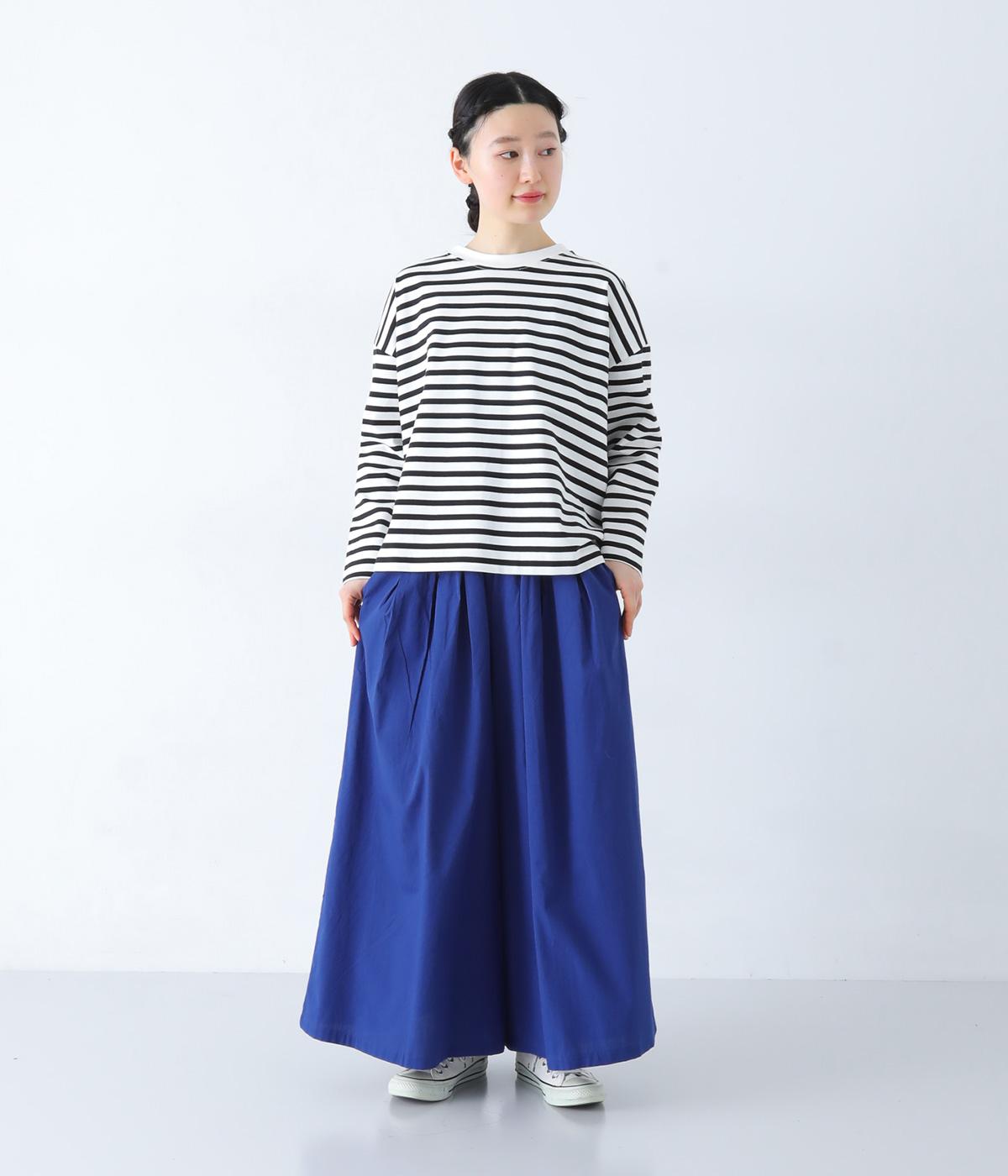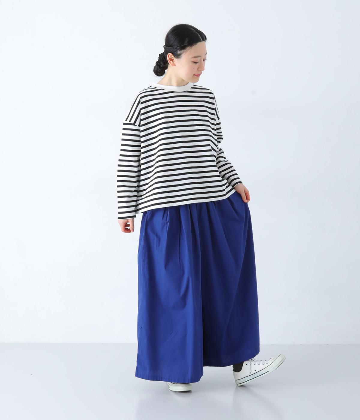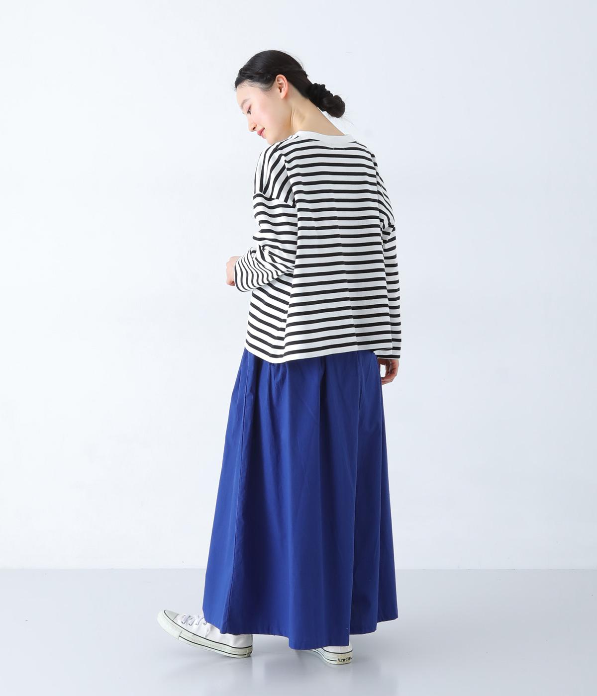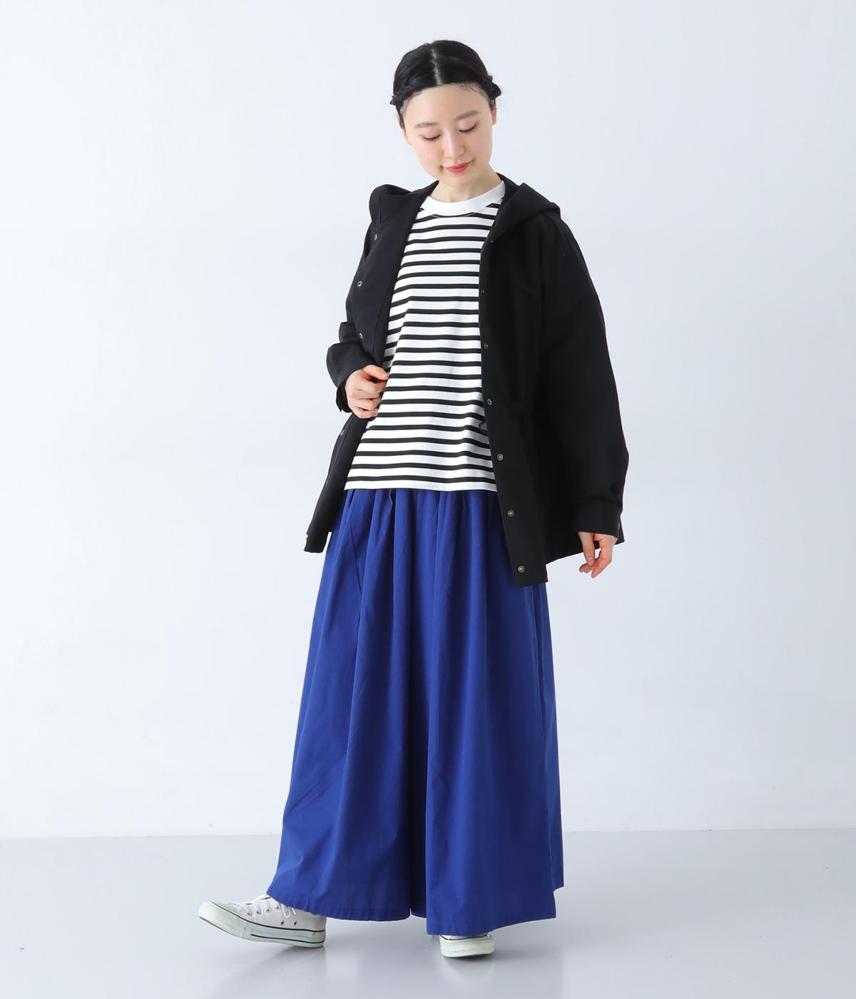 軽くてさらりとした肌ざわりのコットンポプリン生地です。ほどよいハリ感があり、シルエットをきれいにキープしてくれます。春夏は一枚で、肌寒い季節は中にタイツやレギンスなどを仕込んで着まわすのも◎。