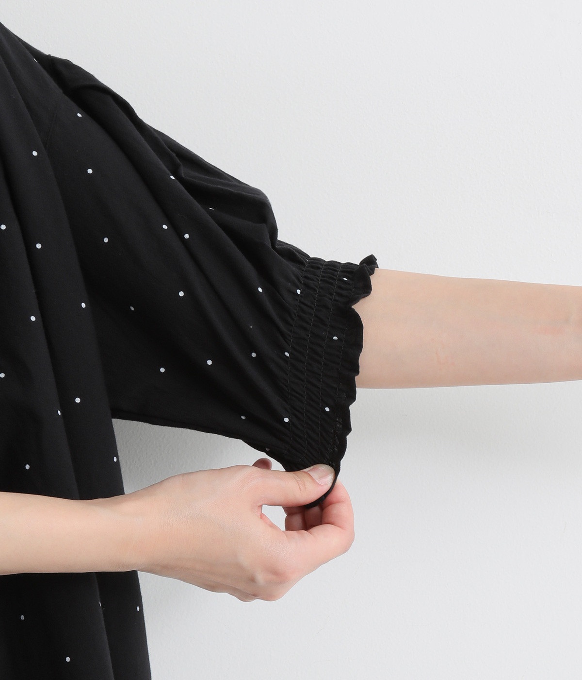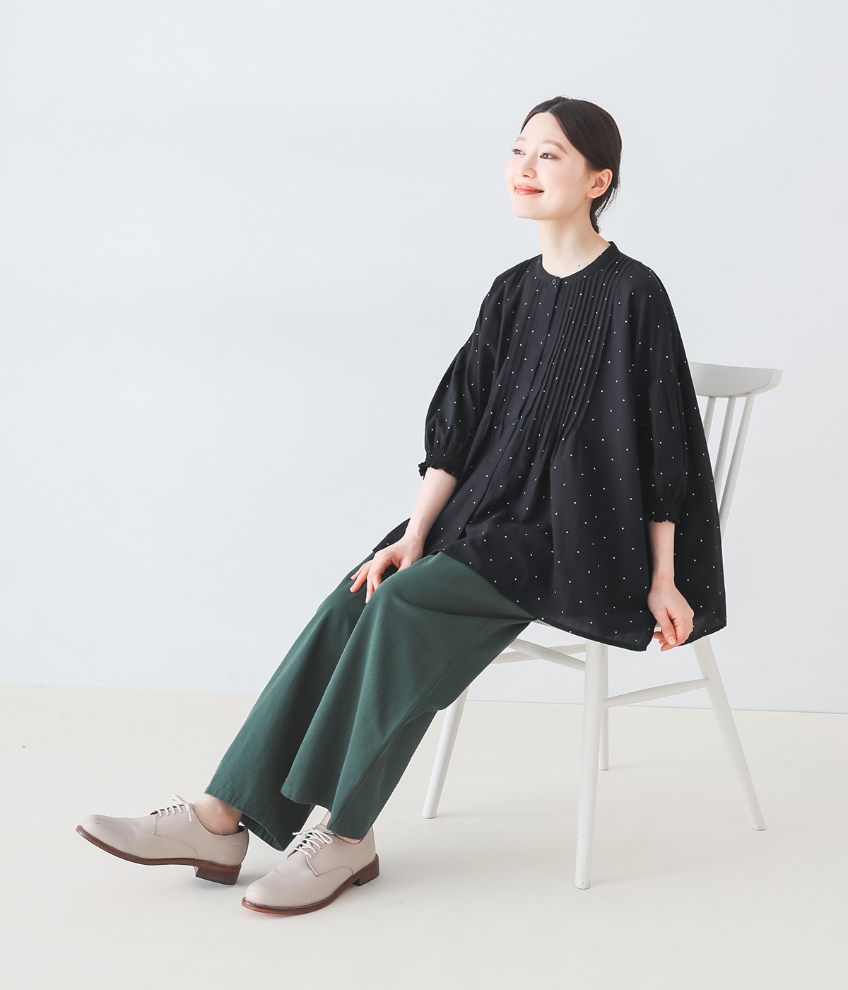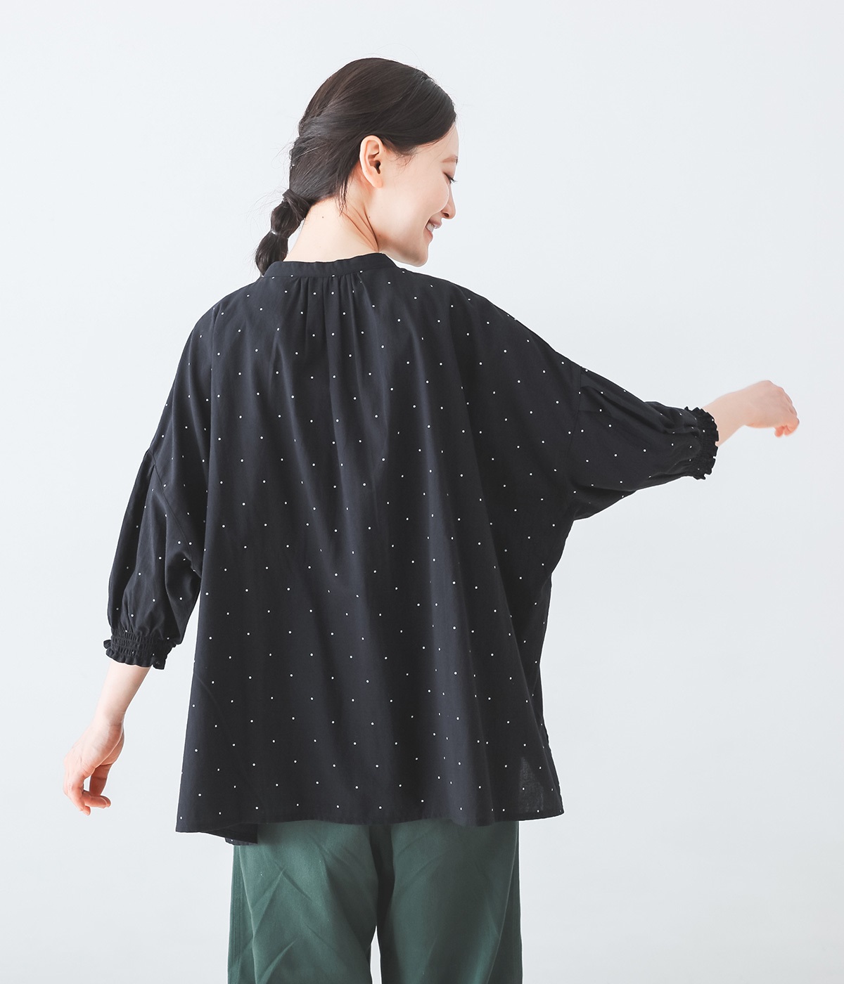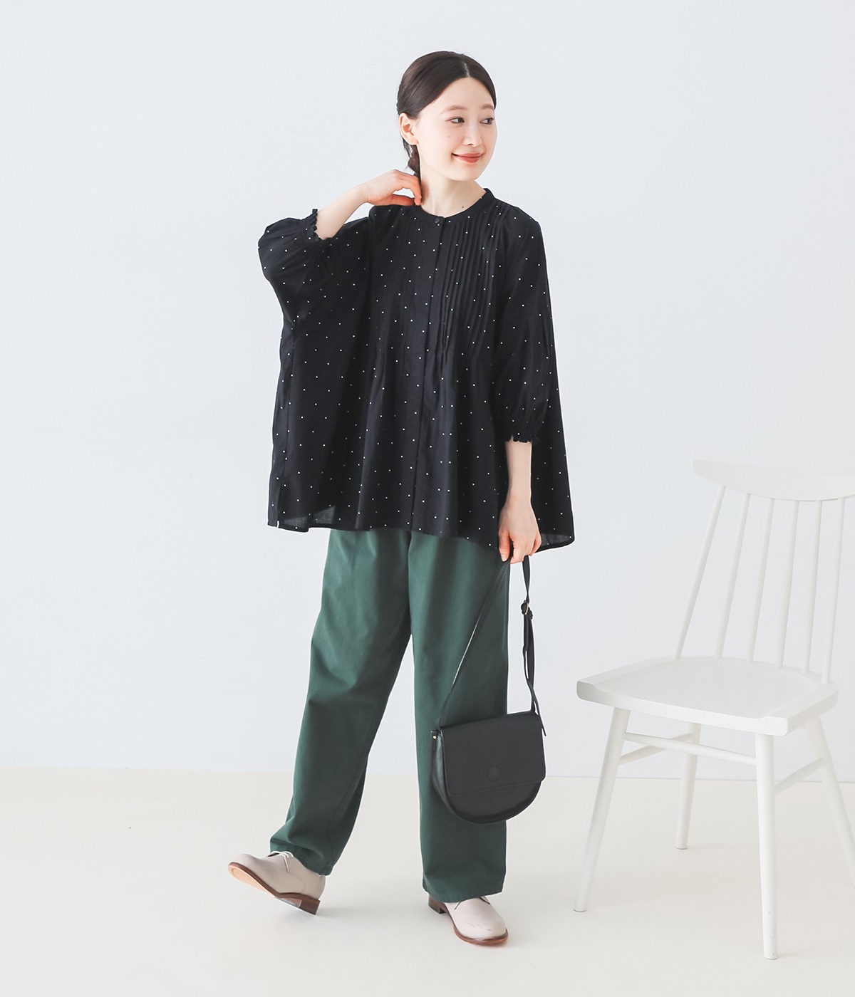 >は、さりげない小さな柄が魅力的。甘さ控えめなドットのため、柄もの初心者さんにもおすすめしたいアイテムです。