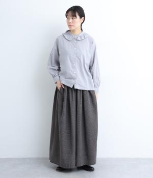 やわらかであたたかみのある、リサイクル素材を用いたネル生地を使用。綿やレーヨンで肌触りの良さを叶え、ポリエステルの混率を高めて速乾性や軽やかさを足しました。厚すぎずはきやすい生地感です。