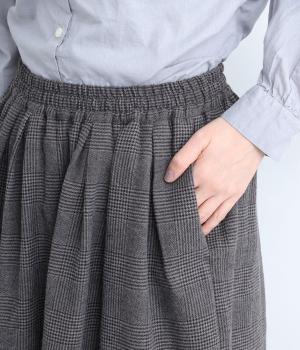 股上を深くとり、タックでボリューム感を出しました。ゆったりとしたリラックスシルエットにチェック柄生地で、こなれ感のあるトラッドスタイルの完成。ウエストはオールゴム&内紐でイージーに仕上げました。