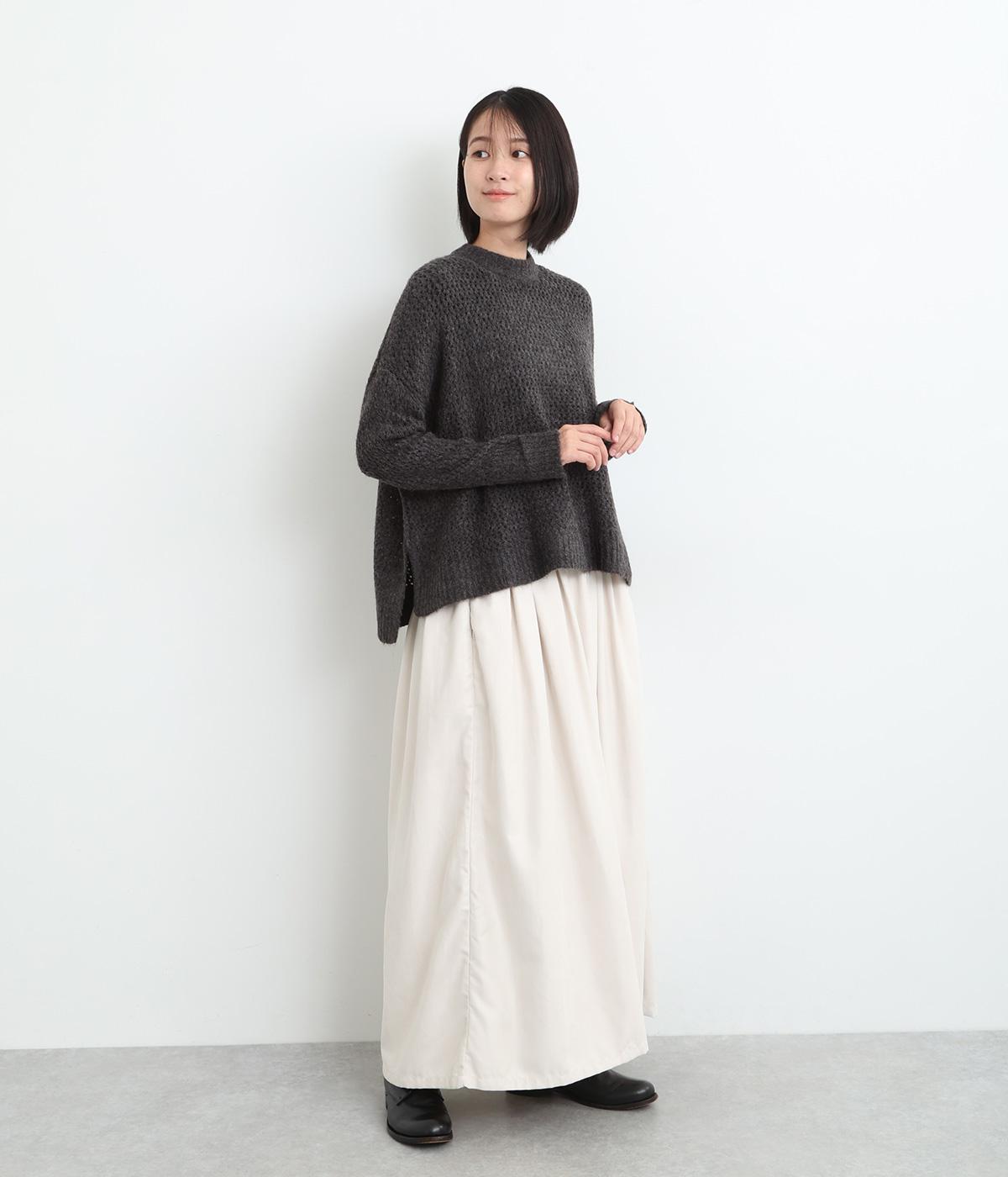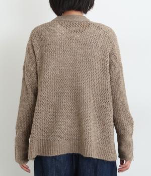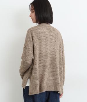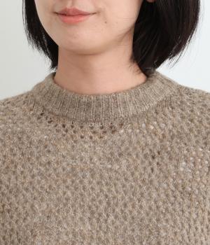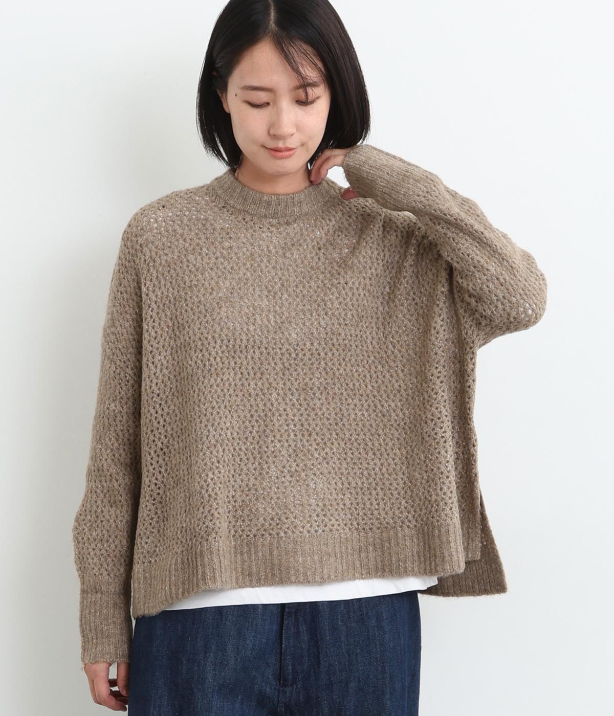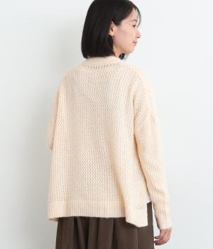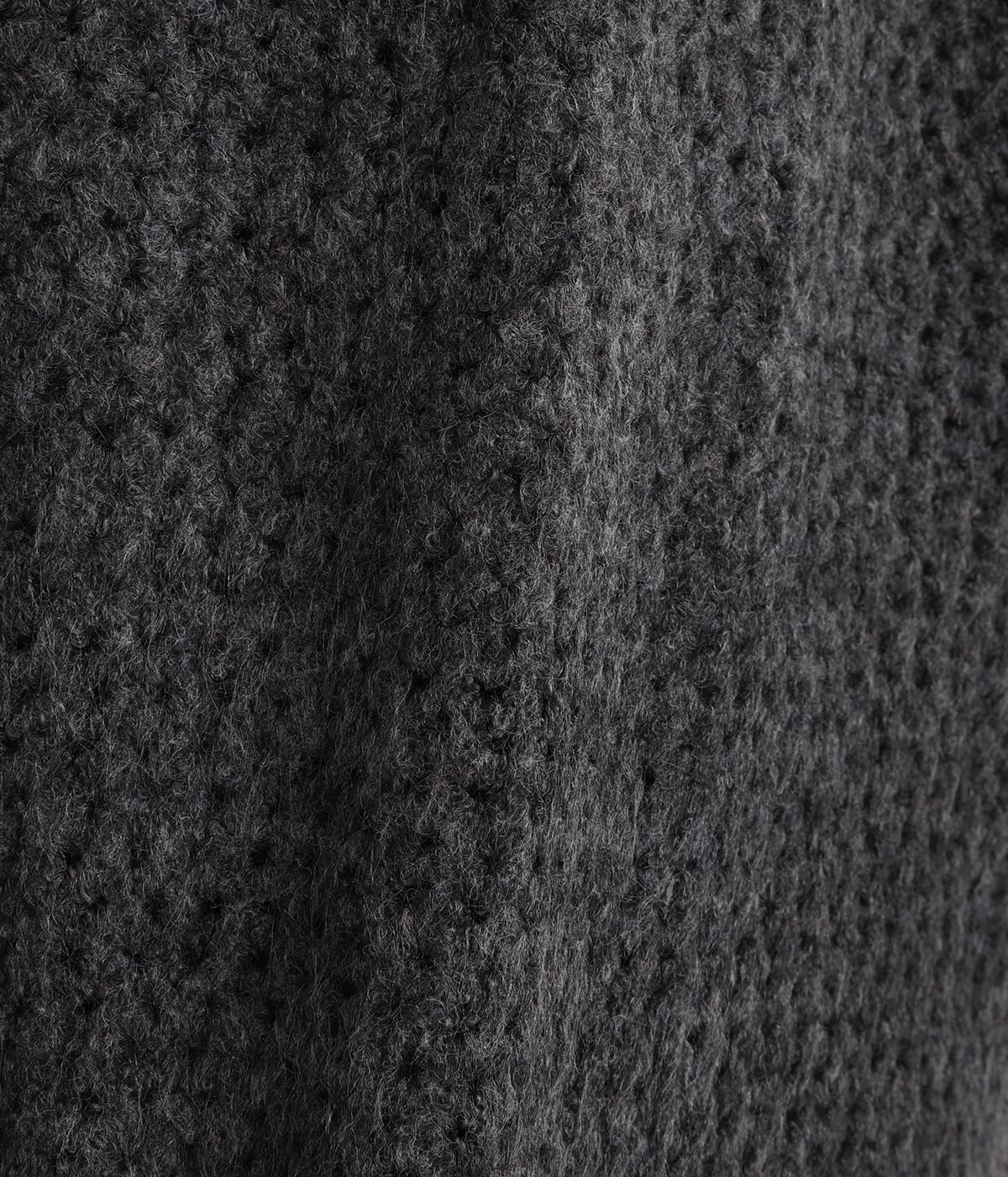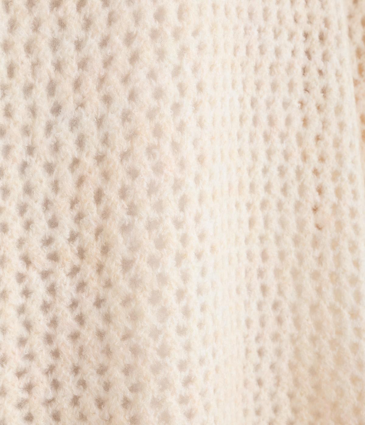 ふわりと儚げな表情がやさしい印象をもたらす混紡ニットを使用しています。もっちりとしたほどよく肉感のある中厚手で、透かし編みによって軽やかに仕上げました。