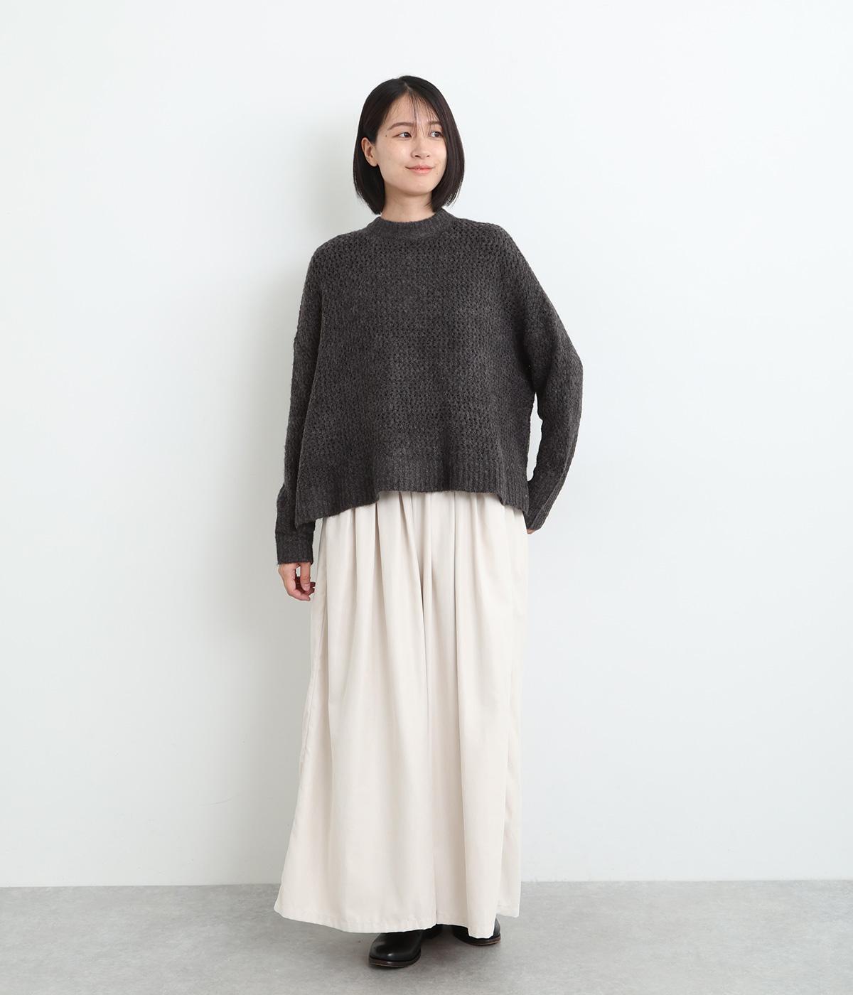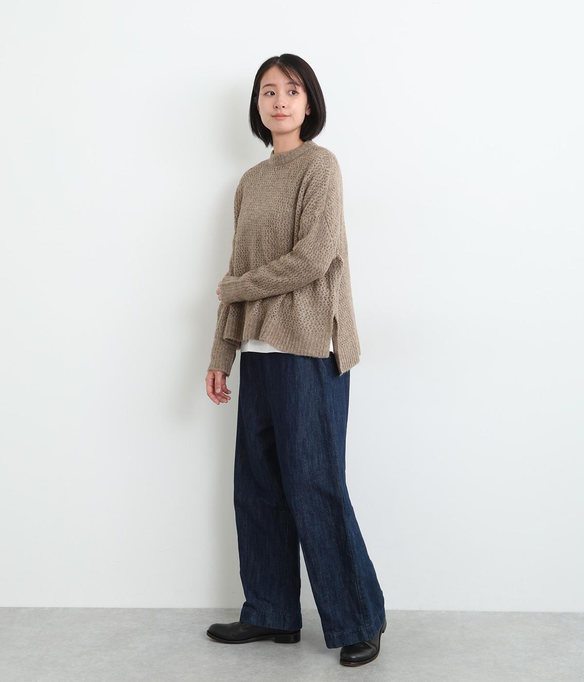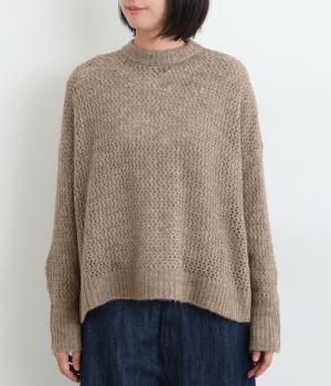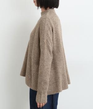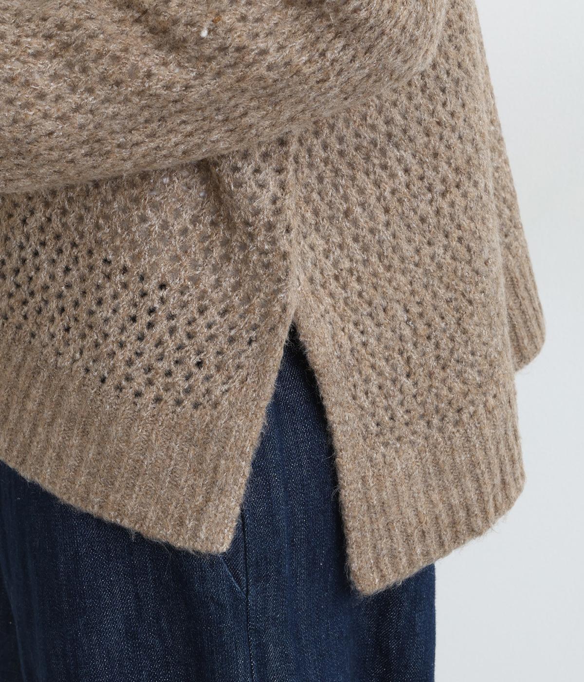 ふわりと儚げな表情がやさしい印象をもたらす混紡ニットを使用しています。もっちりとしたほどよく肉感のある中厚手で、透かし編みによって軽やかに仕上げました。