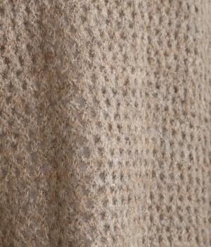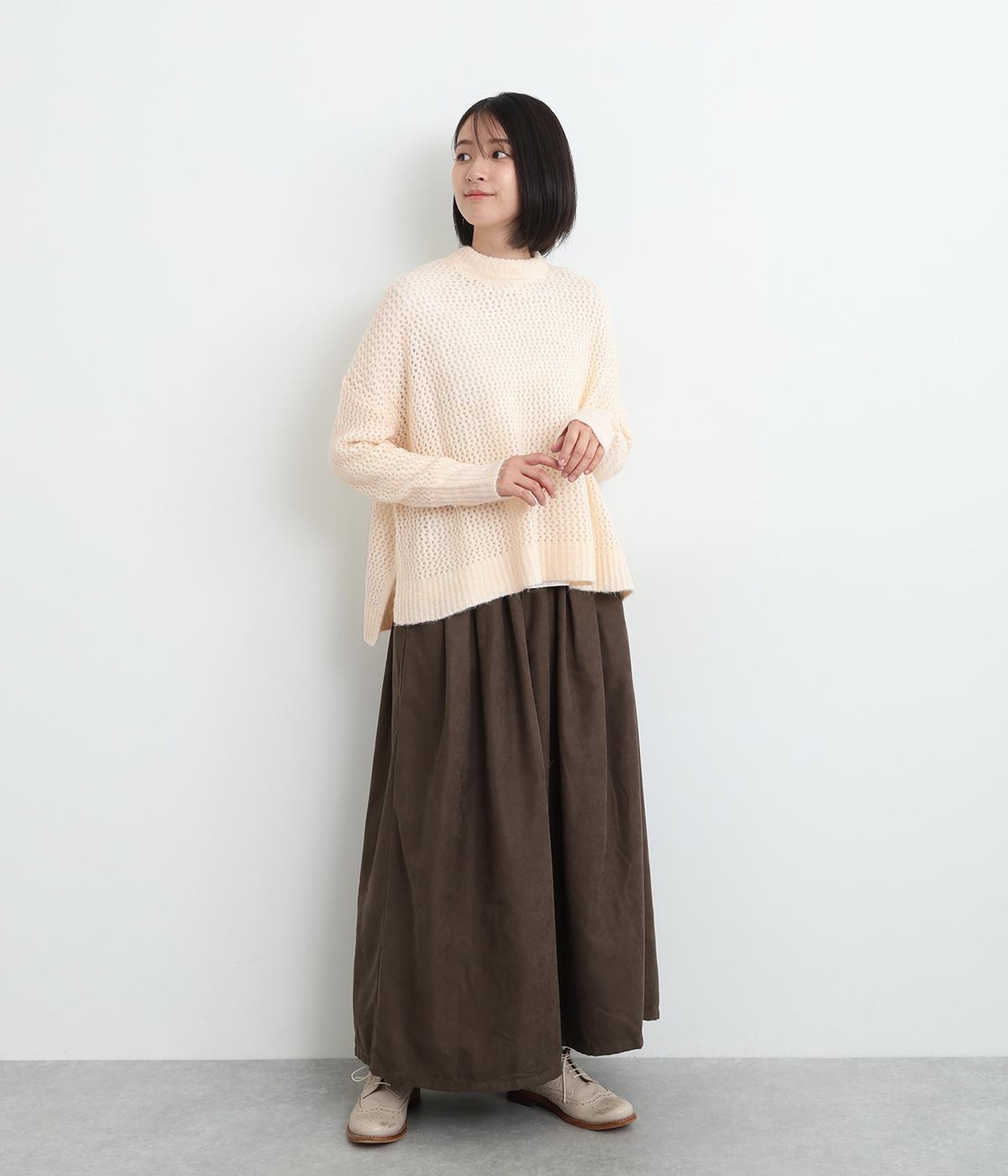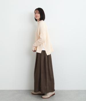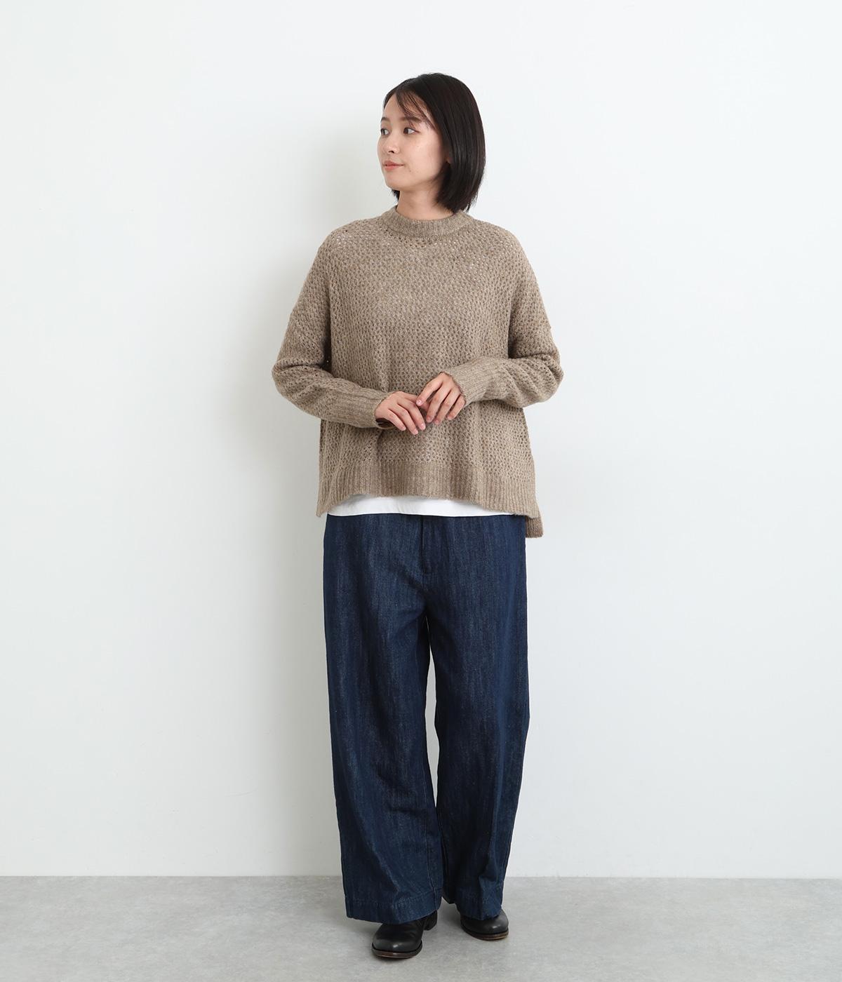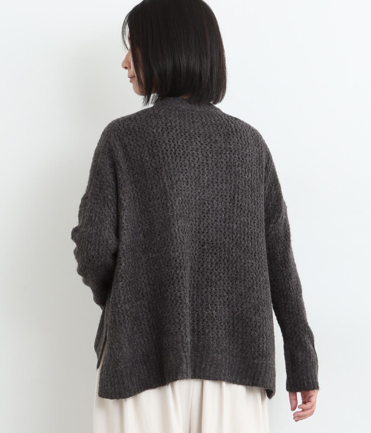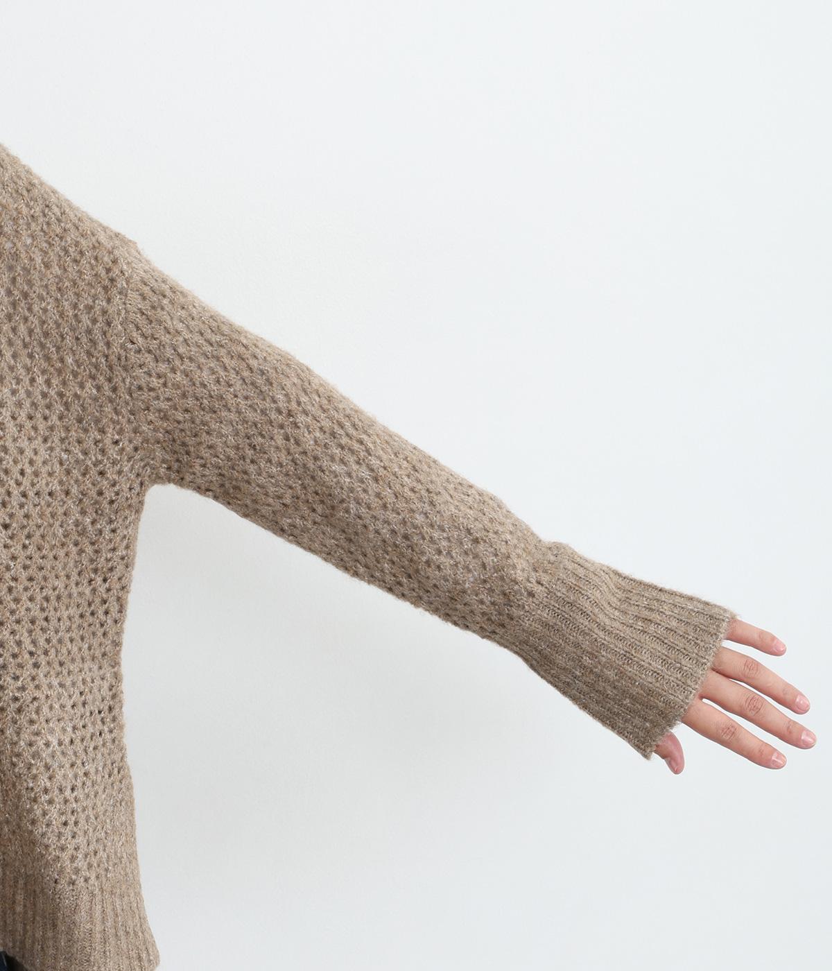 ふわりと儚げな表情がやさしい印象をもたらす混紡ニットを使用しています。もっちりとしたほどよく肉感のある中厚手で、透かし編みによって軽やかに仕上げました。