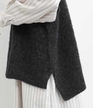 スラリと流れるシンプルなデザインと、少し長めのタートルネックがクラシカルな印象。前後の着丈差が、全体バランスを美しく整えてくれます。体型を気にせず、エレガントな重ね着を楽しめるアイテムです。