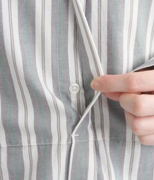 細かな織りが特徴のコットンポプリンは、軽さとしなやかさをあわせ持つ素材。着るほどに、くったりとした風合いへと変化します。肌離れがよく、通気性にもすぐれているため、汗ばむ季節も快適に過ごせる生地感です。