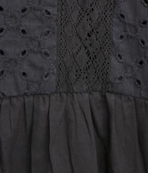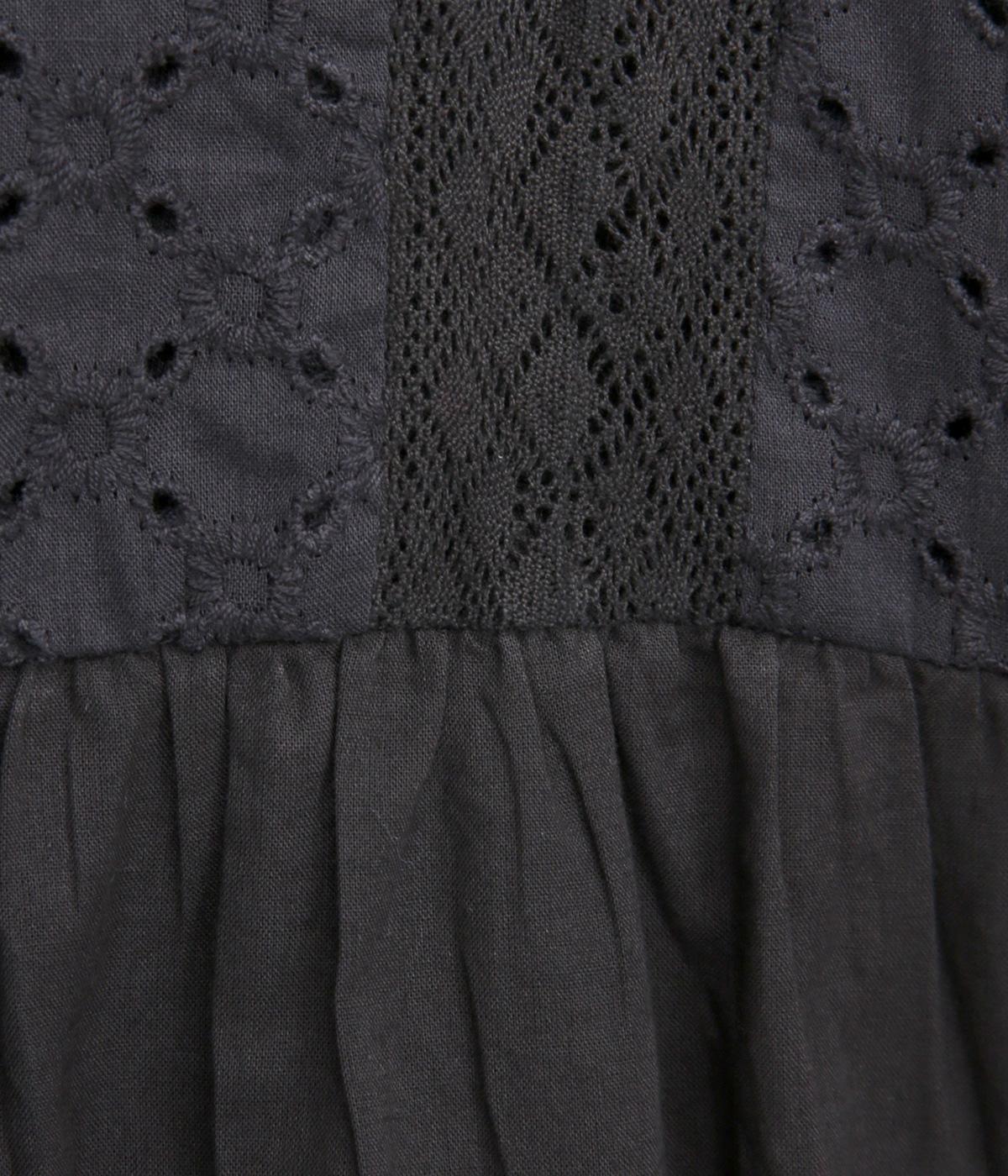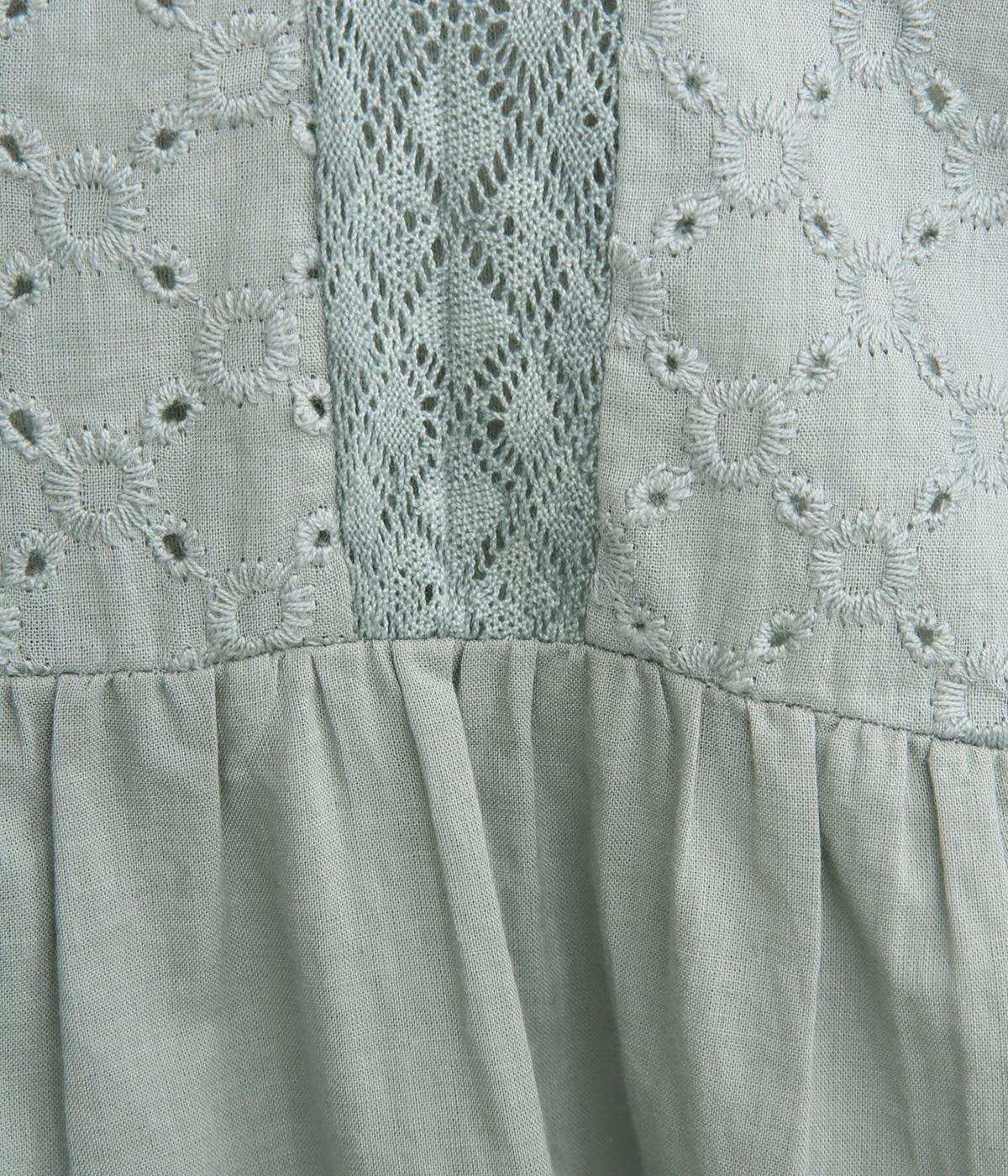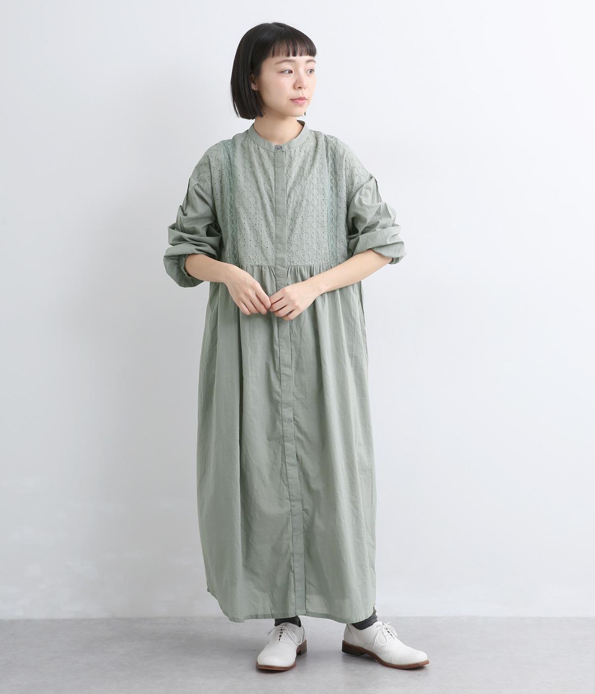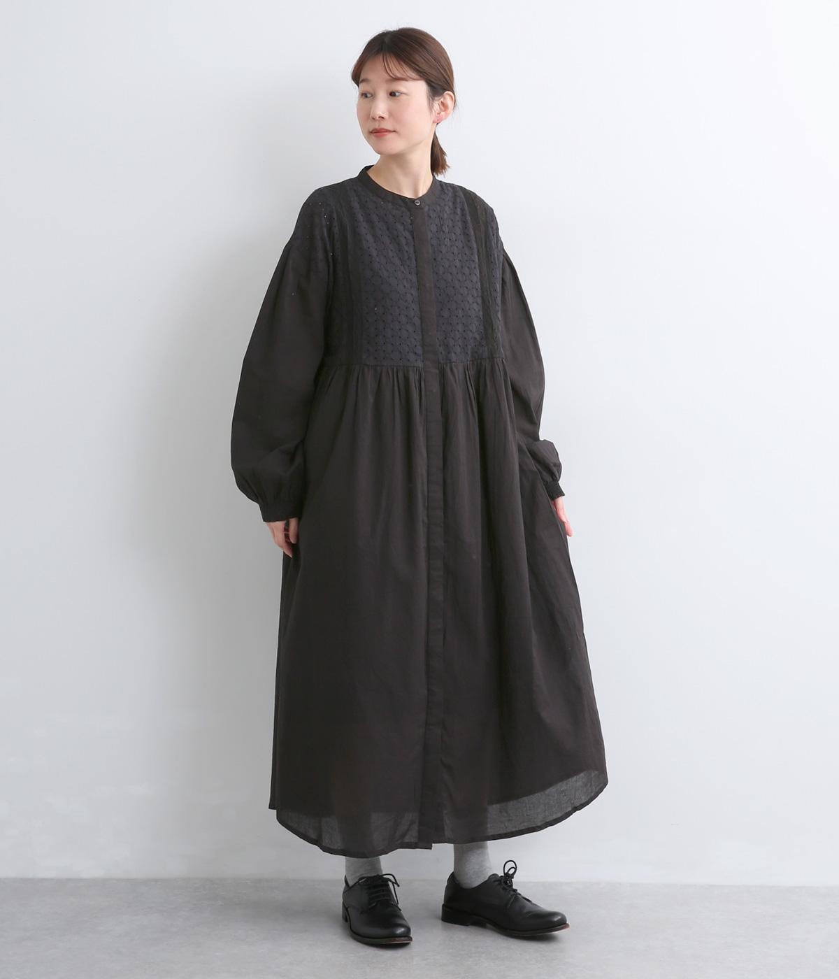胸ヨークにあしらった刺しゅうが、さりげないかわいらしさを添えるデザインです。切り替え部分からギャザーを施し、ふんわりとした立体感を演出します。前ボタンは比翼仕立てで、すっきりと上品な印象に。ボリュームのある袖はゴム仕様なので、袖をまくって抜け感のある着こなしもたのしめます。
