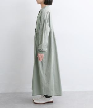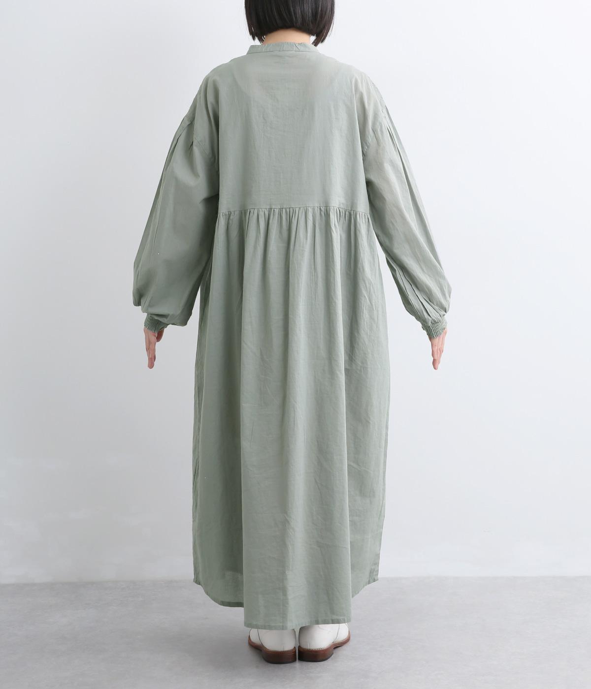薄手で軽く、空気をまとったようなやわらかさのコットン素材を使用しました。さらりとした肌ざわりで、素材のやさしさが際立ちます。ほのかな透け感が季節感を演出し、レイヤードしても涼やかな印象に。