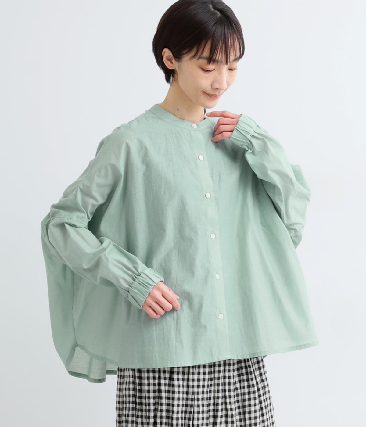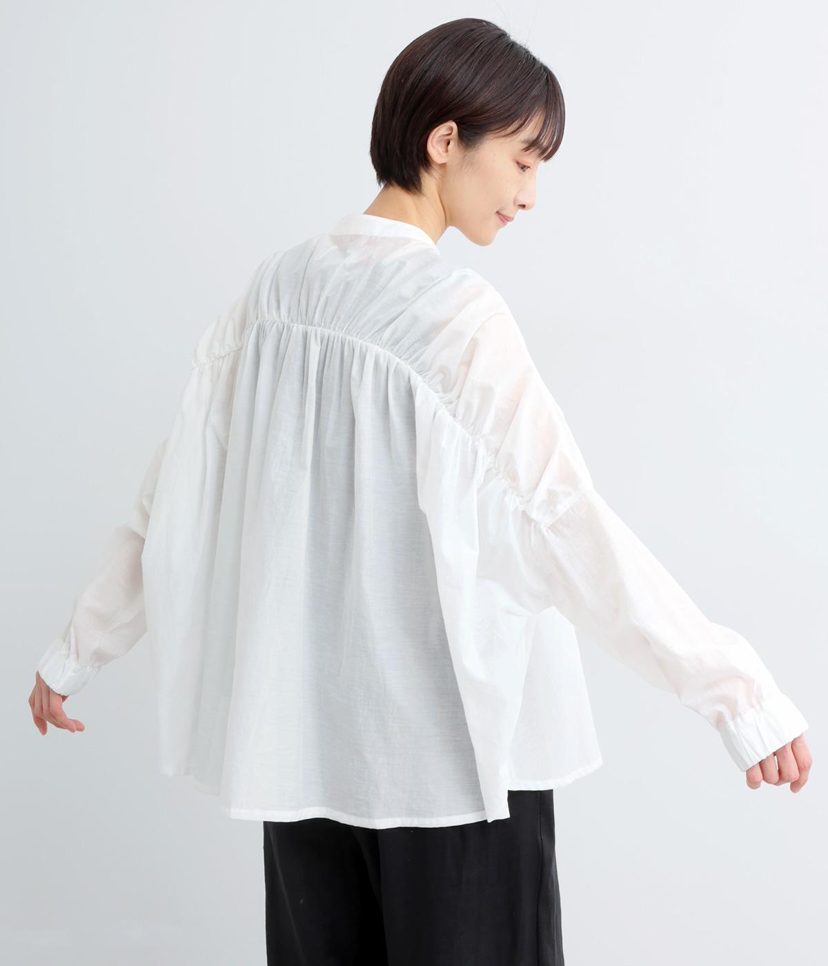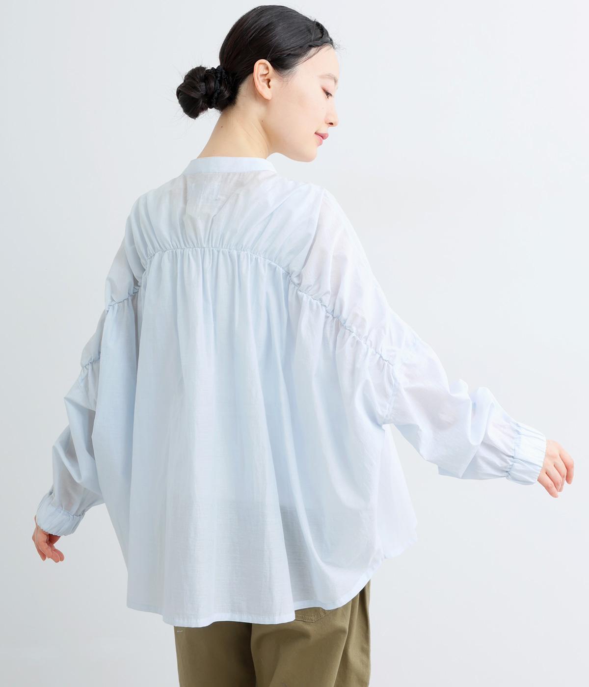 やわらかな着心地で、スタイリングに軽やかな立体感を生むブラウスです。たっぷりと入ったバックギャザーが流れるような優雅なシルエットを描きます。袖口はゴム仕様で、ラフにたくし上げて着てもサマになります。
