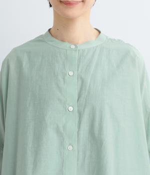 ふっくらと空気をはらんだように立体感を演出する混紡生地です。ナチュラルなシワ感のあるドライな質感で、ほどよい透け感にほのかに光沢のある上品なシアー素材です。