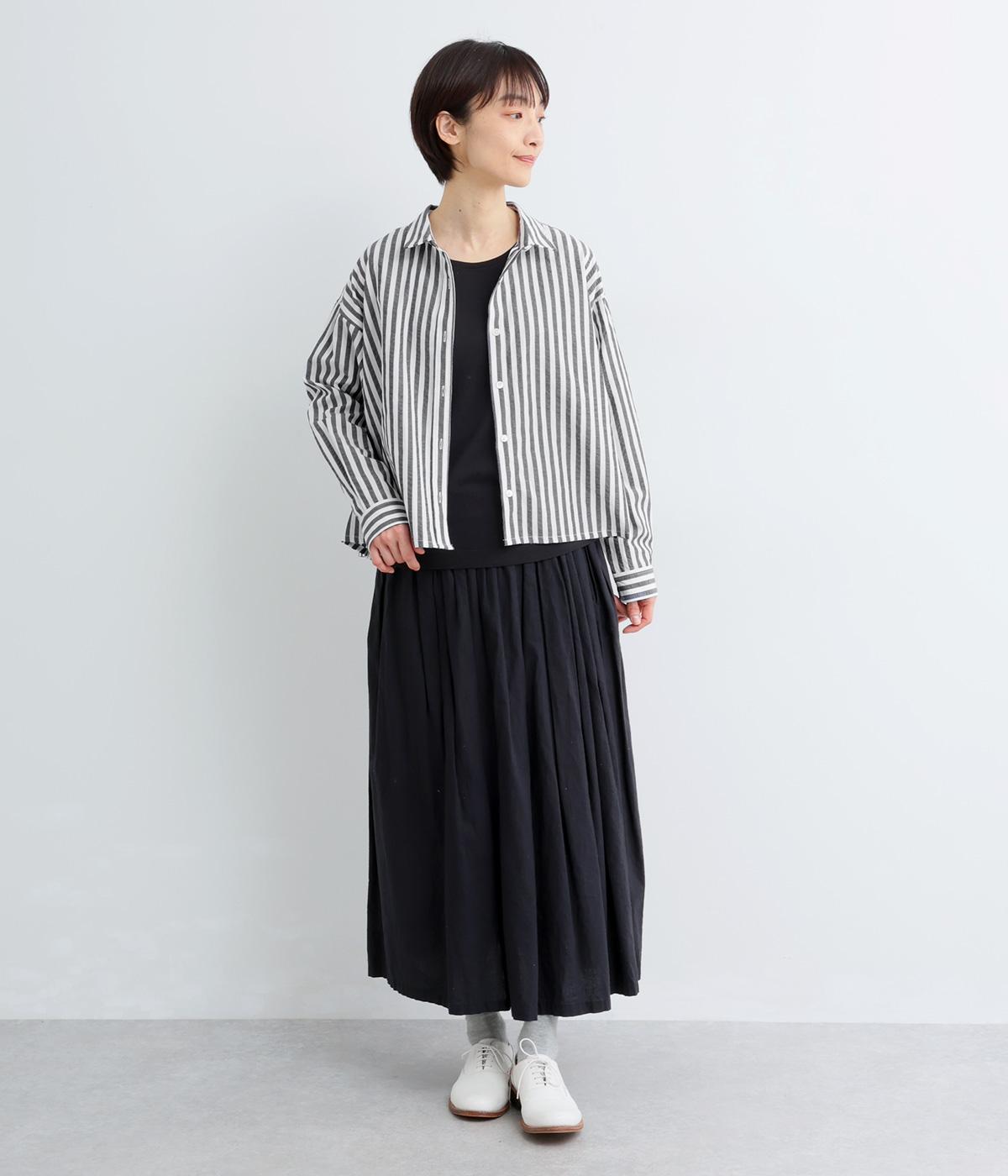 裾に向かって広がるAラインシルエットを、すっきりとした丈感で仕上げました。前後差のある裾がふんわりとしたシルエットを描き、腰まわりをさりげなくカバーします。スタイリングに軽やかな立体感をプラスしてくれる一枚です。