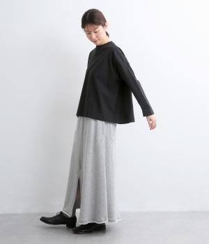 シンプルなトップスに、Aラインのフレアシルエットをプラス。裾の広がりが、女性らしいやわらかさを添え、動きのある印象に仕上げました。ゆったりとした身幅で、さまざまなボトムスとバランスよくコーディネートできます。