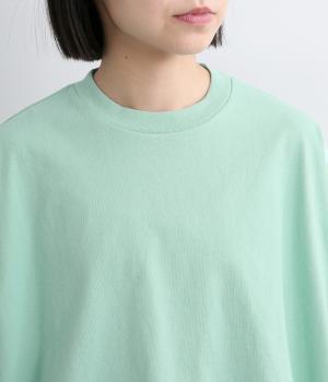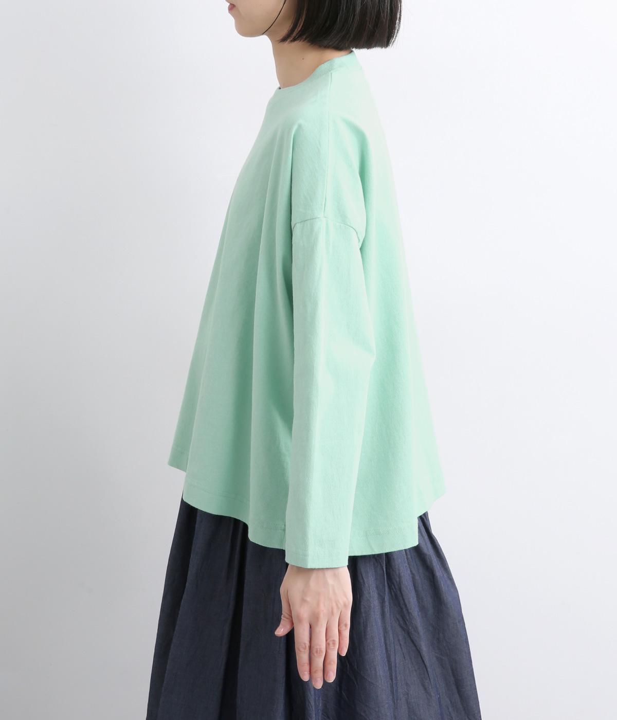 さらりとした肌ざわりのコットン天竺を使用しました。ほどよい厚みとハリ感があり、体のラインを拾いにくいのもうれしいポイント。軽やかで扱いやすく、季節を通して取り入れやすい、頼れる素材感です。