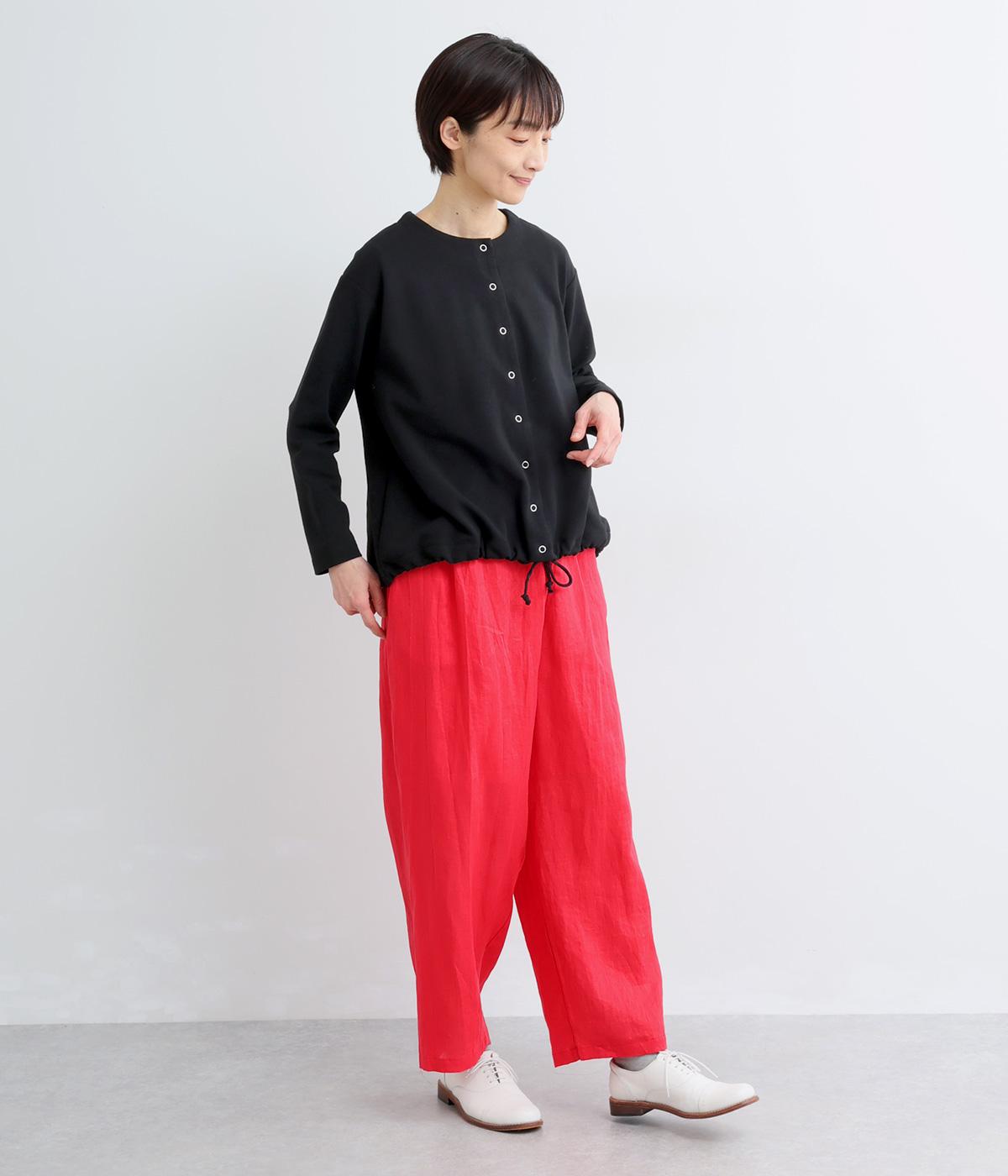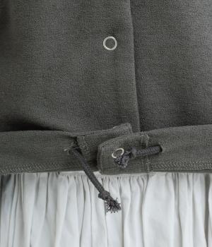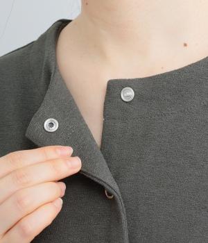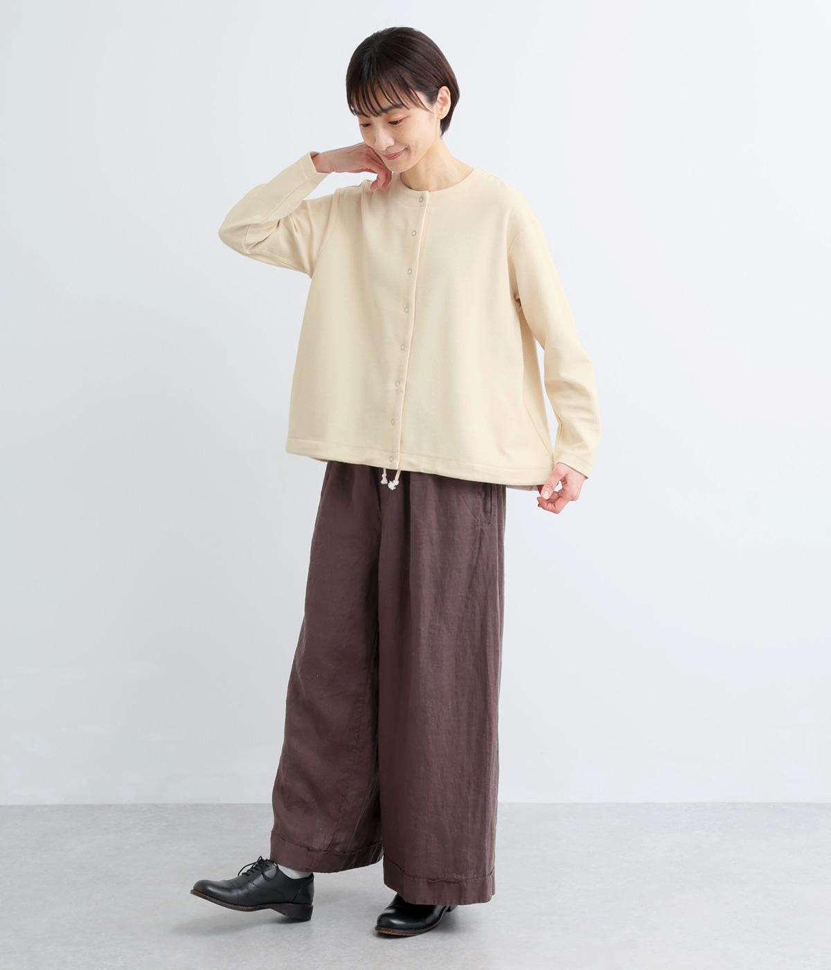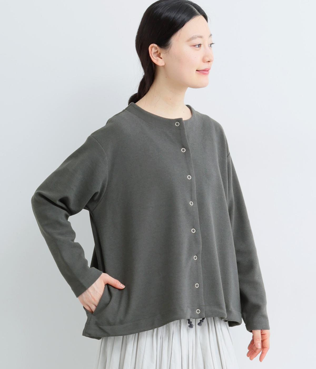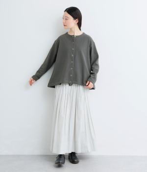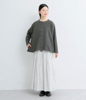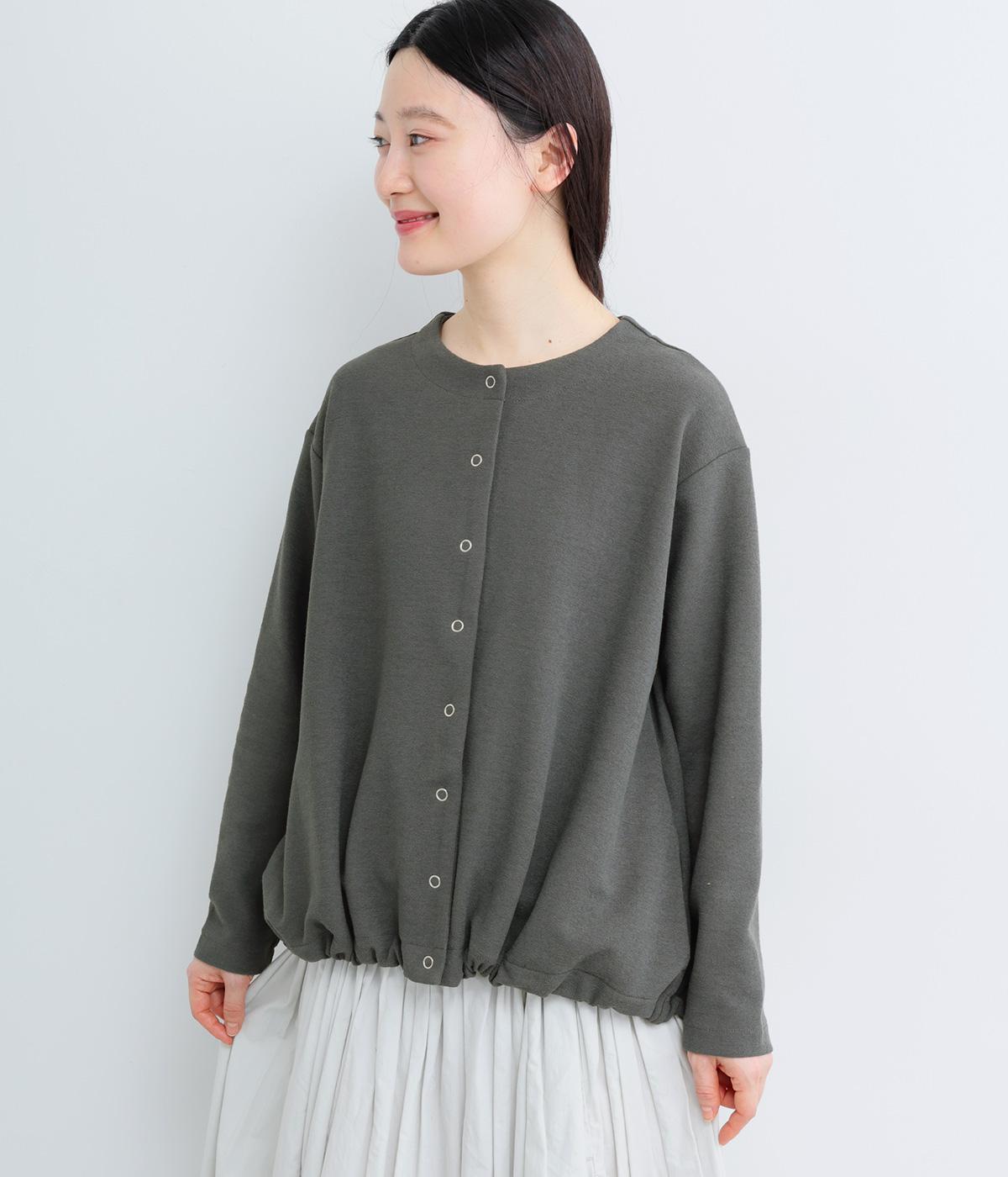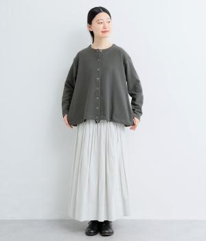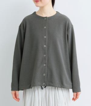 シンプルなAラインシルエットのカーディガンに、リングドットボタンと裾のドロスト紐でカジュアル感をプラスしました。ボタンを留めればプルオーバーとしても着用でき、タートルネックなどとのレイヤードもおすすめです。