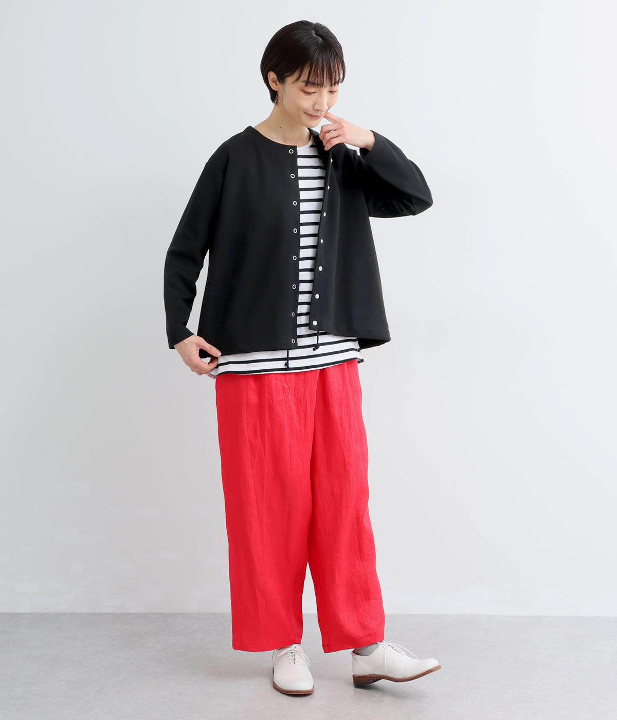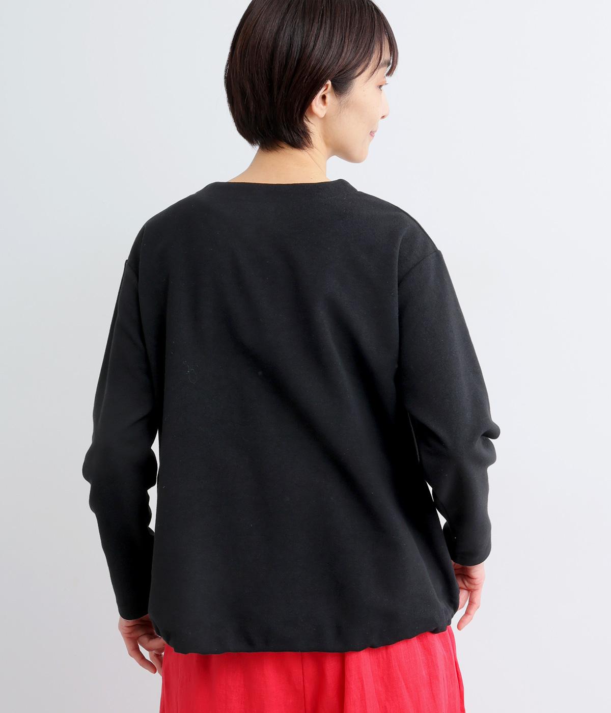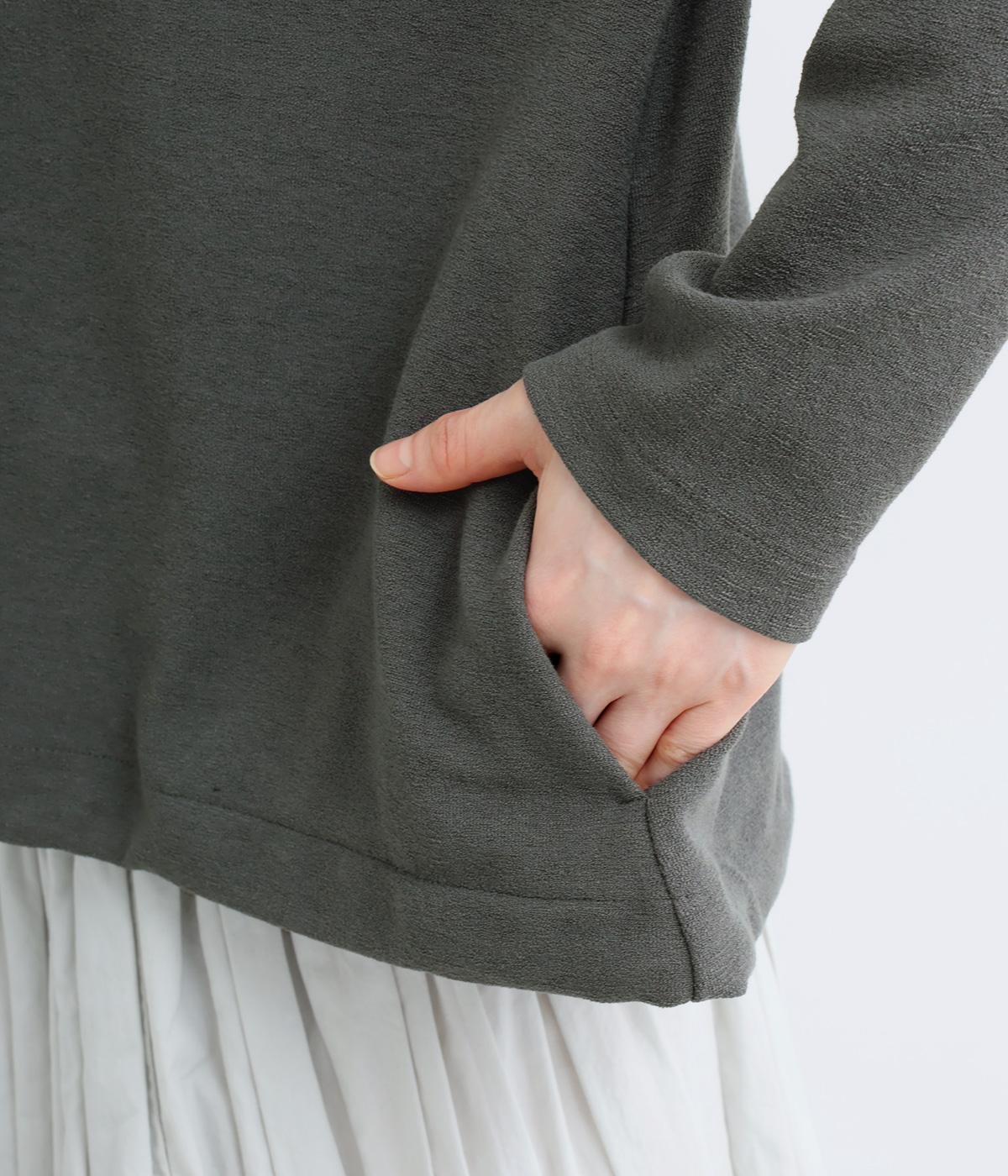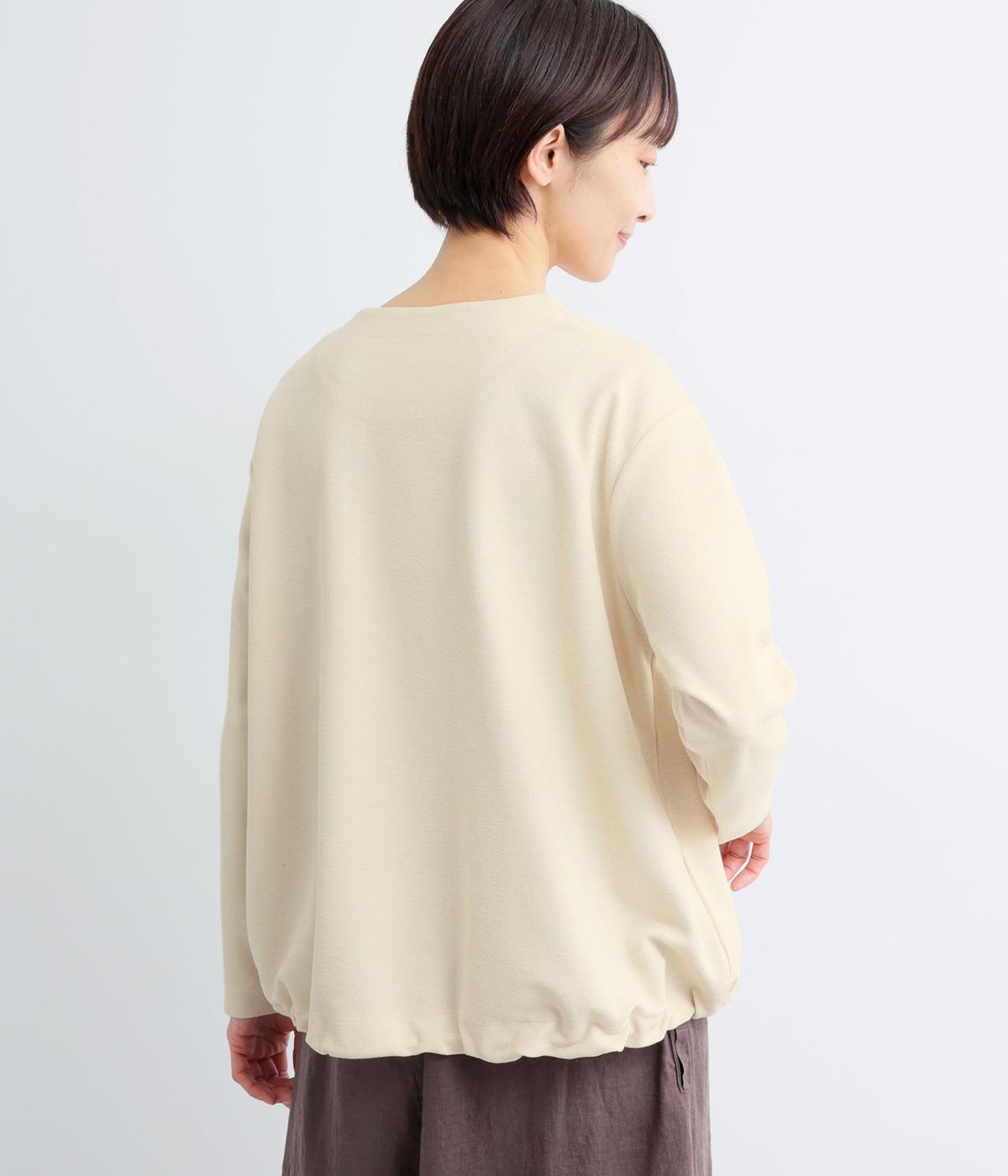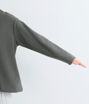表面感とシャリ感が特徴的なペアー天竺生地を使用しています。ふんわりとしなやかな手ざわりで、さらっと肌ばなれよく、ロングシーズン着用しできる素材感です。