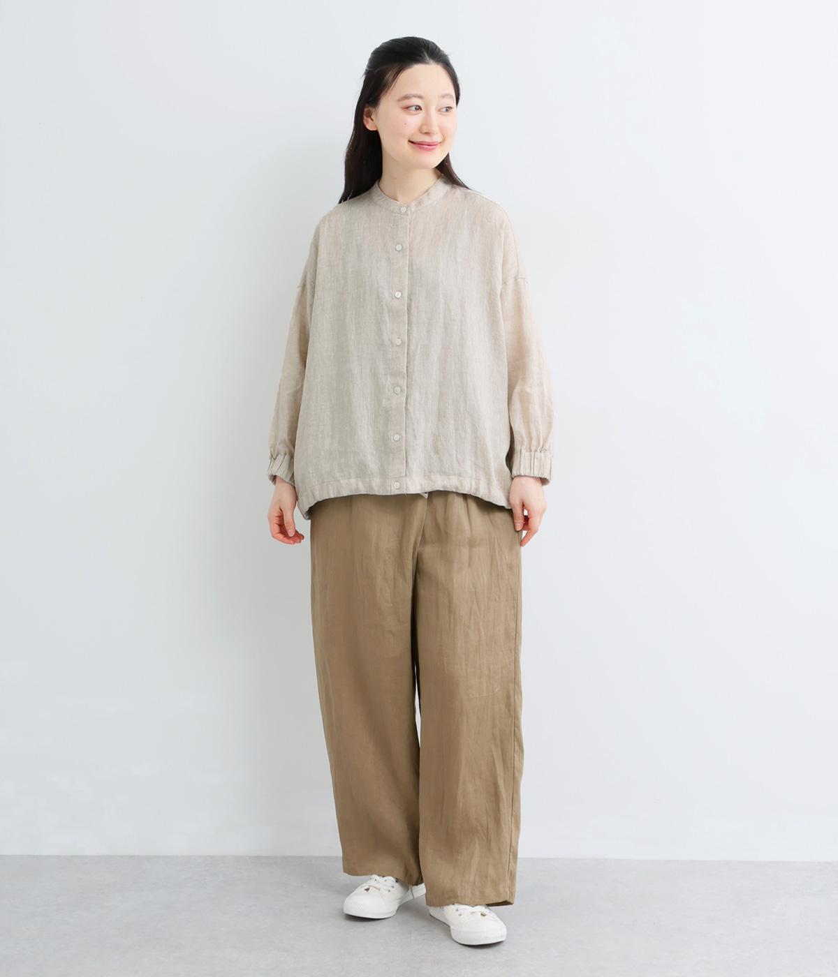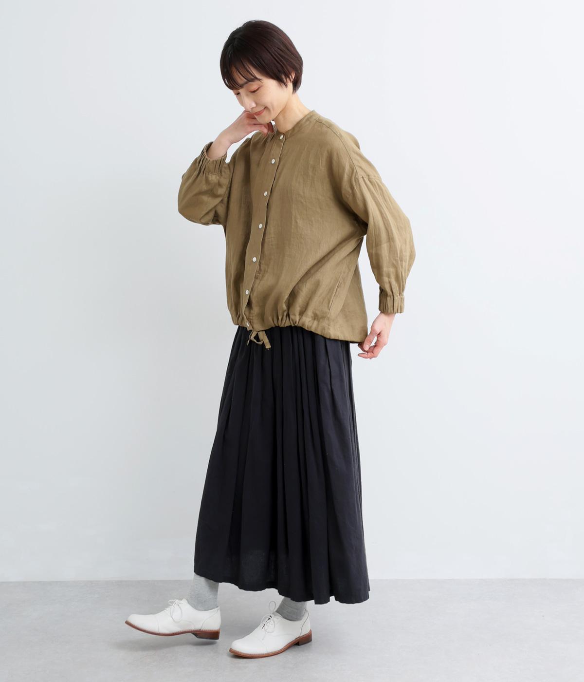 適度な厚みの軽やかなリネン生地です。ごわつき感の少ないやわらかな肌ざわりでほのかな光沢があります。ナチュラルな風合いと上品さを両立した素材感です。