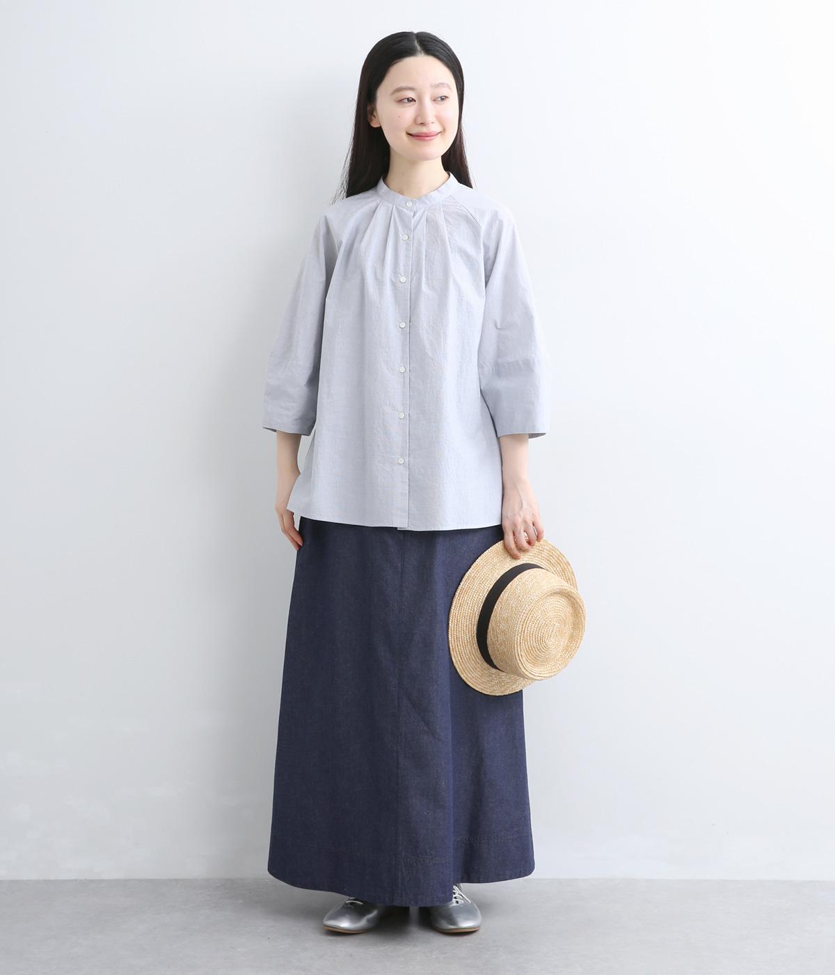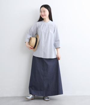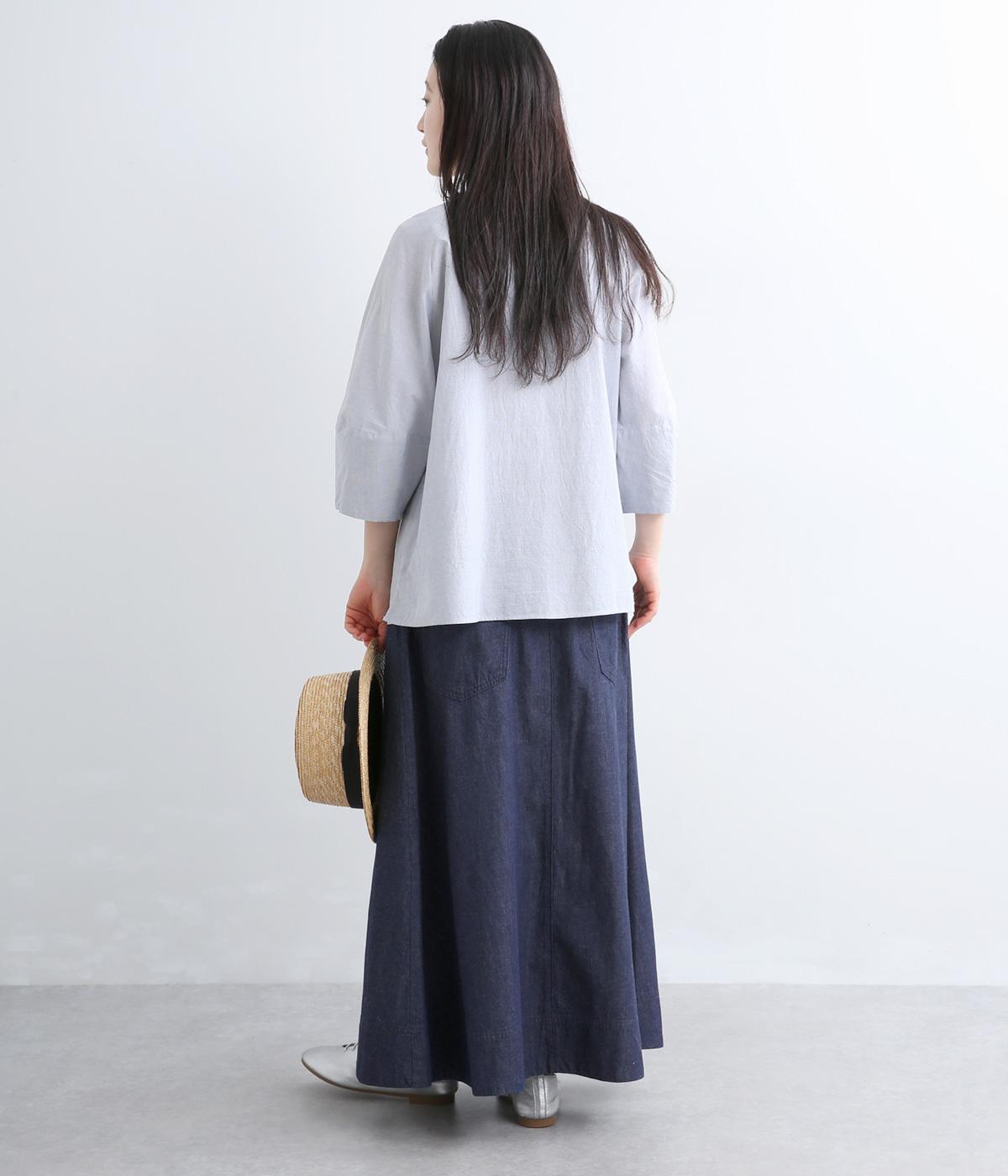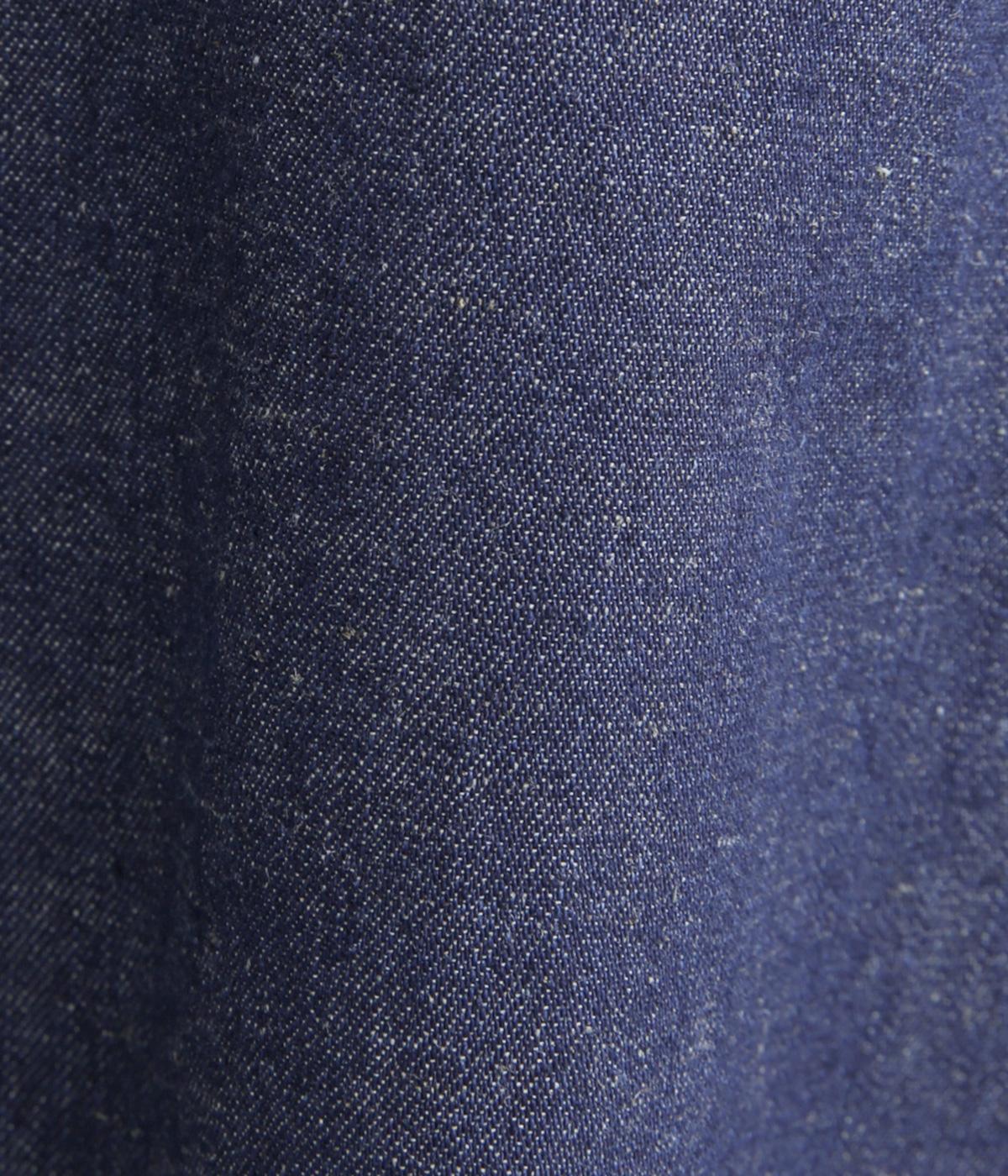 それぞれの特性を活かしたコットンリネンのライトデニムを使用。やわらかさの中にも心地よいシャリ感のあるドライな肌触りが特徴で、あたたかな季節にも活躍する軽い生地感です。