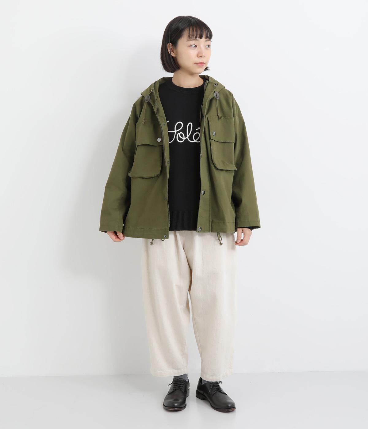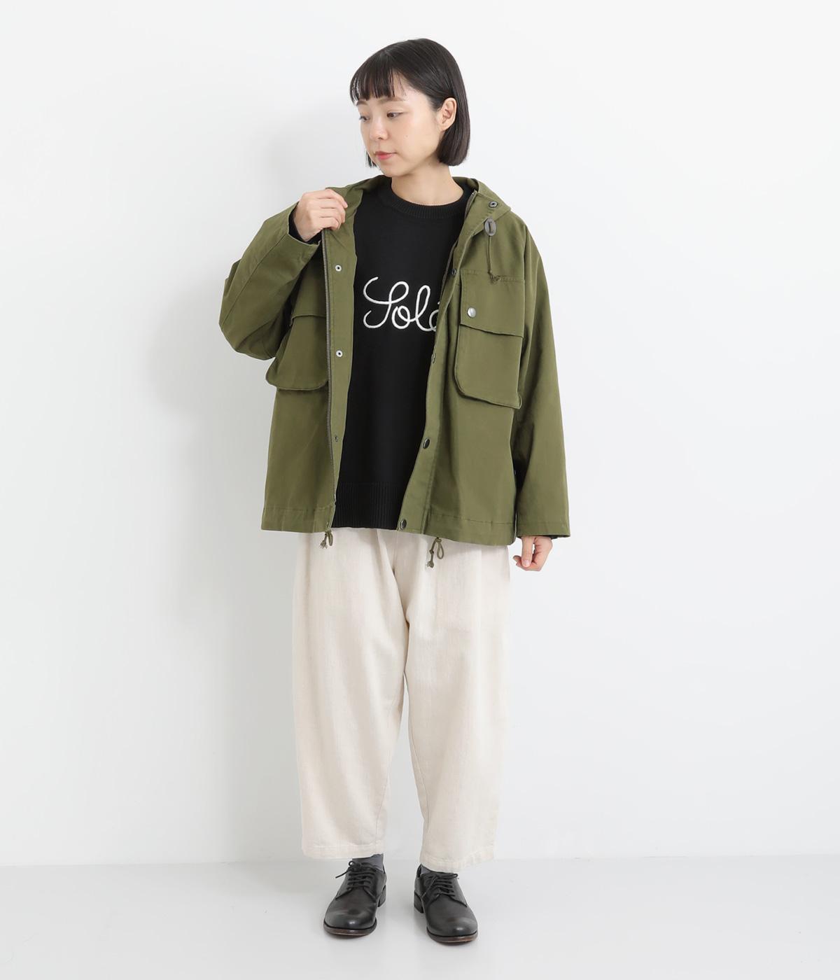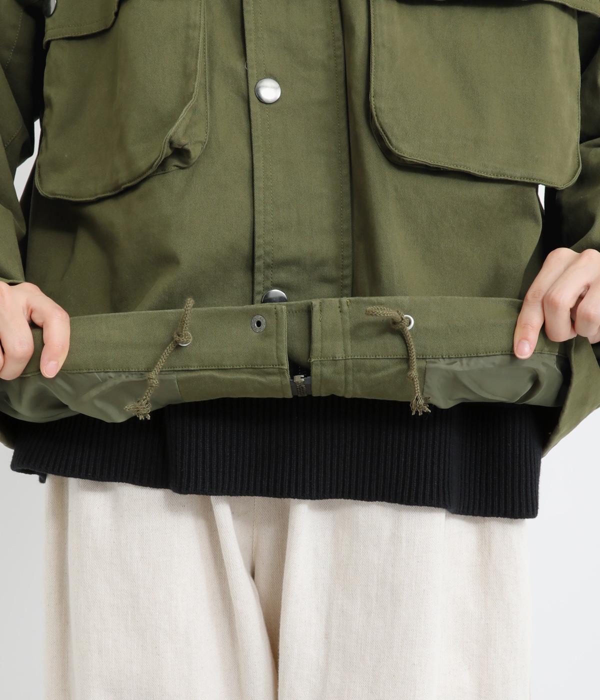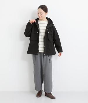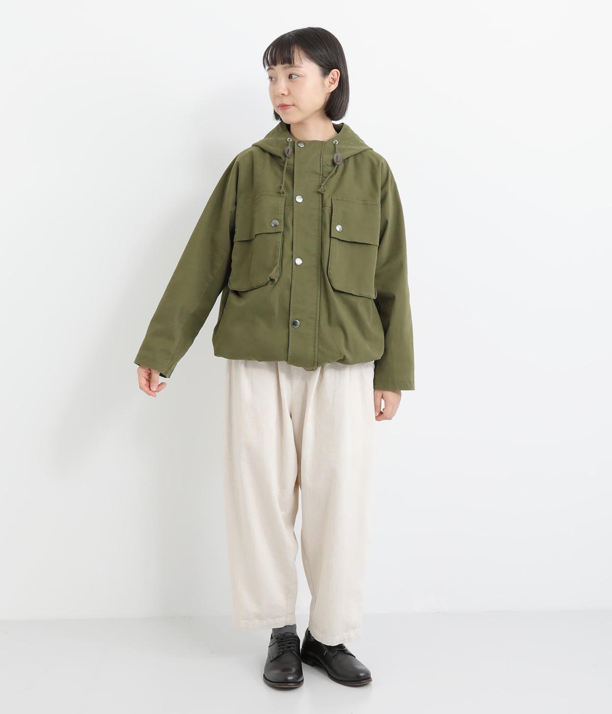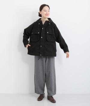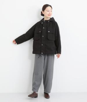 大きなポケットと安定感のあるフォルムが魅力的なブルゾン。モールスキンの力強さと、やわらかな曲線を感じさせるデザインのコントラストがシックな雰囲気をつくり上げます。ミディアム丈で気になる部分はカバー。体型を気にせず着用できます。裾に付いている紐でキュッと絞って立体感のある着こなしも◎。