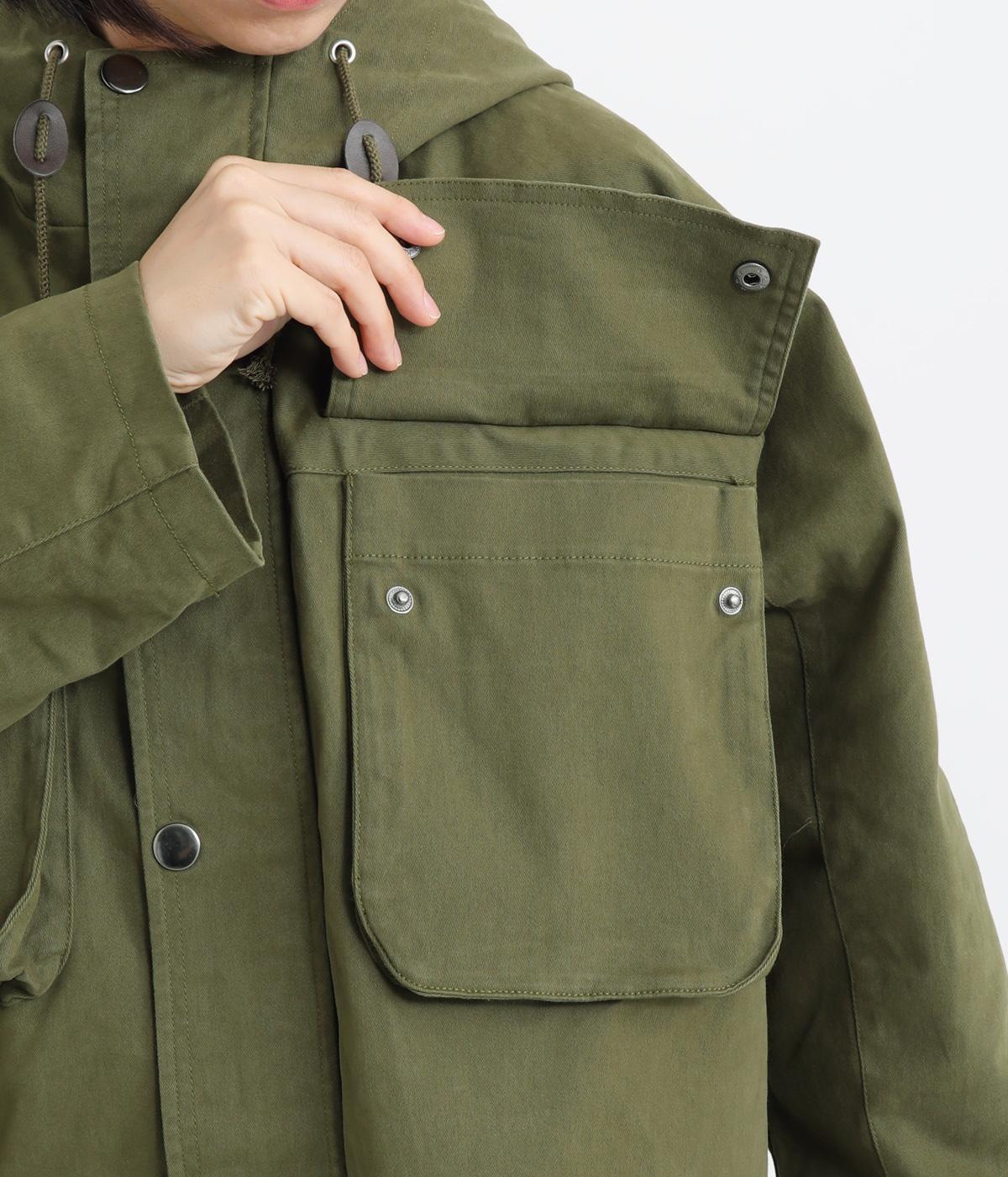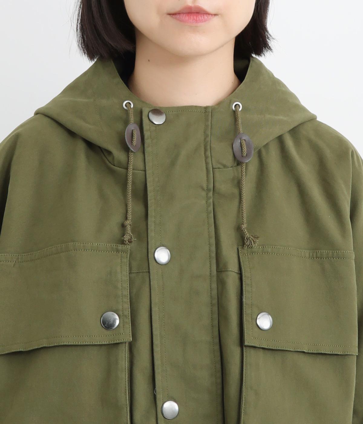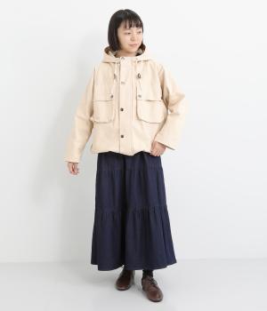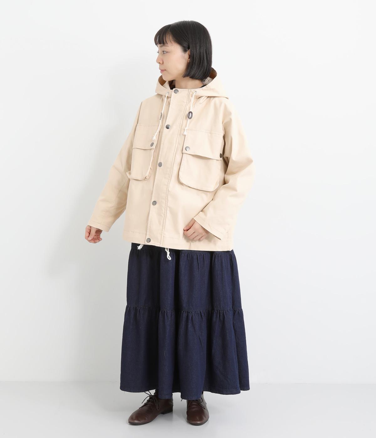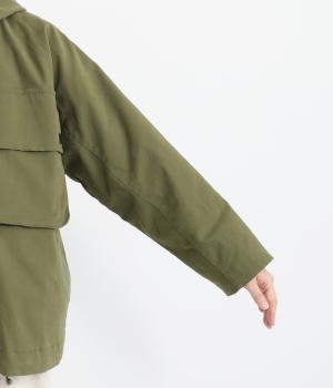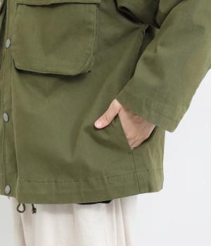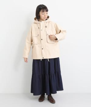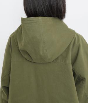 大きなポケットと安定感のあるフォルムが魅力的なブルゾン。モールスキンの力強さと、やわらかな曲線を感じさせるデザインのコントラストがシックな雰囲気をつくり上げます。ミディアム丈で気になる部分はカバー。体型を気にせず着用できます。裾に付いている紐でキュッと絞って立体感のある着こなしも◎。