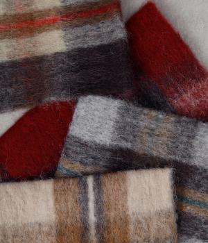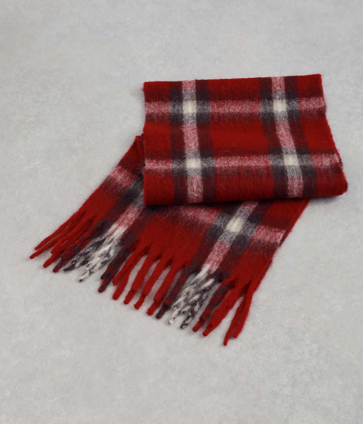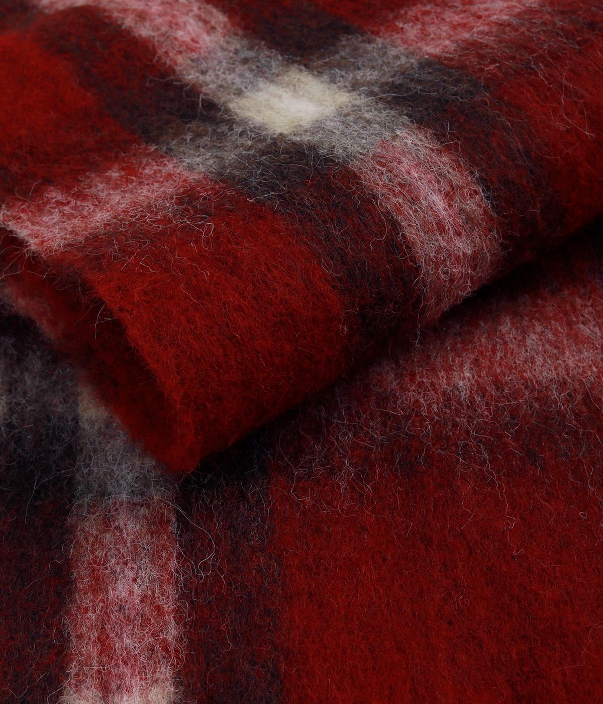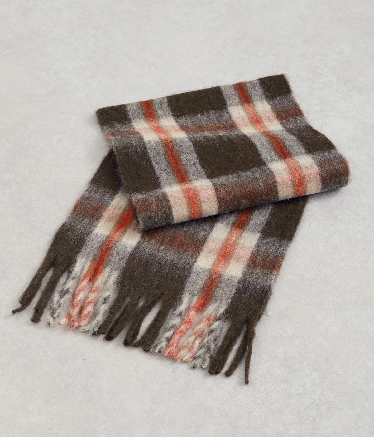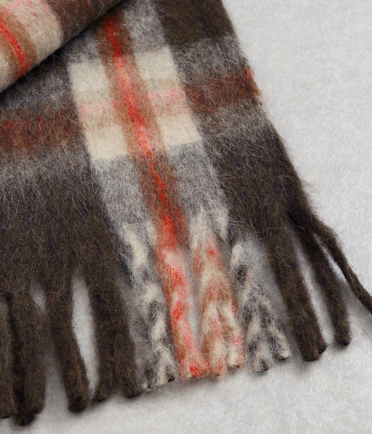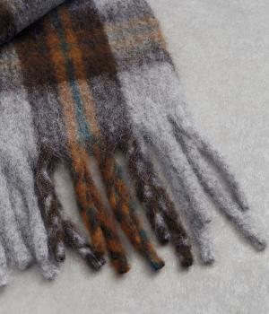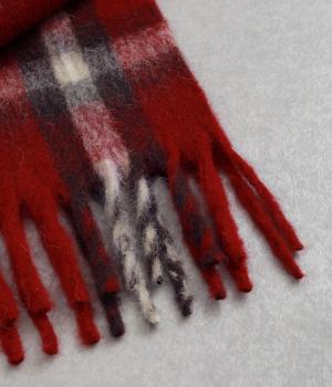 大きめのチェック柄を、やわらかくぼかした風合いで仕上げたストール。存在感がありつつ、寒い季節のコーディネートに自然となじむデザインです。肉厚な生地ならではのボリューム感があり、さらりと巻くだけで華やかさがアップします。長めのフリンジが軽さを添え、巻き方のアレンジもたのしめる一枚です。