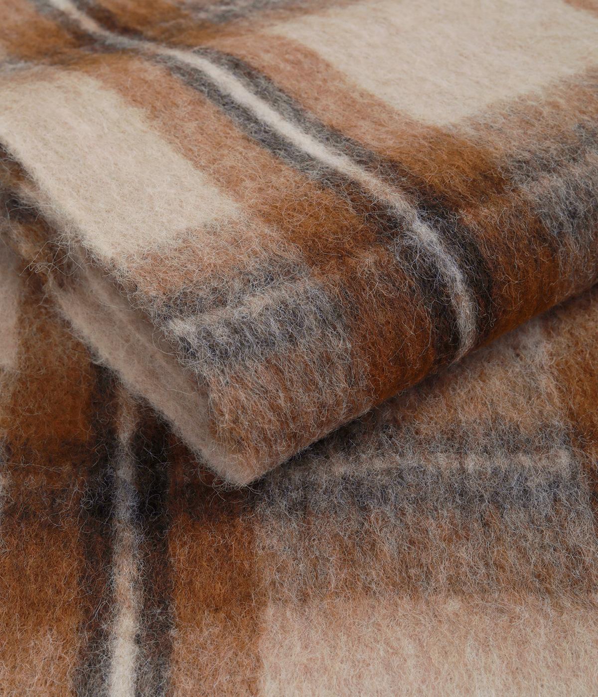 やわらかな繊維をたっぷりと起毛させ、ふっくらとした風合いに仕上げました。毛足の長さが生む空気の層で、保温性が高く、巻くだけであたたかさを実感できます。思わず頬ずりしたくなるような、やわらかなタッチが魅力です。