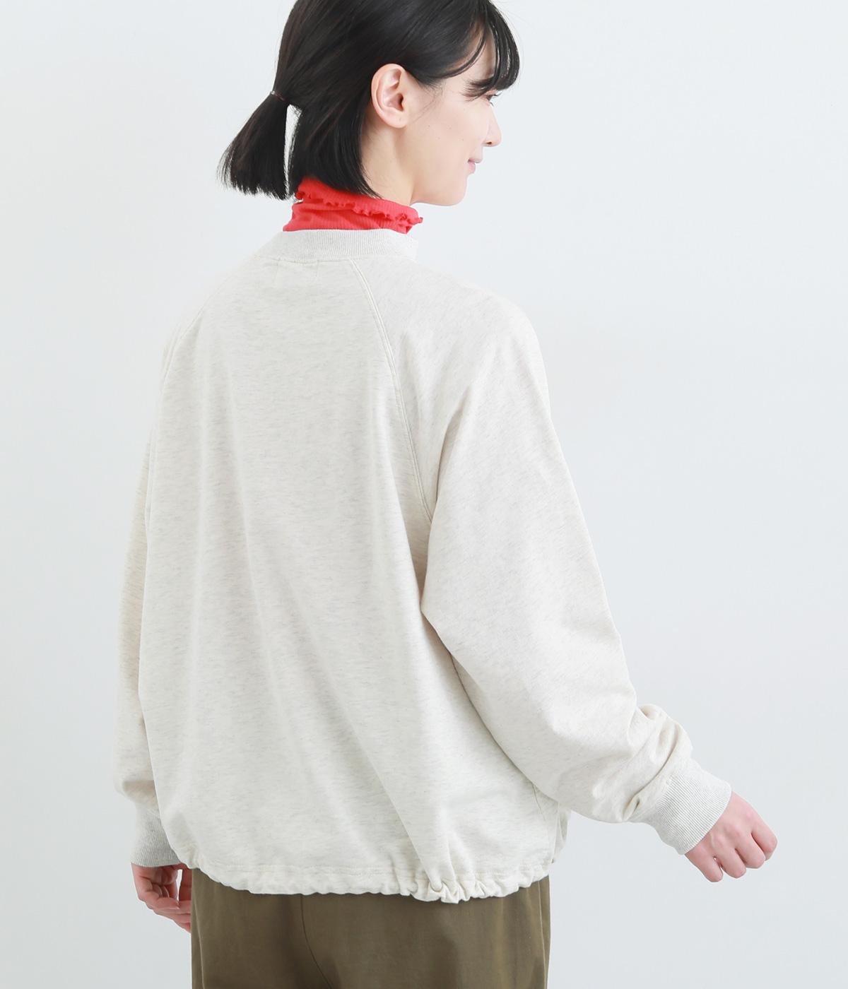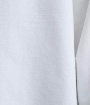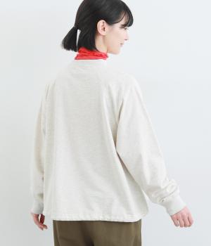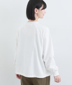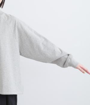 やわらかく肌ざわりのよい裏毛生地を使用しています。ほどよい肉感でふんわりと心地いい着用感です。なめらかな表面感が上品な雰囲気の素材感です。