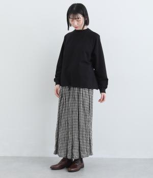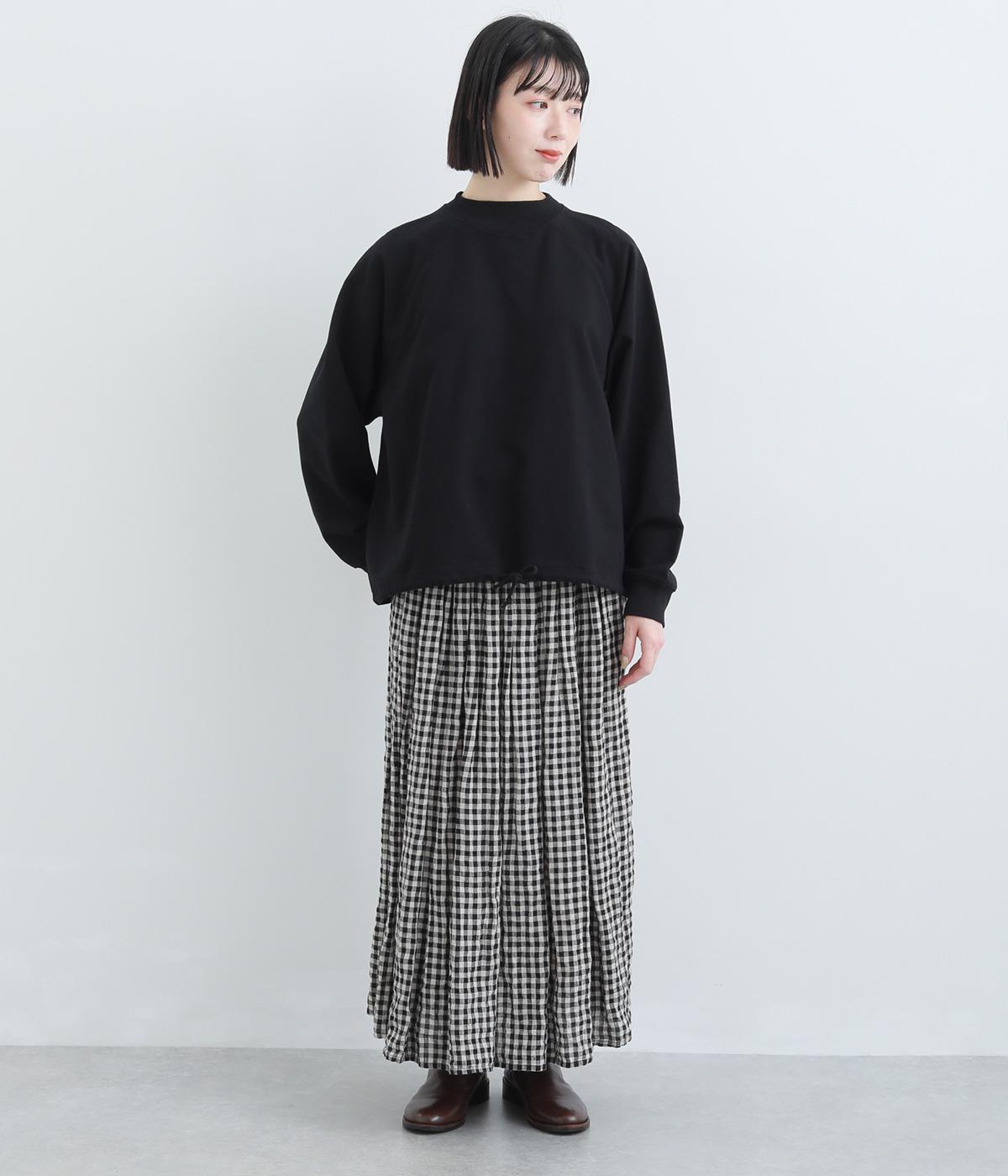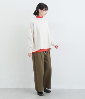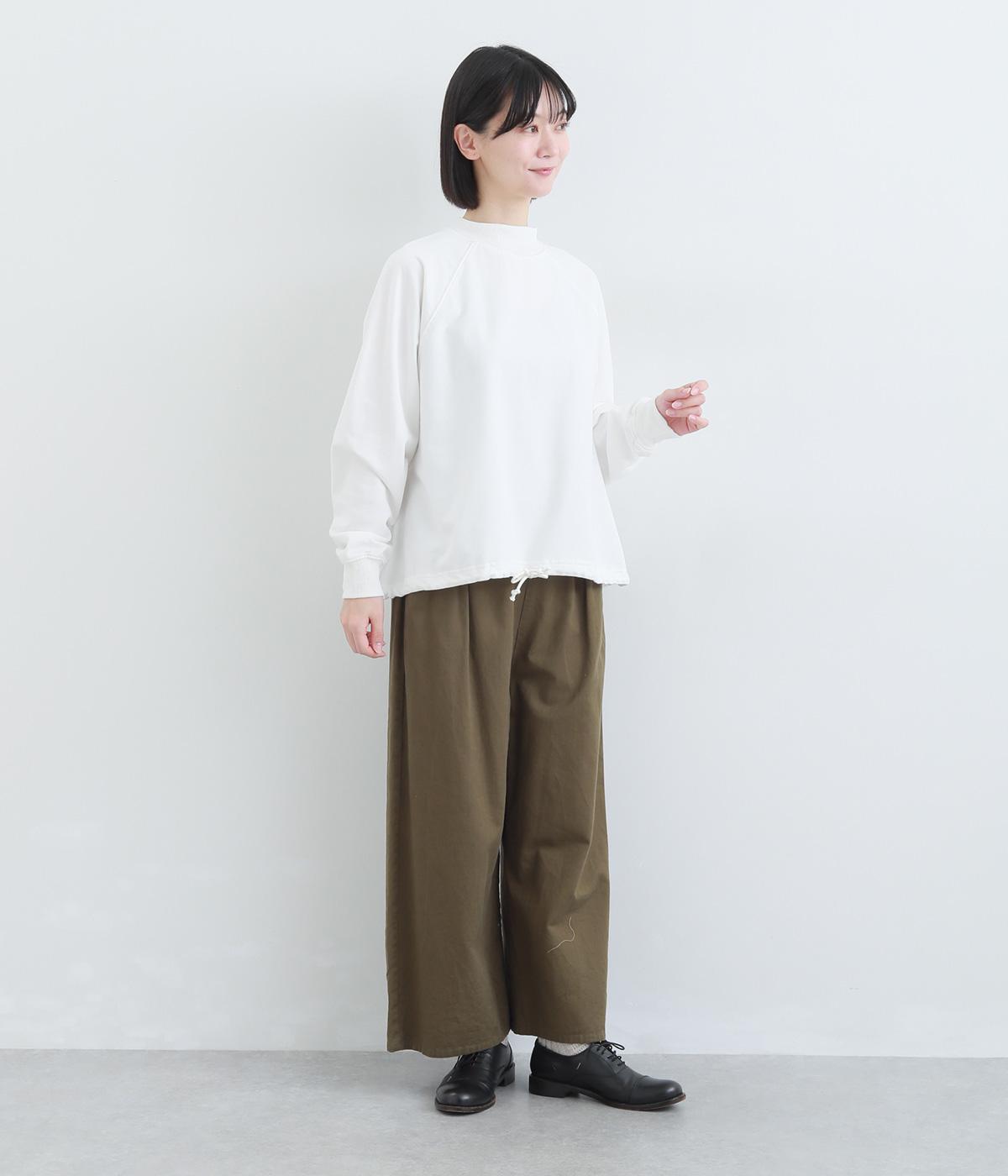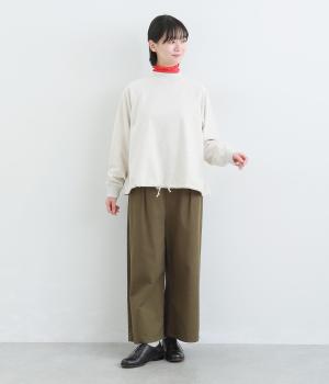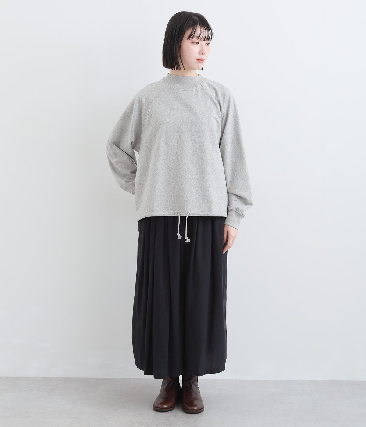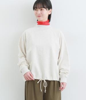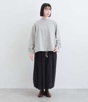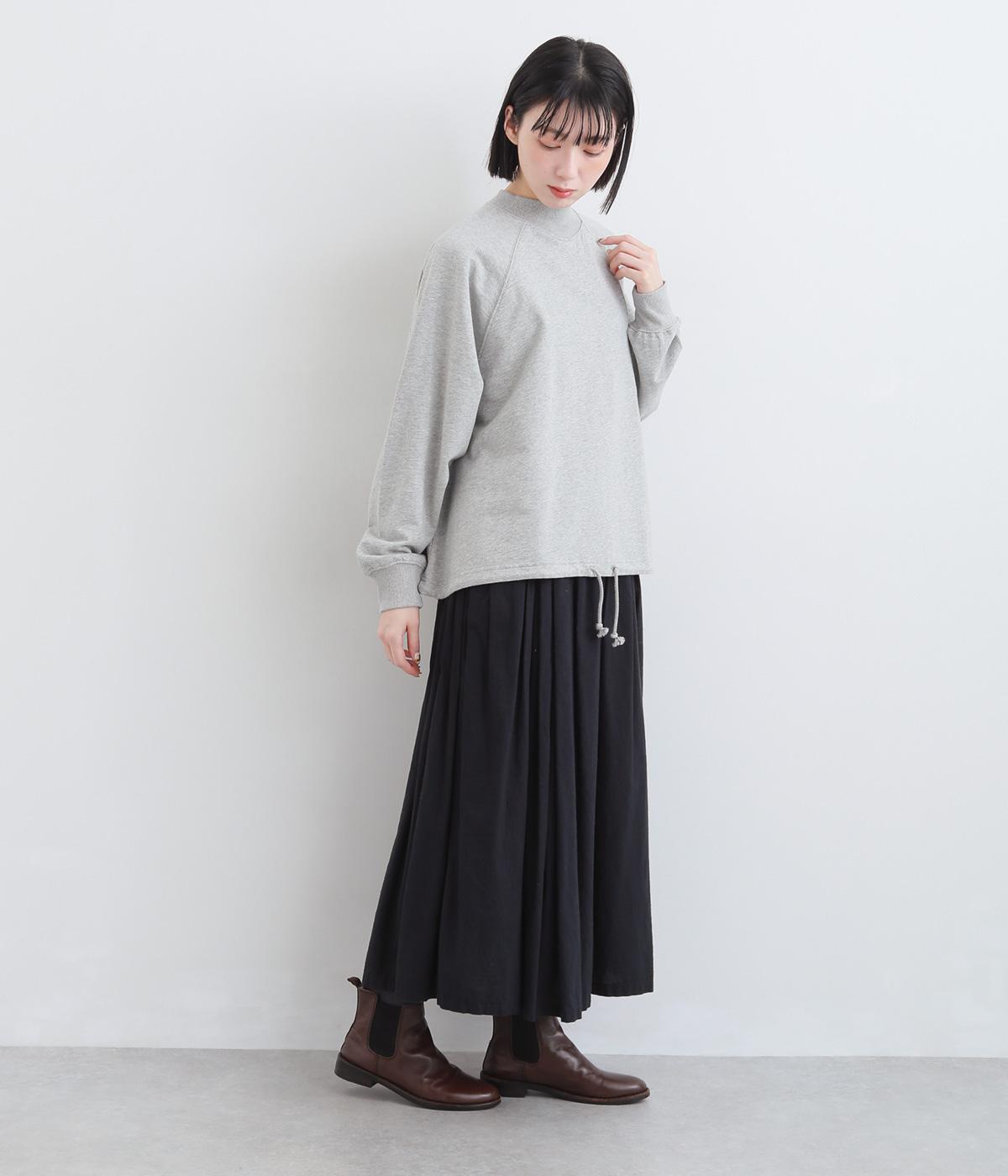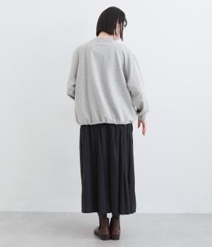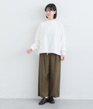 シンプルなプルオーバーを変形のモックネックで大人っぽく仕立てました。Aラインのフレアシルエットは裾のドロスト紐を絞ればバルーンシルエットになり、2wayで着用できます。紐をしっかり絞ることで短丈のこなれた雰囲気に。