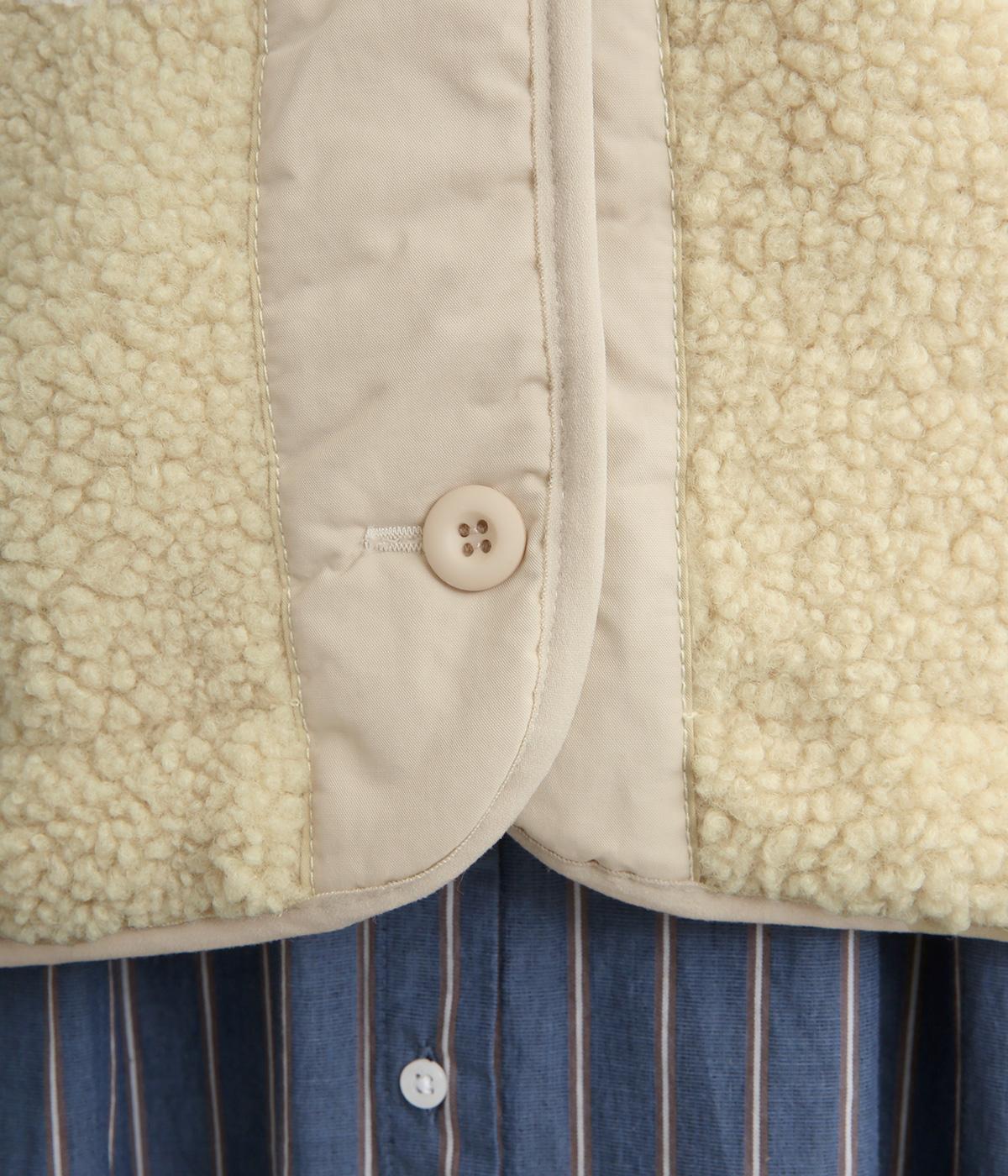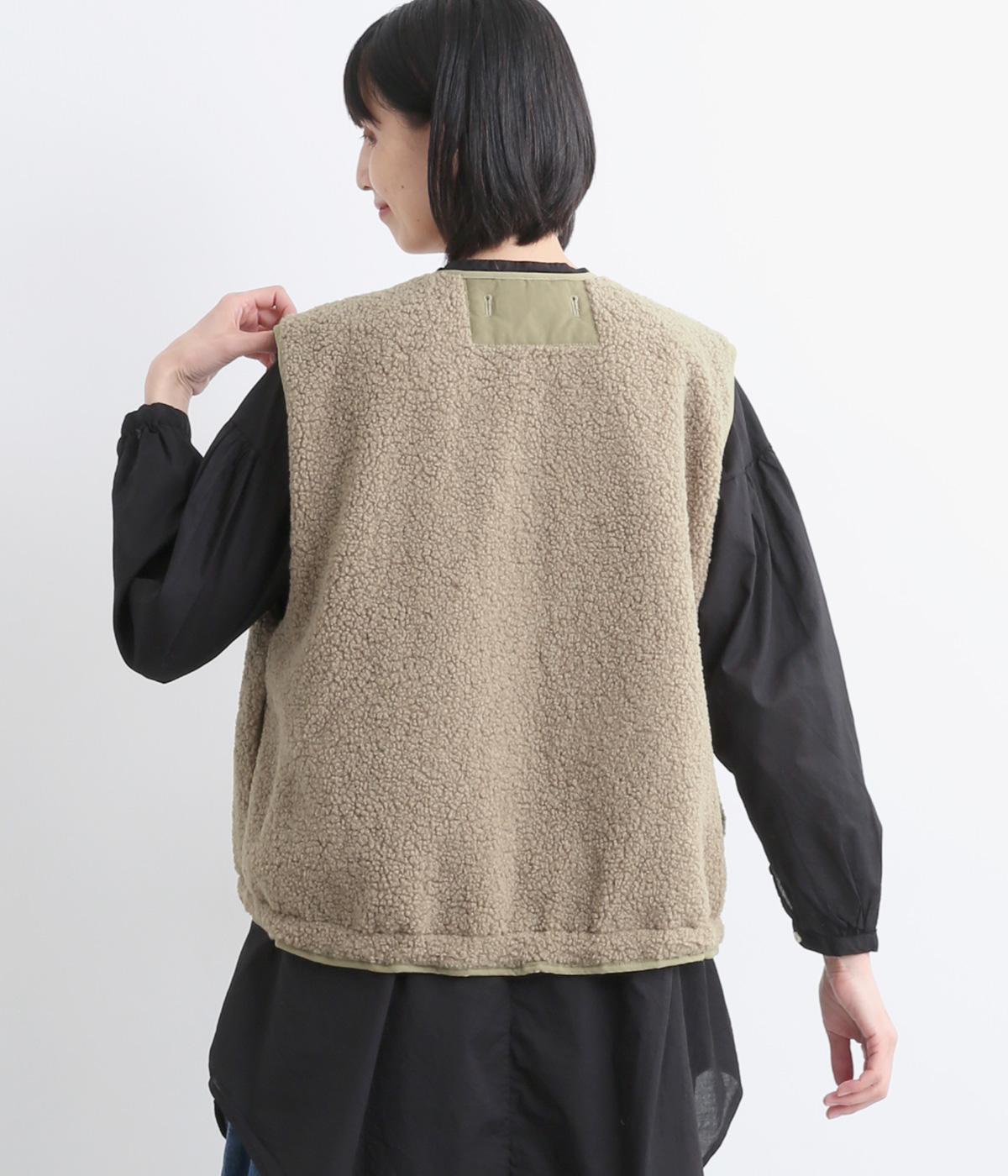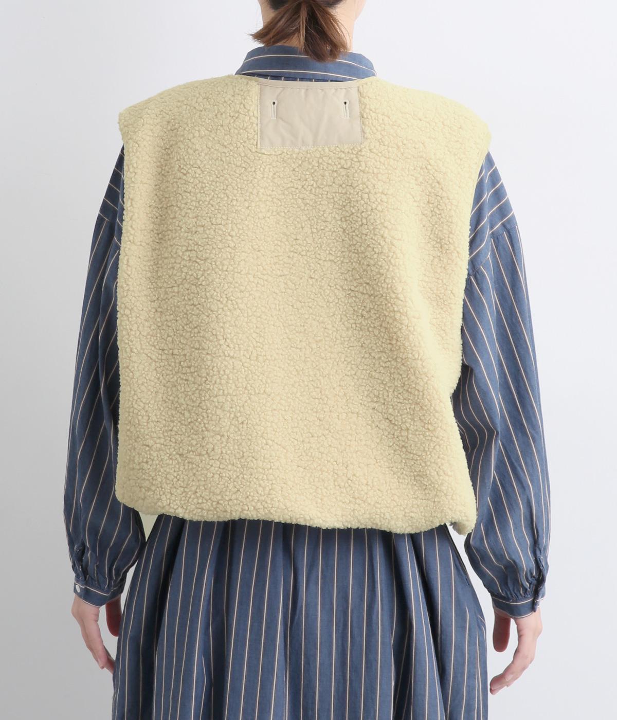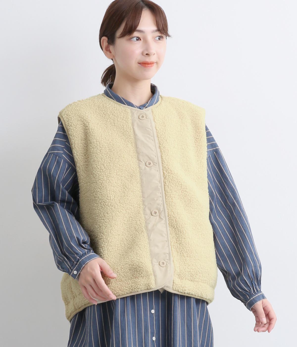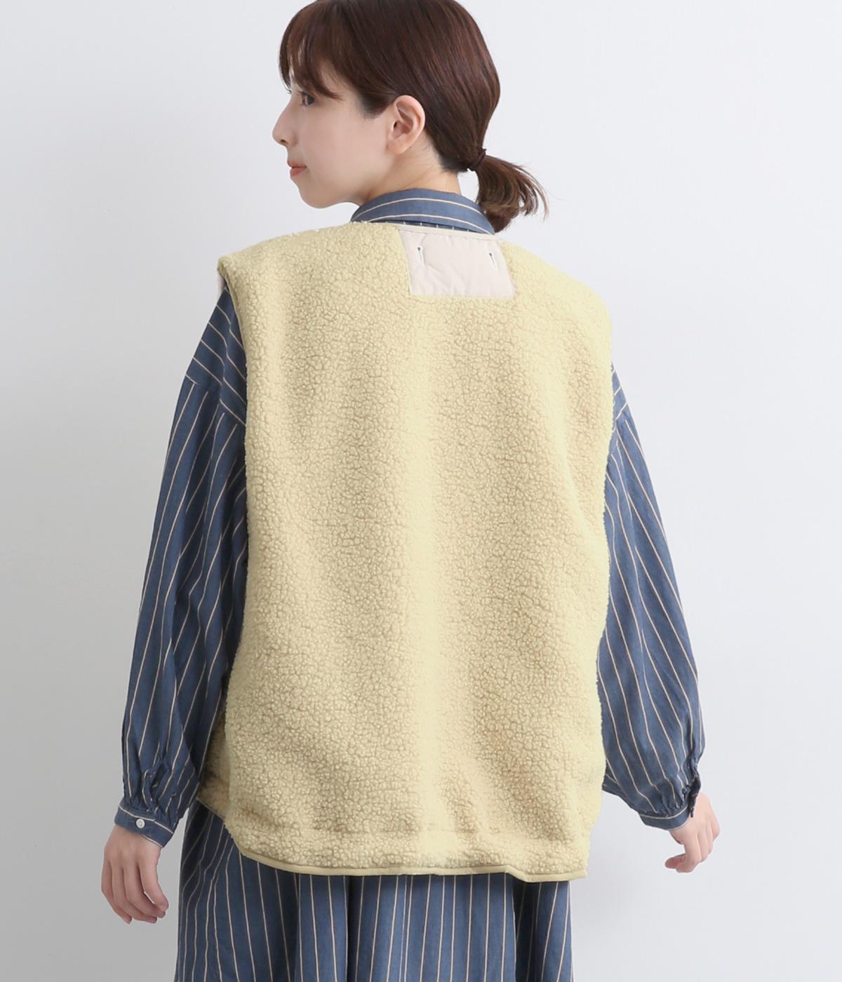 ペーパータッチの軽いコットンナイロンと、もこもことした肌触りが気持ちのいいボアのリバーシブルベスト。ボリュームがありながらもレイヤードしやすい軽量仕上げ。