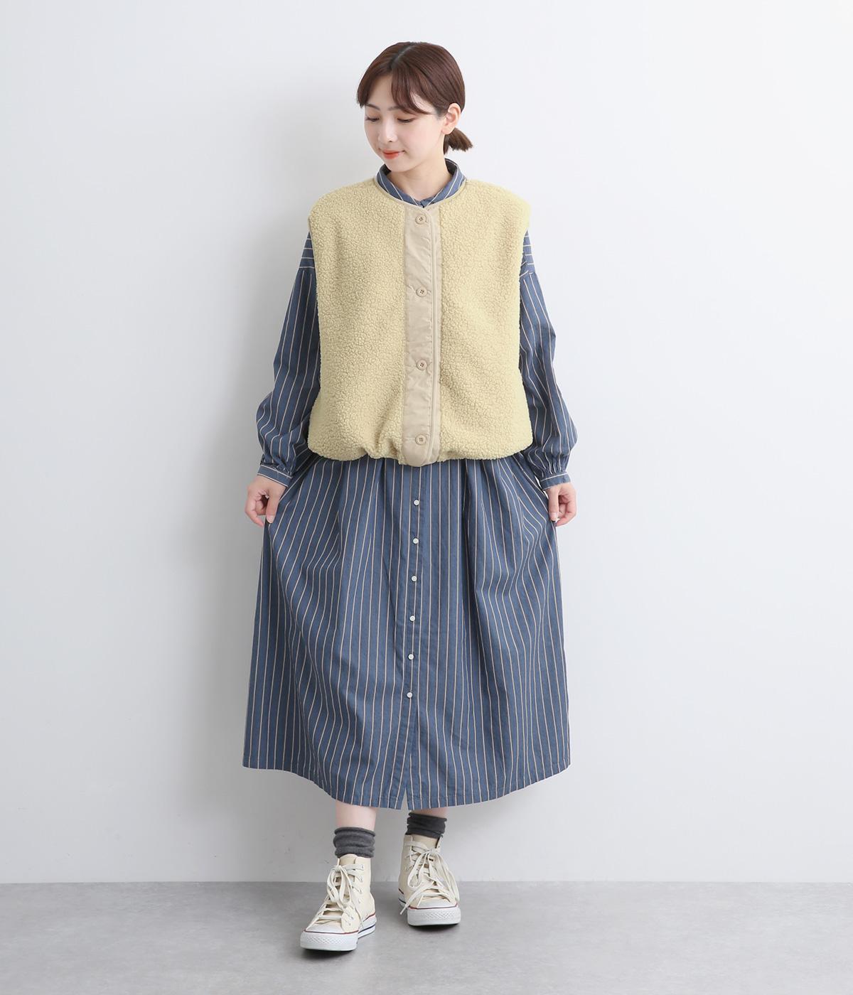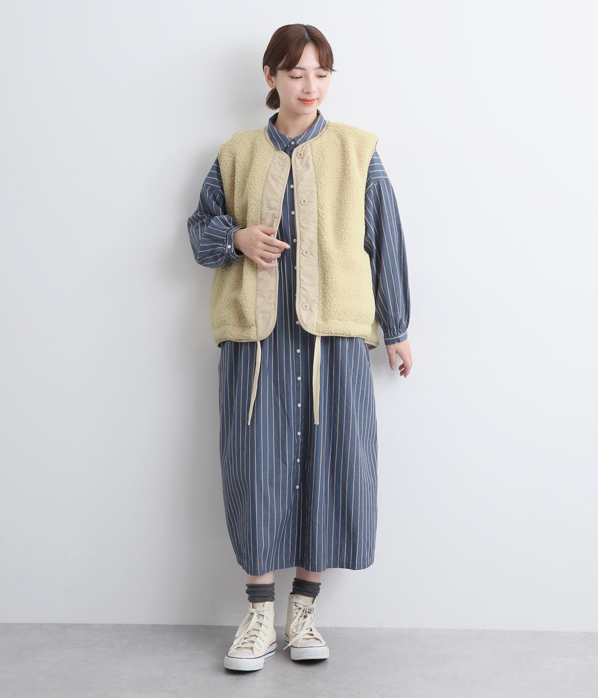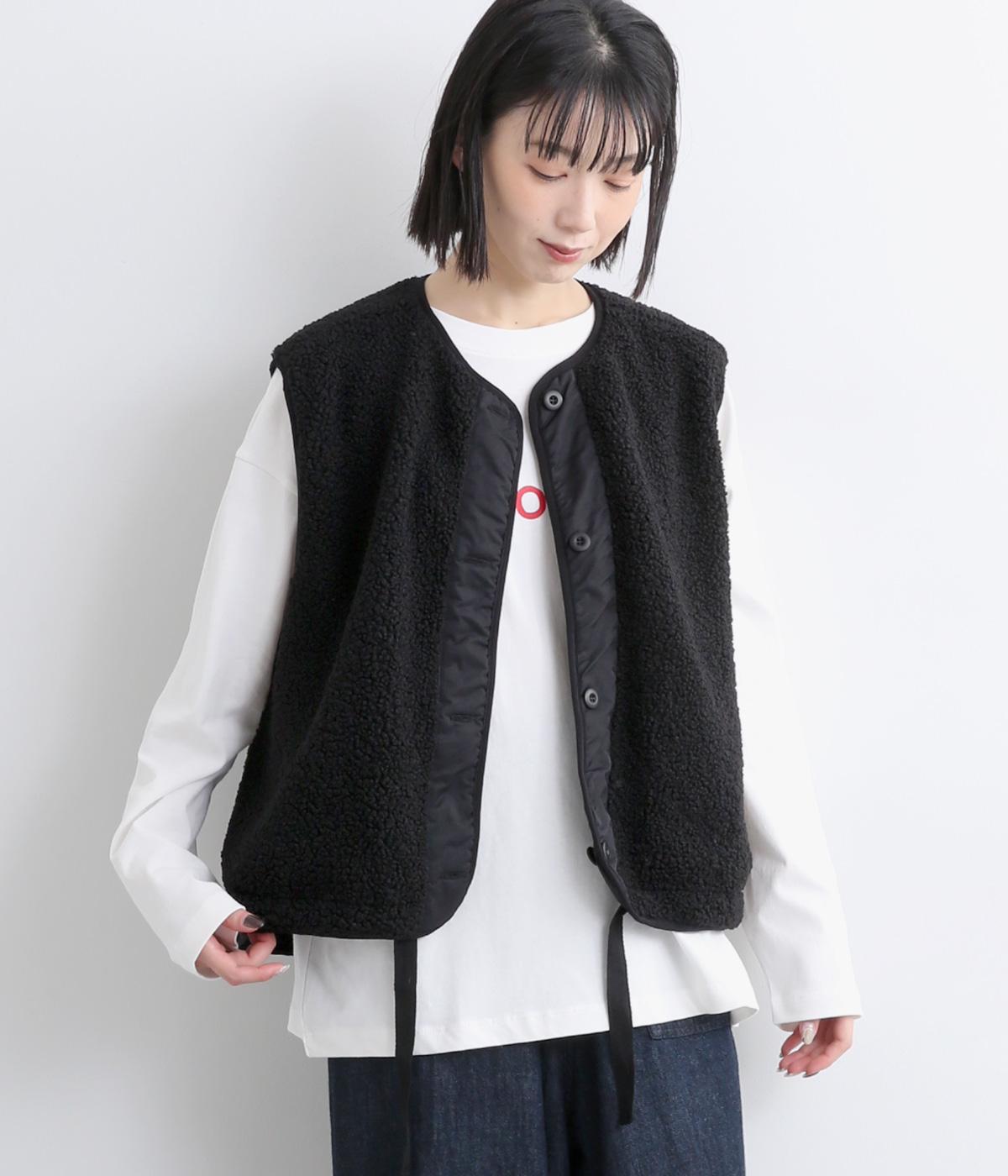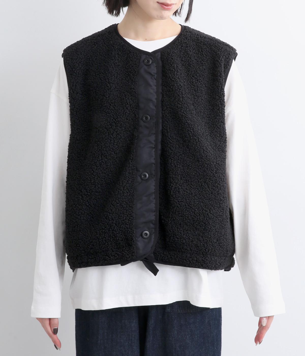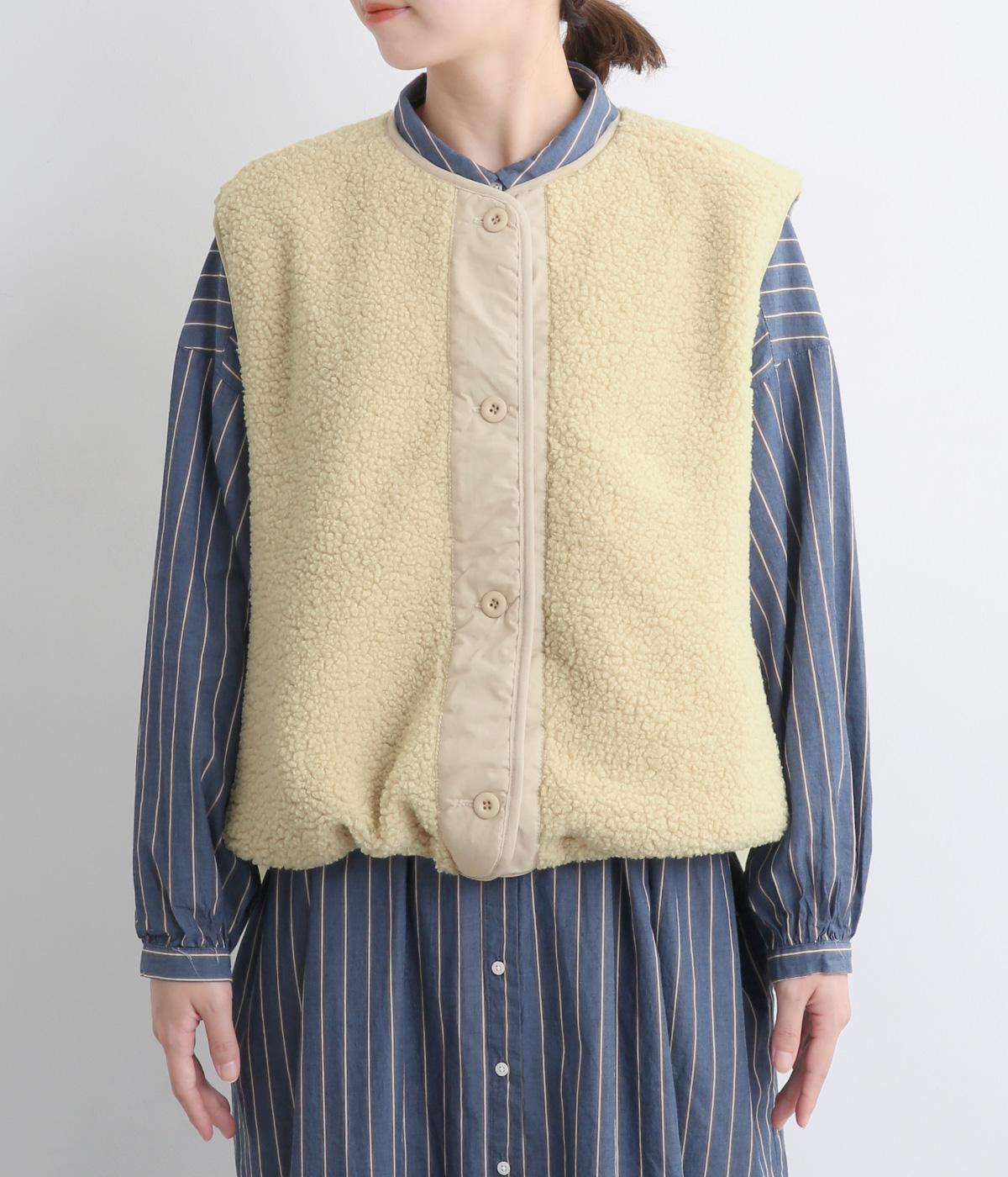 ペーパータッチの軽いコットンナイロンと、もこもことした肌触りが気持ちのいいボアのリバーシブルベスト。ボリュームがありながらもレイヤードしやすい軽量仕上げ。