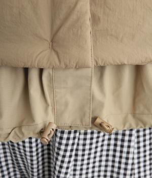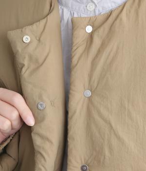 摩耗、摩擦に強く耐久性のあるナイロン生地を使用しました。中綿入りでふわっと厚みを持たせながらも、とても軽いのでストレス無く着用できます。シワも気になりにくく旅行などにも最適。