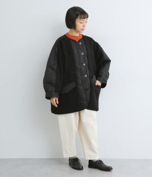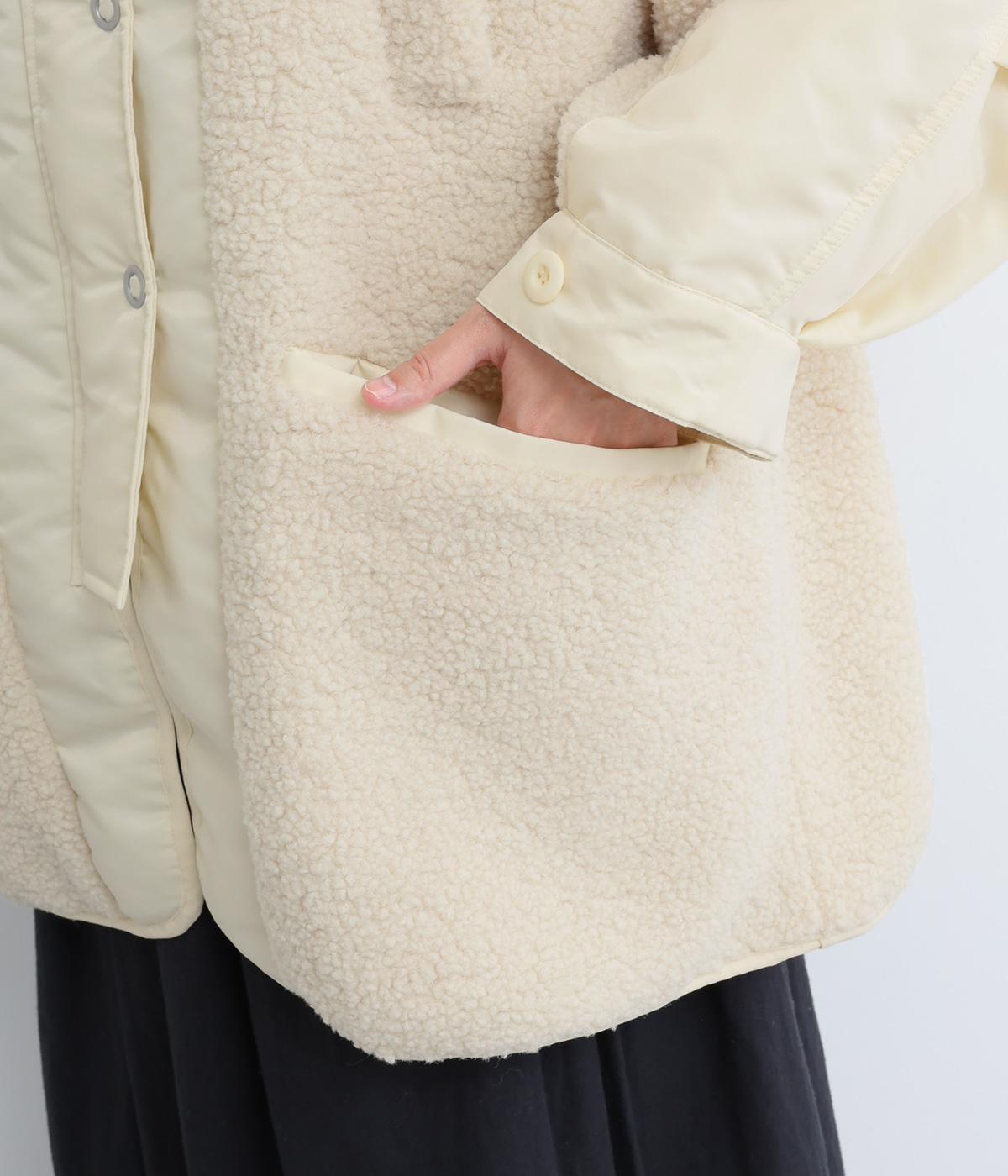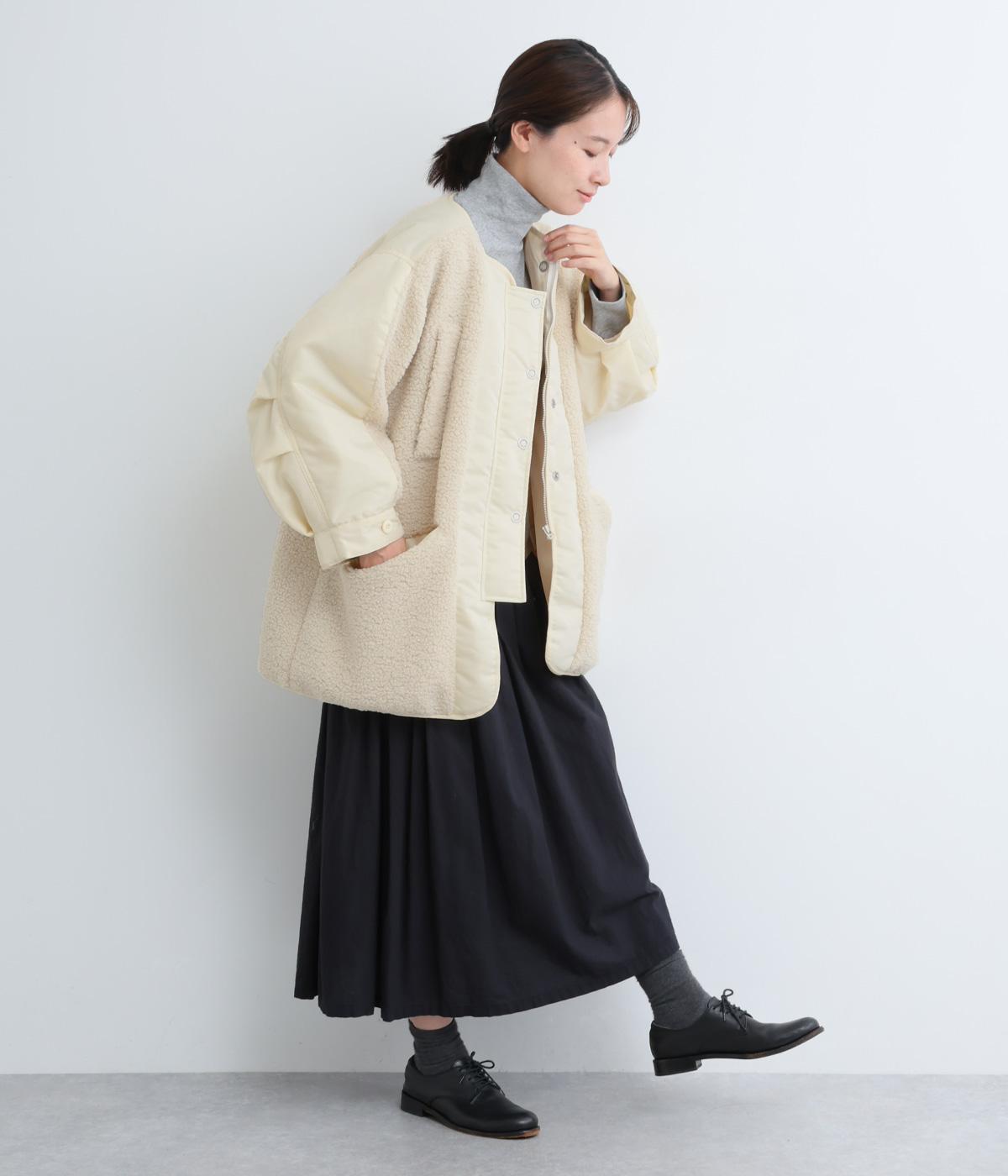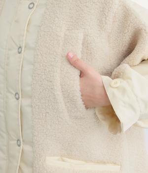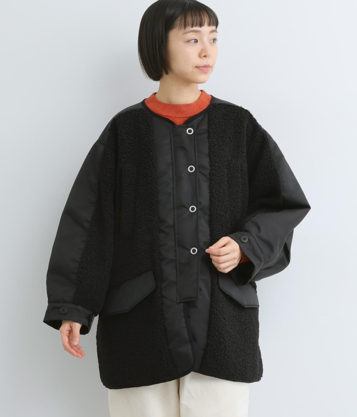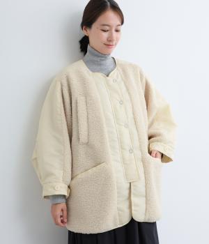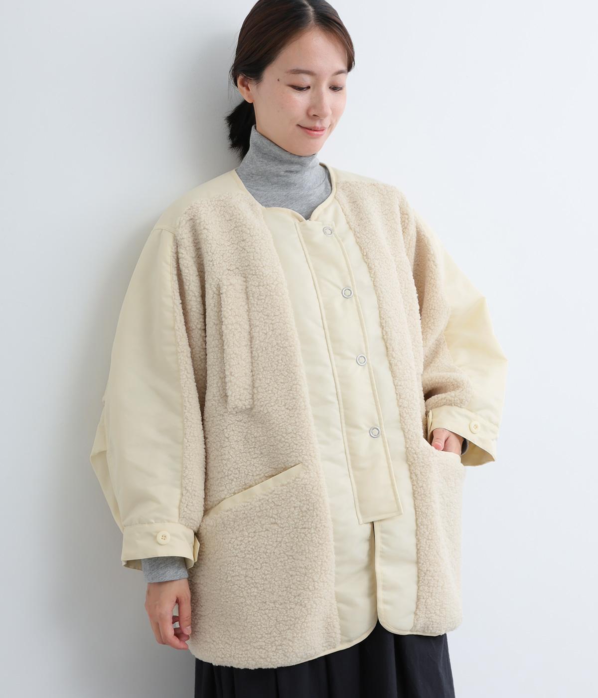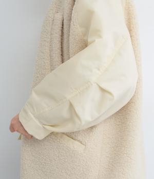 スポーティな印象を与えるナイロンと、可愛らしさのあるボアを組み合わせた異素材MIX。薄中綿なのでボリューム感のわりに軽く、着こなしによって長く活躍します。