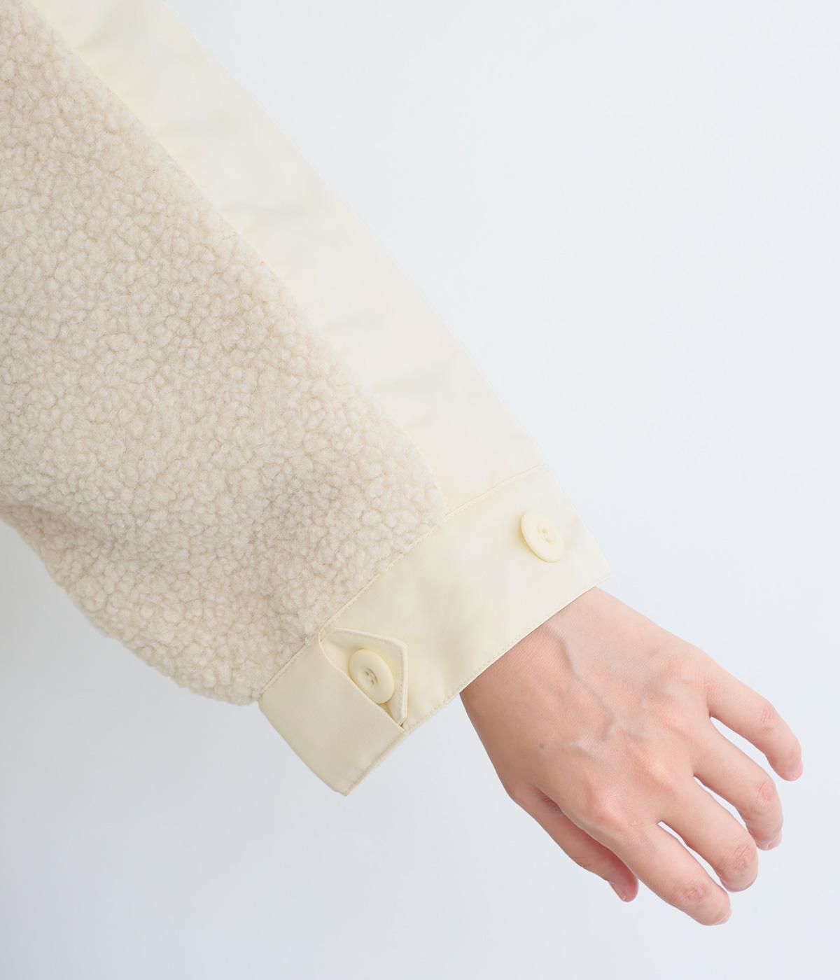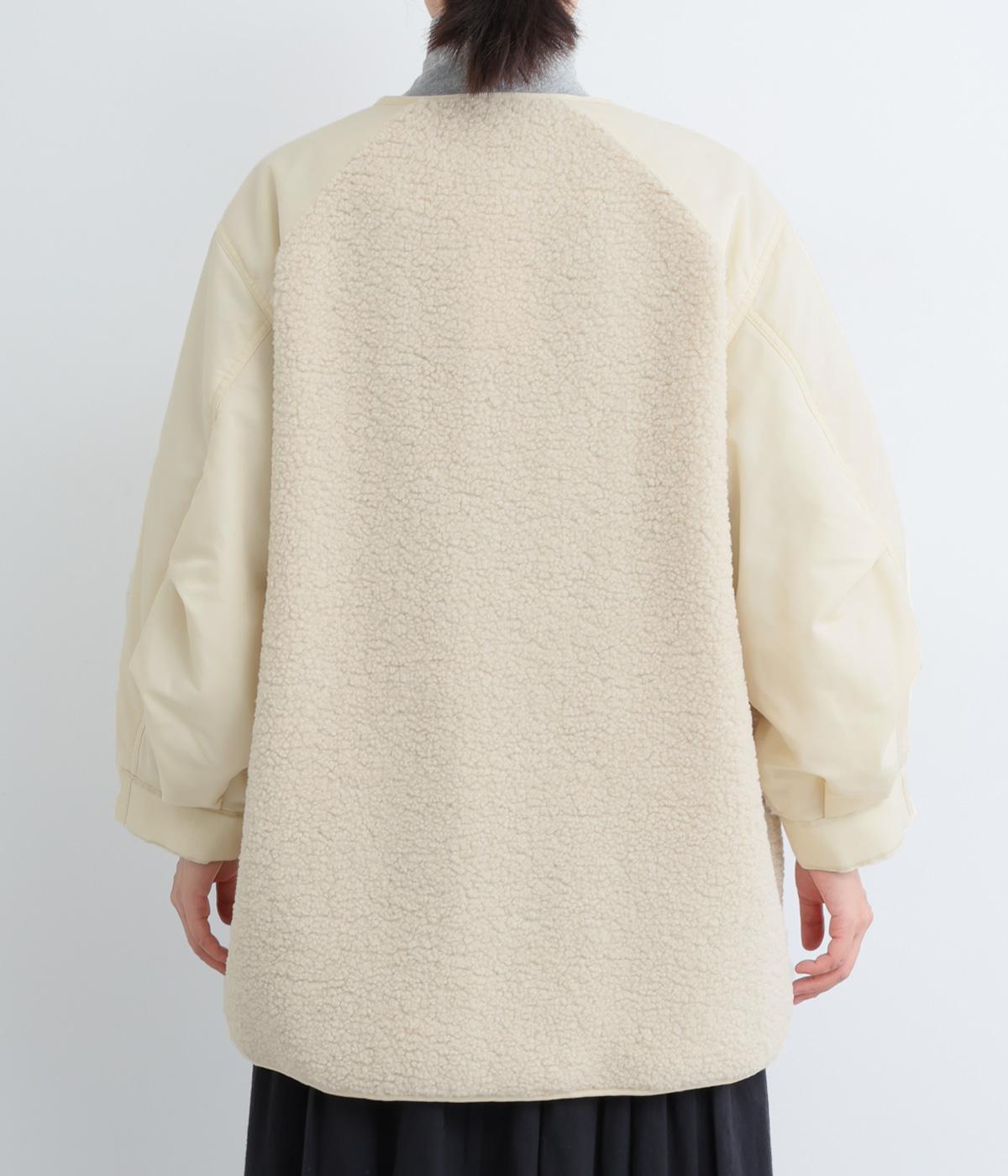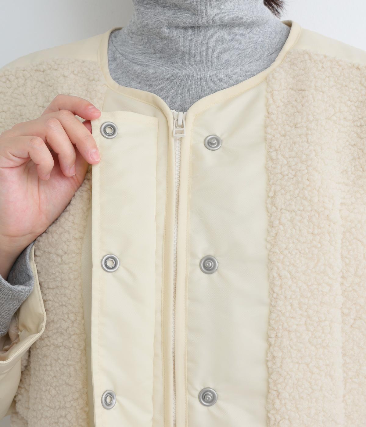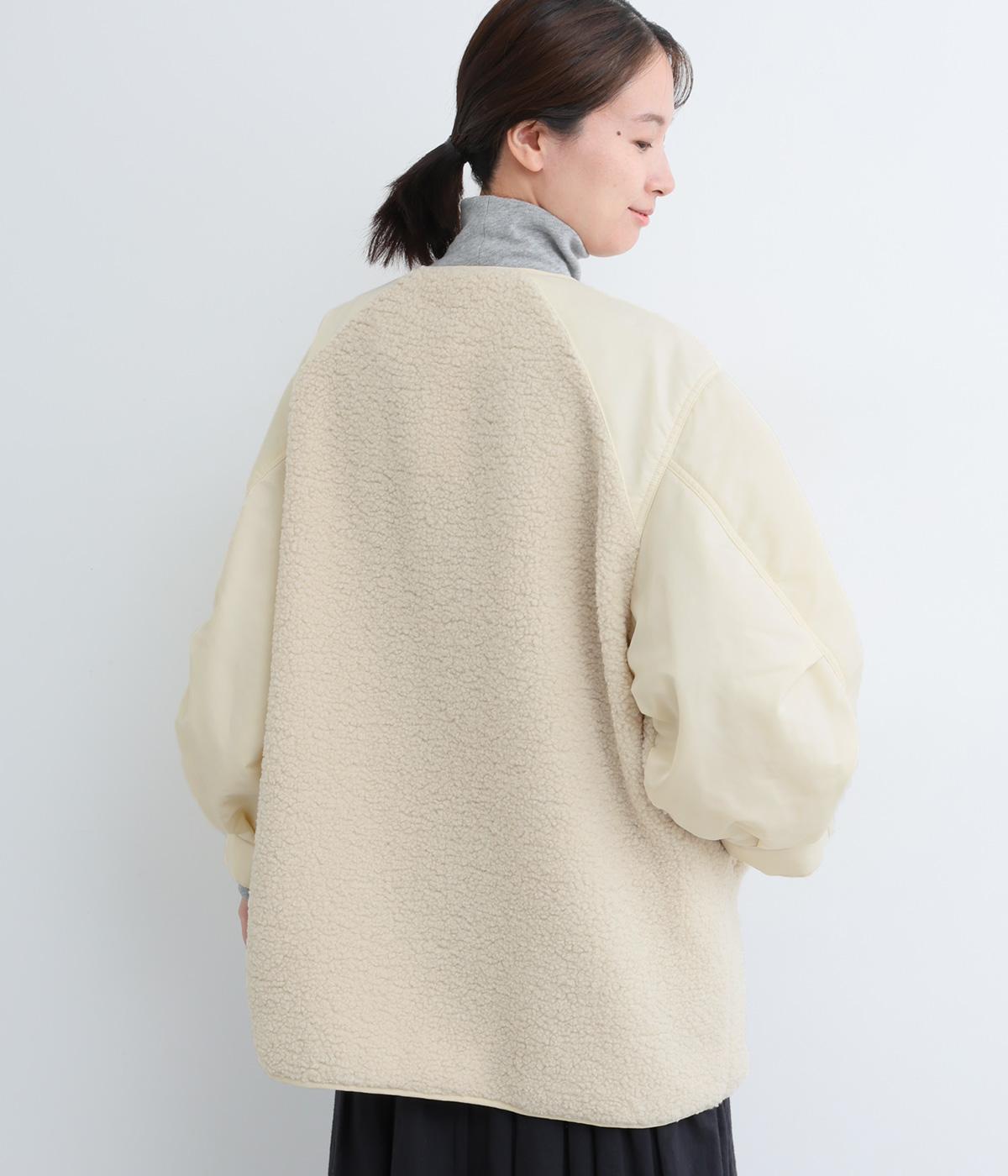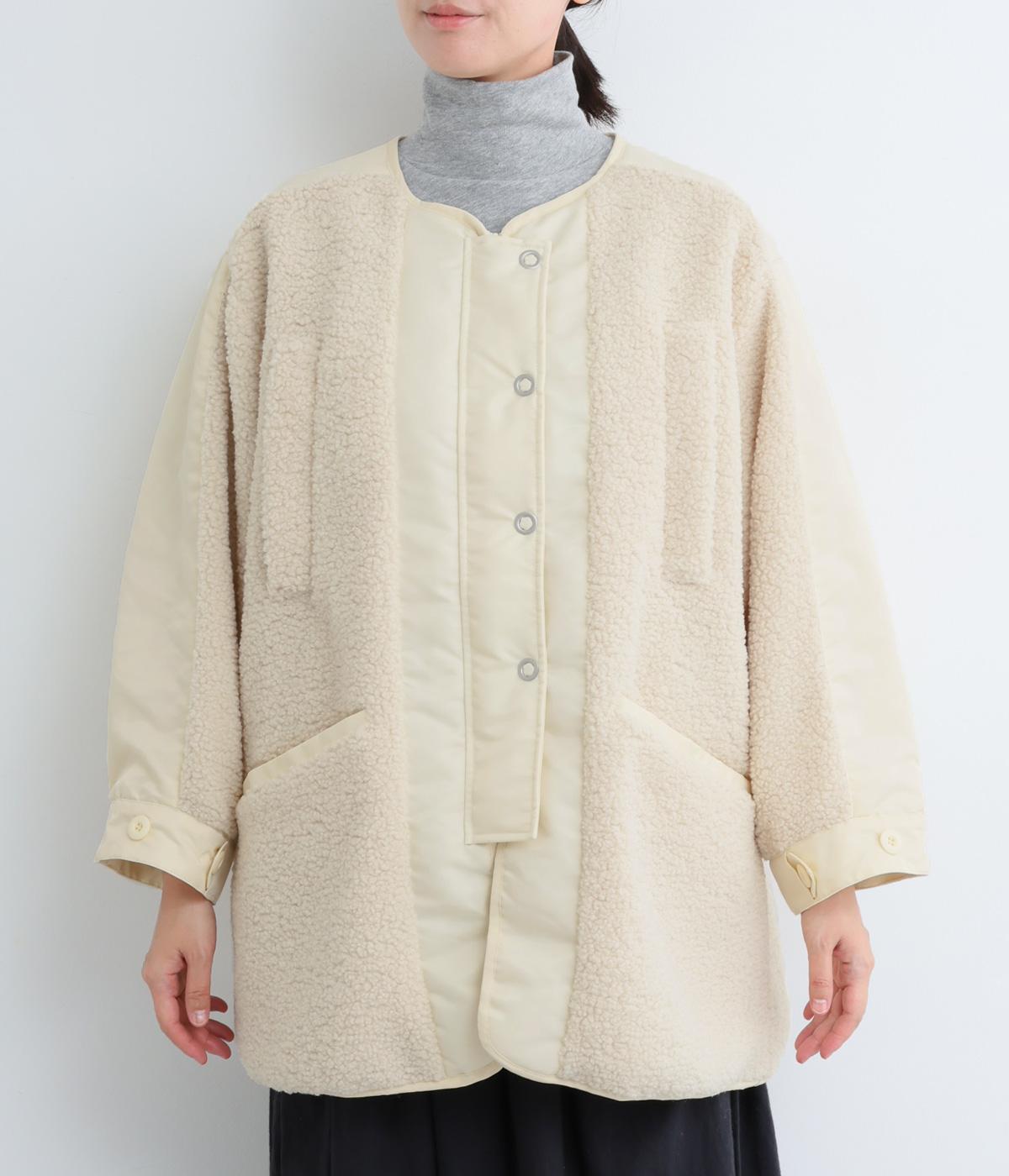 スポーティな印象を与えるナイロンと、可愛らしさのあるボアを組み合わせた異素材MIX。薄中綿なのでボリューム感のわりに軽く、着こなしによって長く活躍します。