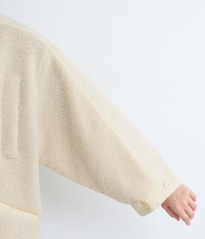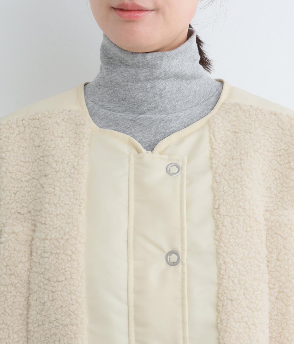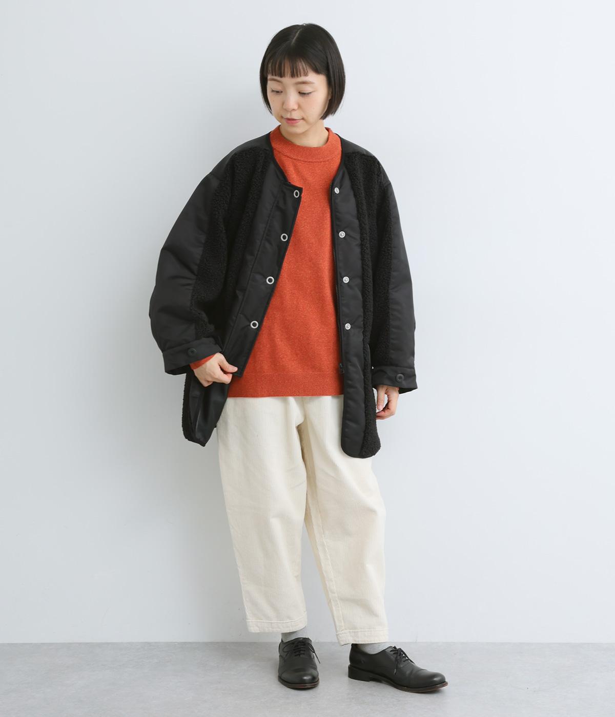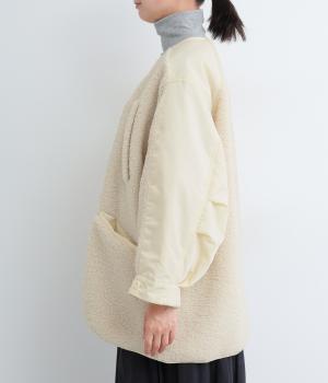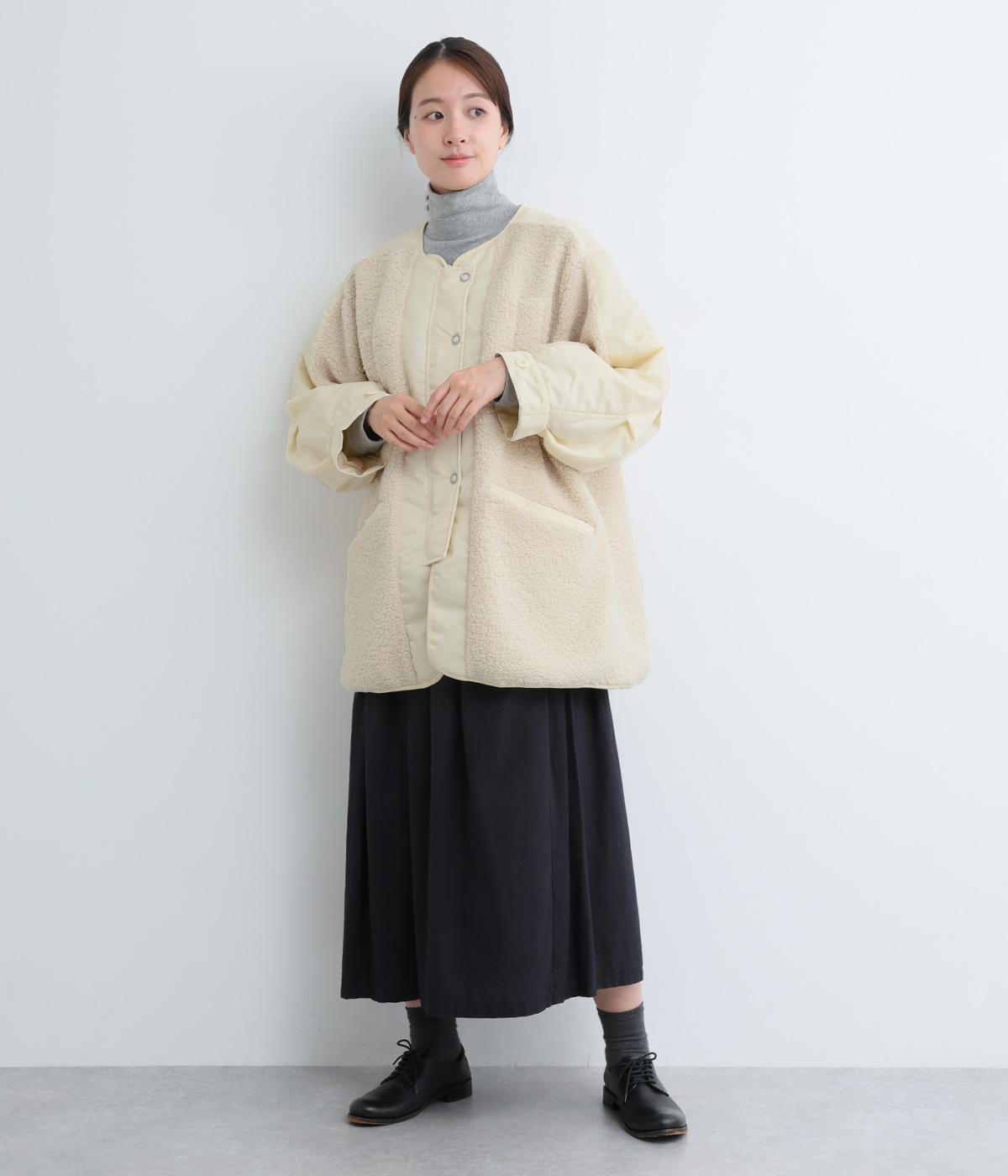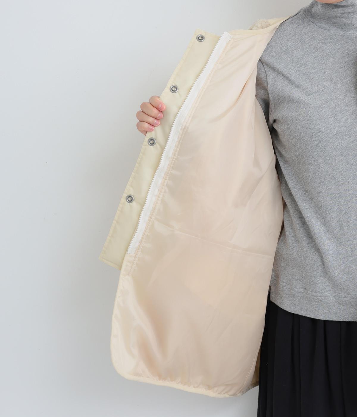 スポーティな印象を与えるナイロンと、可愛らしさのあるボアを組み合わせた異素材MIX。薄中綿なのでボリューム感のわりに軽く、着こなしによって長く活躍します。