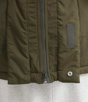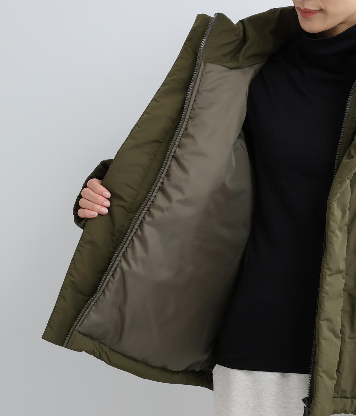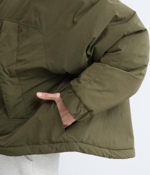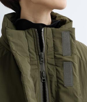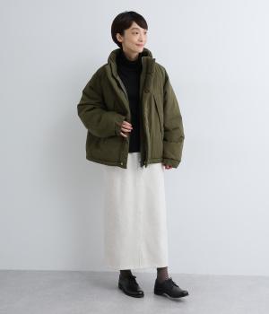 寒冷地用アウターの「モンスターパーカー」をベースに、ショート丈にアレンジした存在感のある一枚です。スタンドカラーは比翼仕立てで風を防ぎ、見た目もすっきり。ほどよいボリューム感がありながら、コンパクトな丈感が全体を軽やかに見せます。どんなボトムスとも合わせやすいのがうれしいポイント。