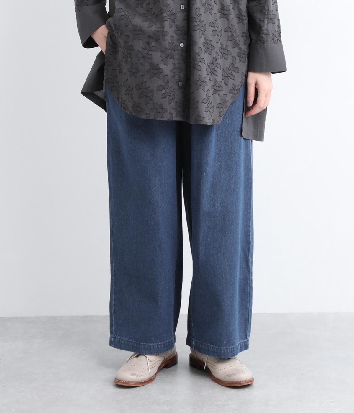 適度な厚みの安心感とストレスのないやわらかいはき心地を両立させたライトコットンデニムで仕立てました。デニムの特性を活かしつつも軽やかで、あたたかな季節含めロングシーズン活躍します。
