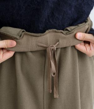 ボックスシルエットが美しいシンプルなロングスカートです。カジュアルな中にも品のある趣を感じられます。立体的なフォルムで体のラインを拾いにくいのも◎。腰回りは総ゴム、紐で微調整が可能です。