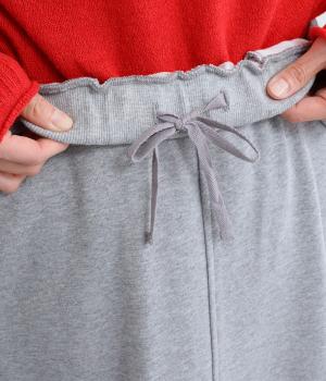 空気をふくんだダブルフェイス生地を使用し、ふんわりとやわらかな着心地を叶えました。適度な厚みとハリ、伸縮性があるので、体のラインを拾いにくく、安心感のあるはき心地です。