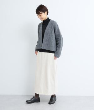 ストンと落ちるIラインが美しい、こだわりのボックスシルエットが魅力です。ヒップラインを拾いにくいので、はくだけでスタイルが引き立ちます。ポケットはやや深めで実用性も◎。長めの着丈が上品な印象を生み、カジュアルはもちろん、きれいめなスタイルとも相性ばつぐんです。