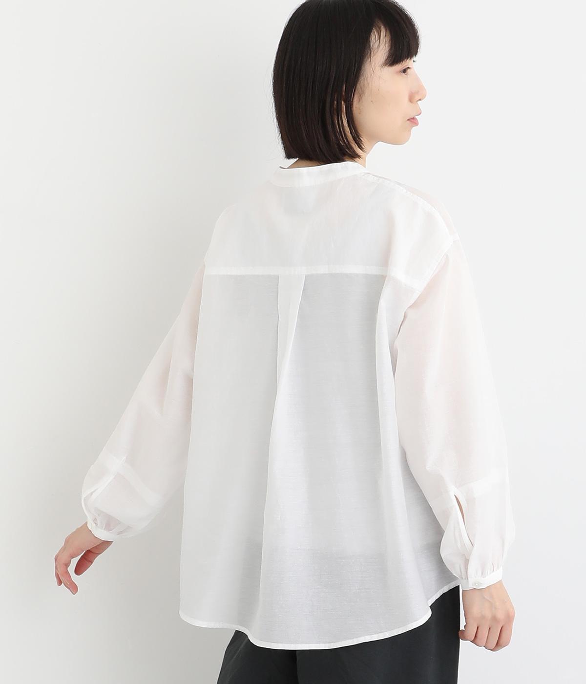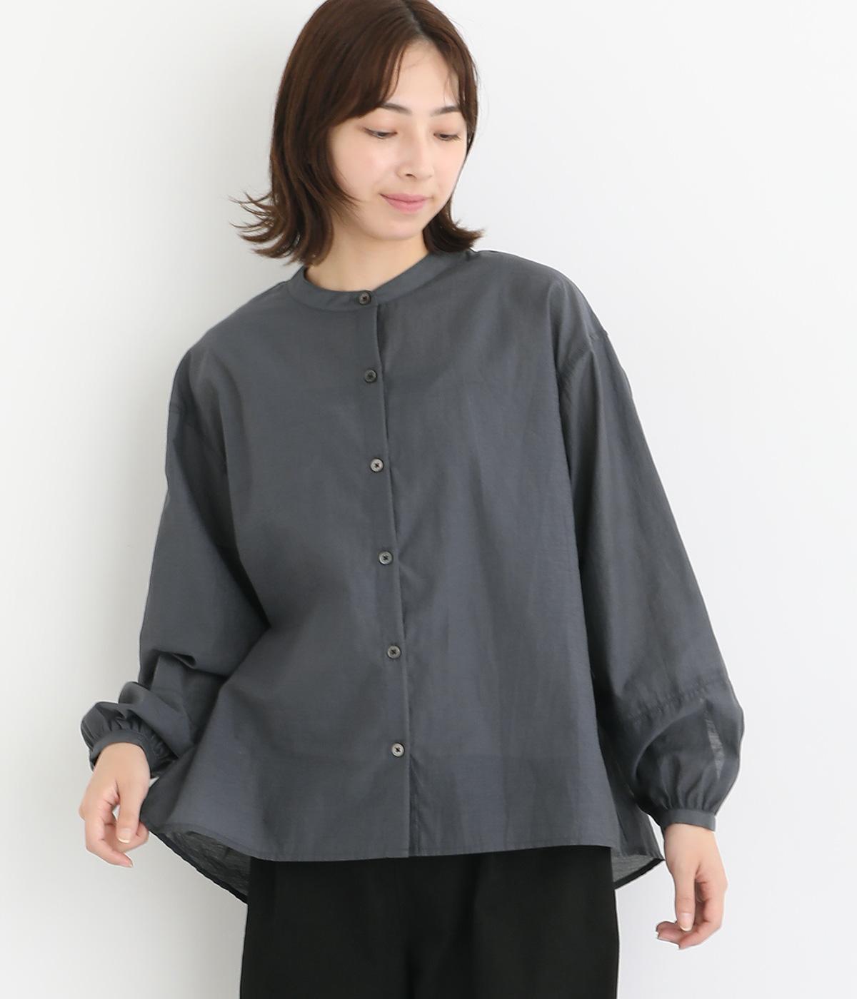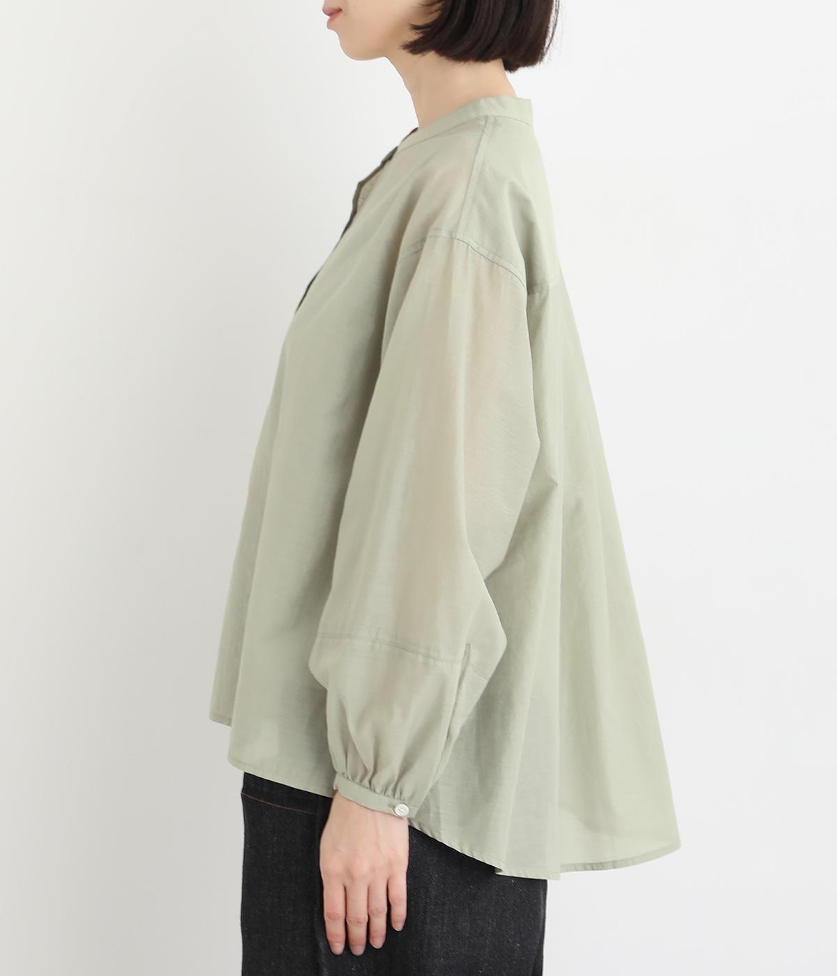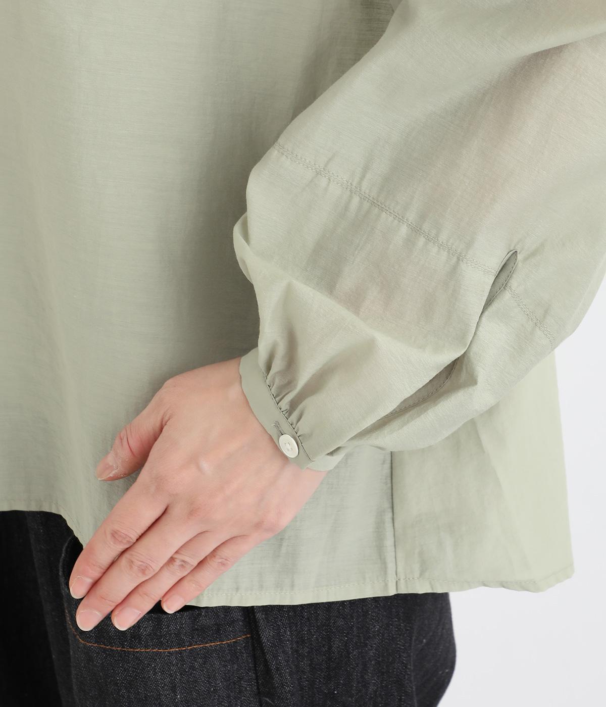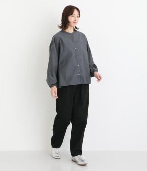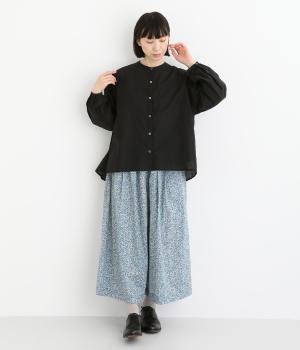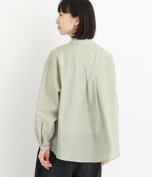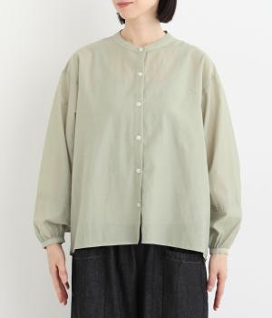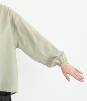 袖口に切り替えとギャザーを入れた、女性らしいバルーンスリーブのブラウス。小さく立ち上がったネックがきちんと感を添えてくれます。バックにはセンタープリーツを入れてふわりとした優雅な後ろ姿に。羽織りとしてもインナーとしても活躍し、ロングシーズン着まわせます。