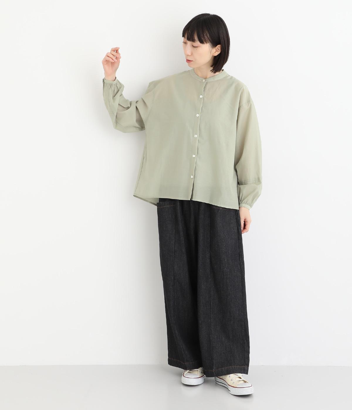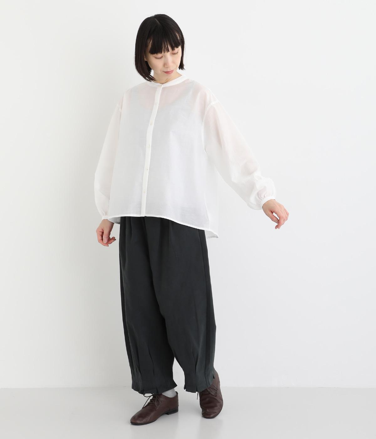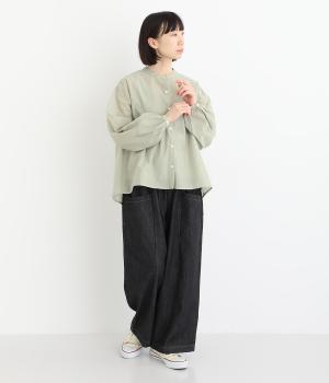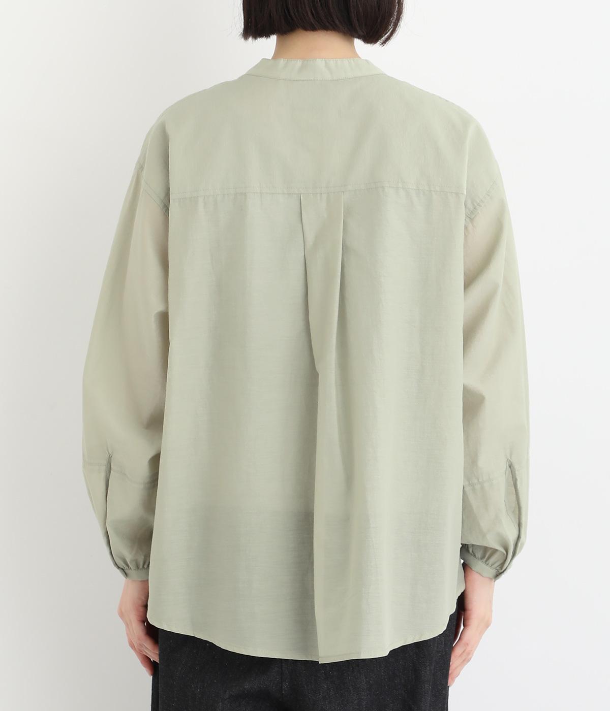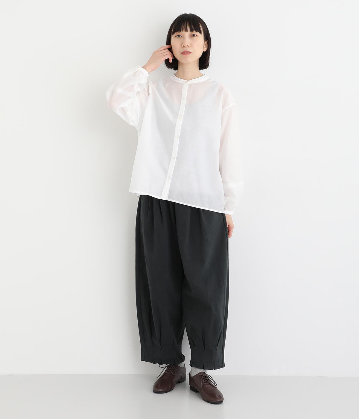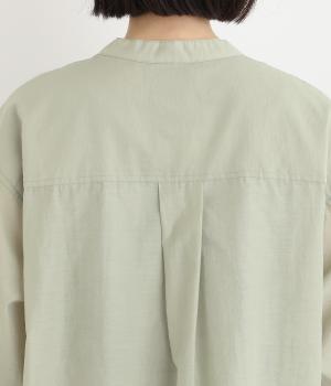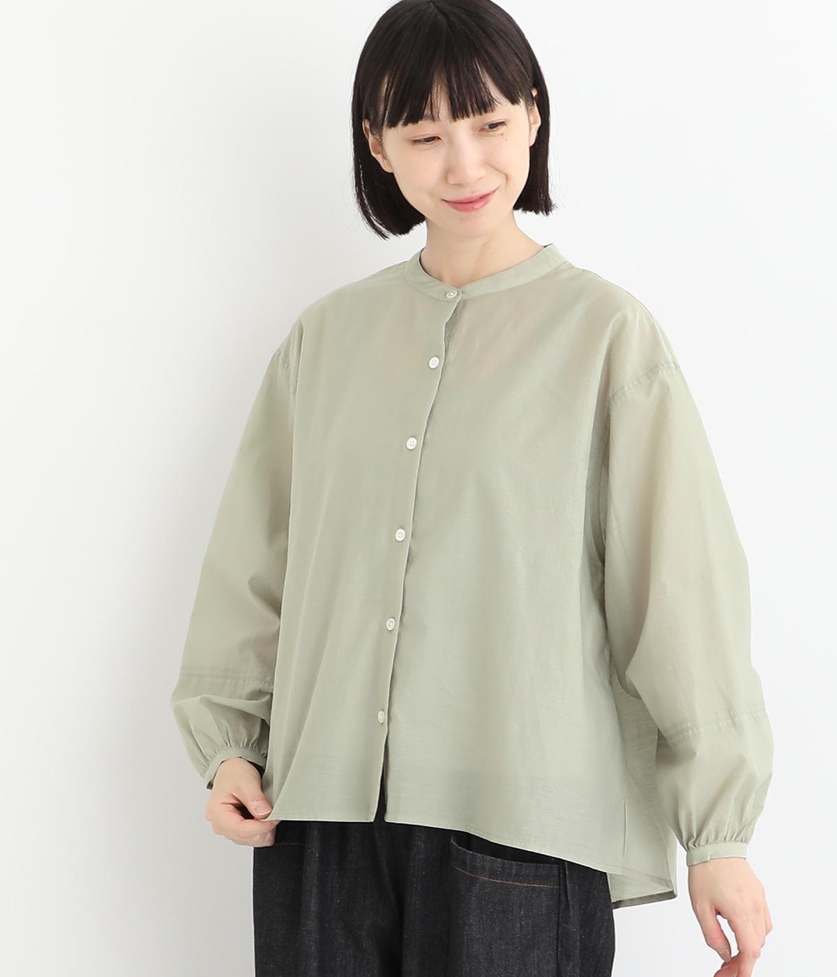 袖口に切り替えとギャザーを入れた、女性らしいバルーンスリーブのブラウス。小さく立ち上がったネックがきちんと感を添えてくれます。バックにはセンタープリーツを入れてふわりとした優雅な後ろ姿に。羽織りとしてもインナーとしても活躍し、ロングシーズン着まわせます。