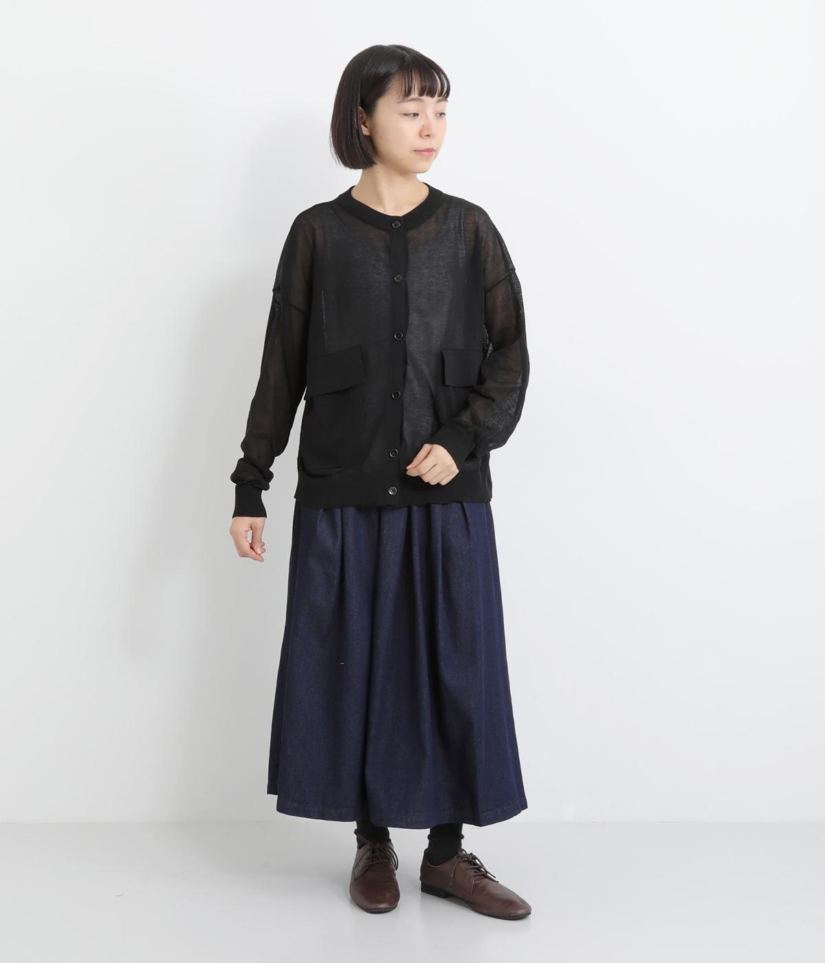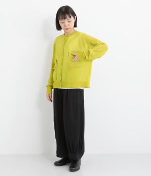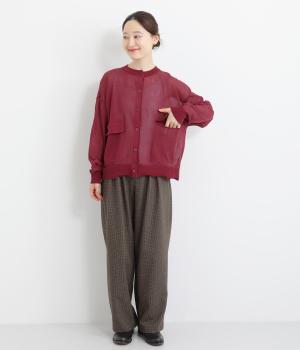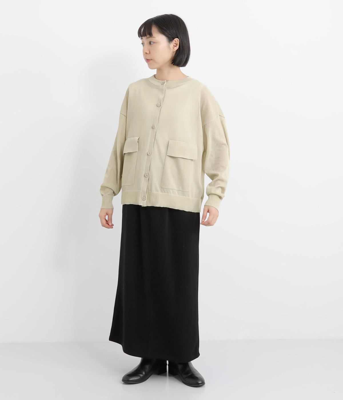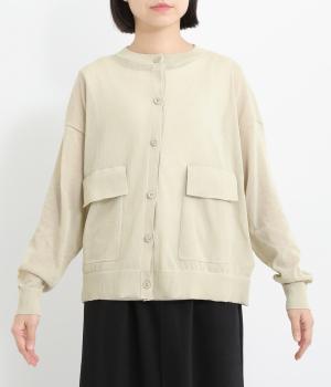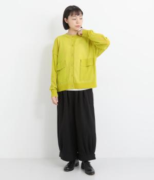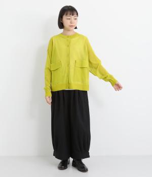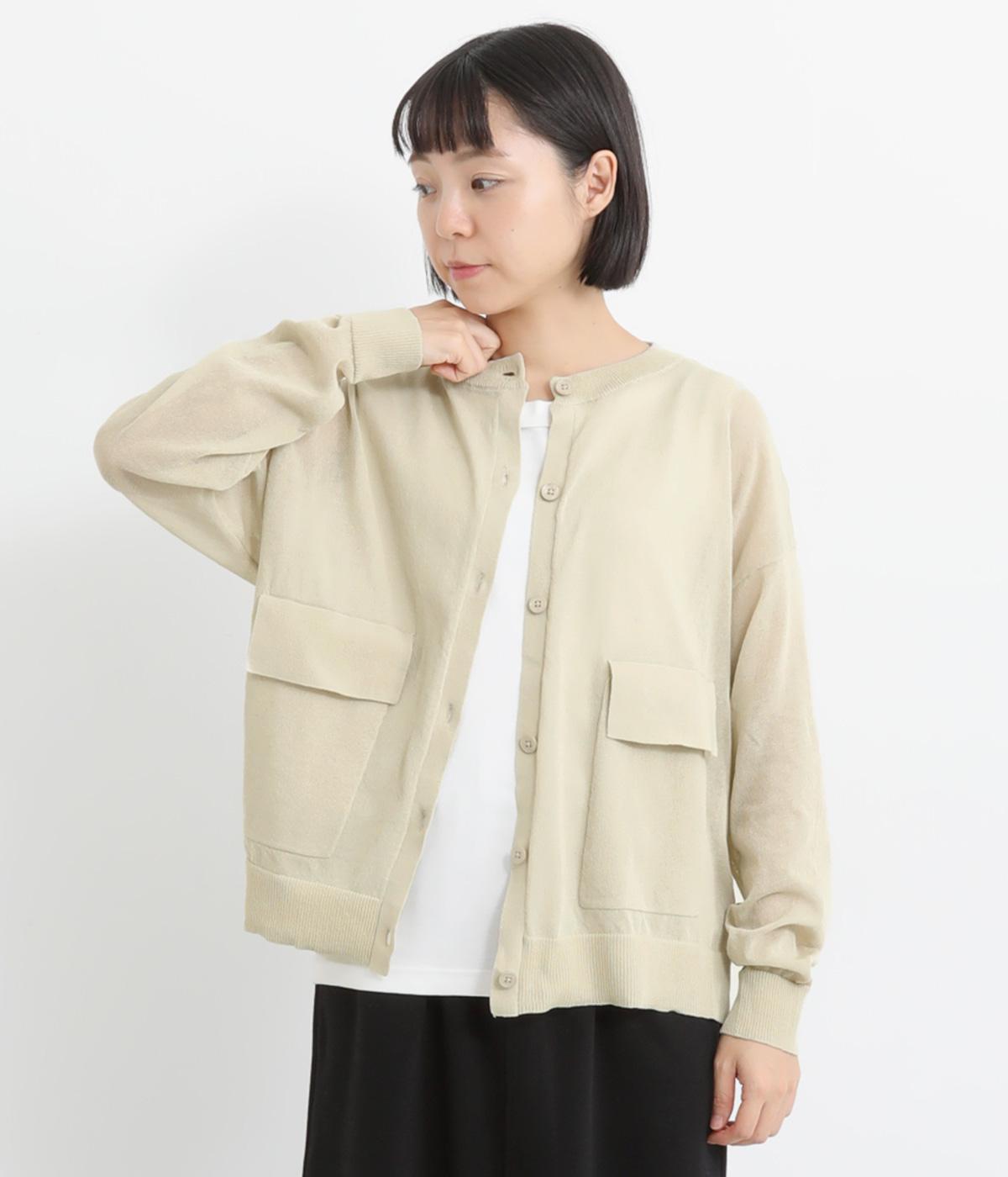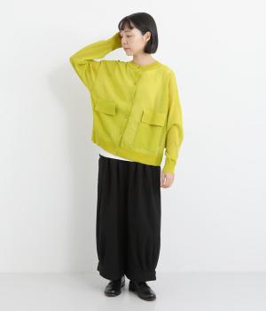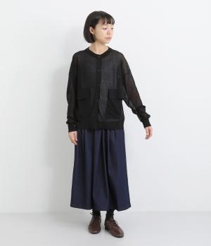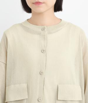 フロントの大きなポケットとまるみのあるシルエットが印象的。生地の透け感をいかし、インナーの合わせ次第でさまざまな表情をみせてくれます。ゆったりカジュアルにも、きれいめな装いにも使用できる魅力的なカーディガンです。