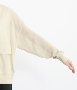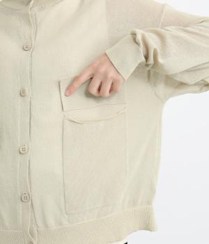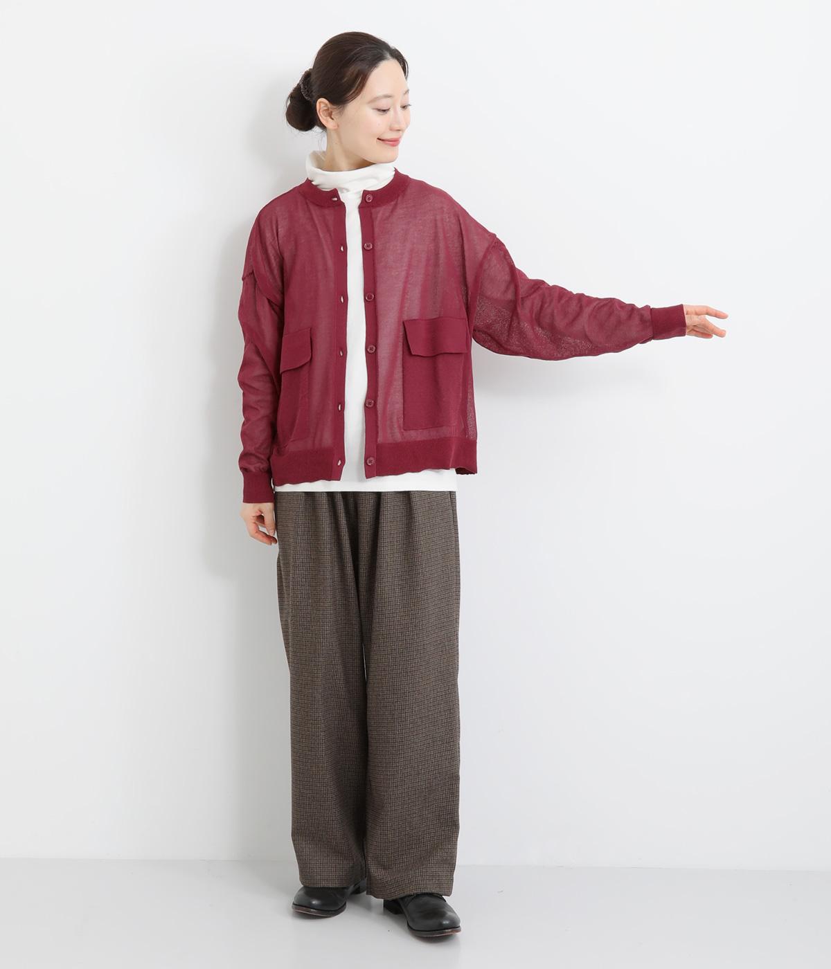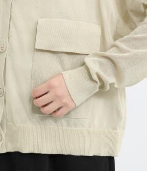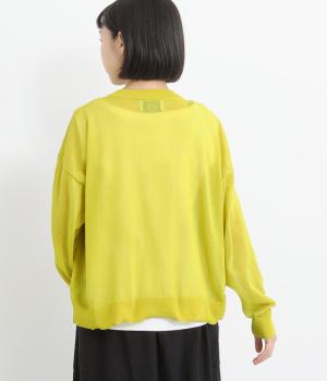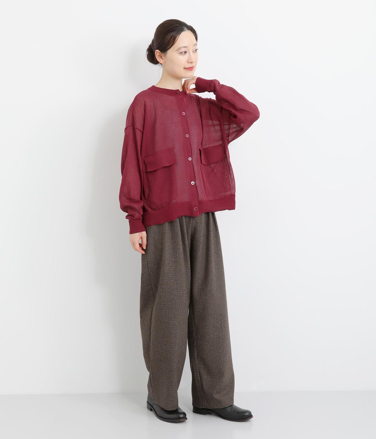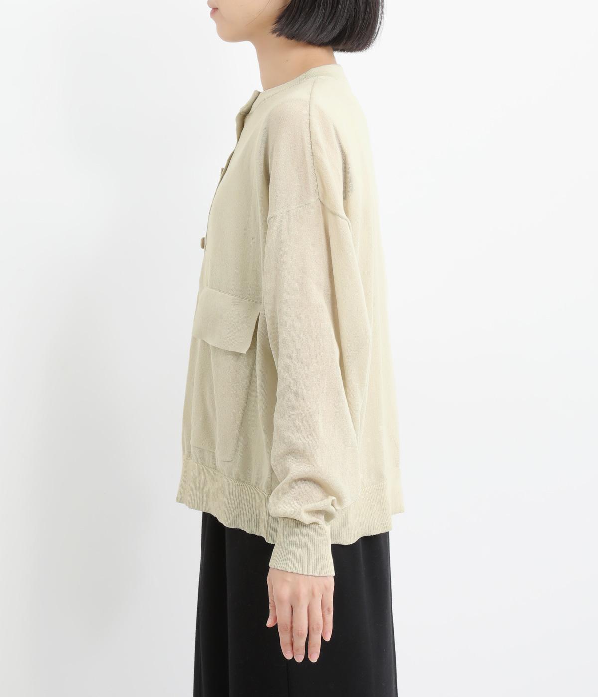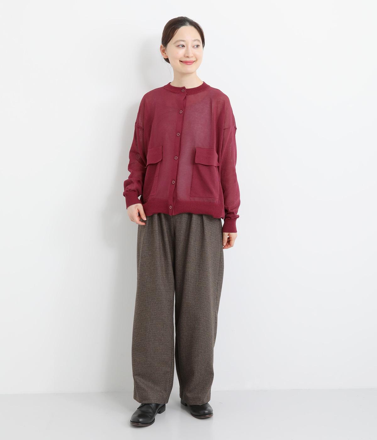 フロントの大きなポケットとまるみのあるシルエットが印象的。生地の透け感をいかし、インナーの合わせ次第でさまざまな表情をみせてくれます。ゆったりカジュアルにも、きれいめな装いにも使用できる魅力的なカーディガンです。