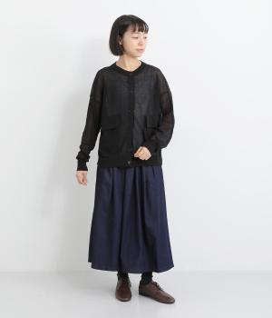 透け感のある、さらりとした素材が特徴的です。軽やかにさっと羽織れ、シワにもなりにくい生地のため外出時にも気軽にご使用できます。
