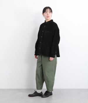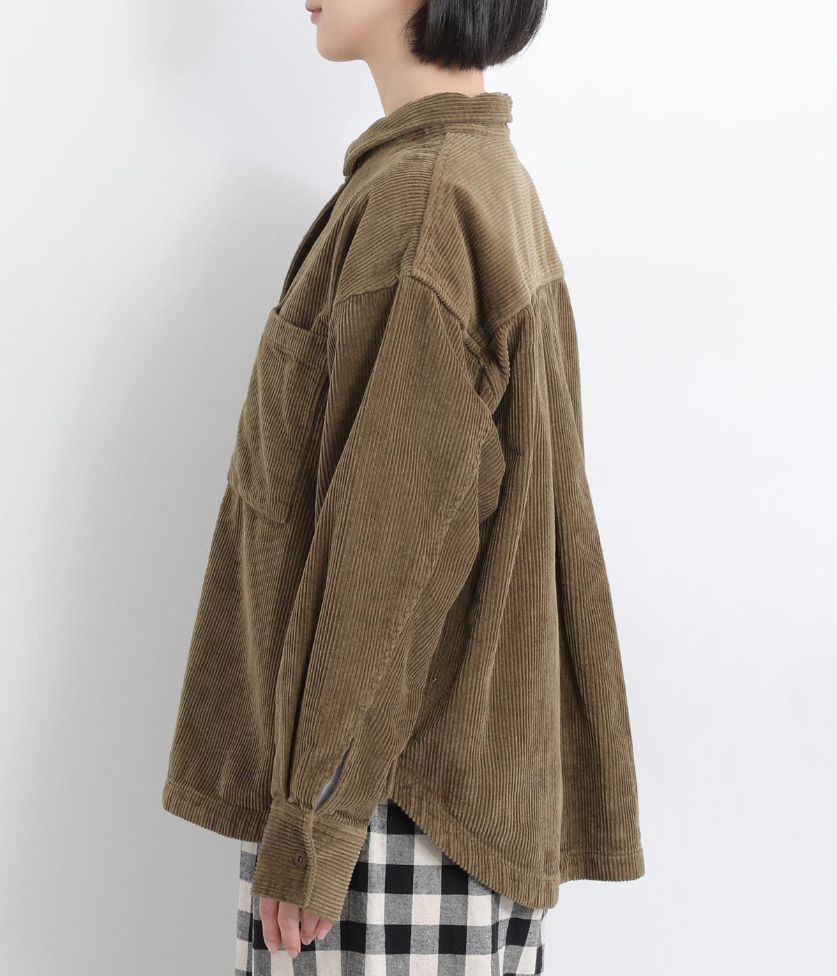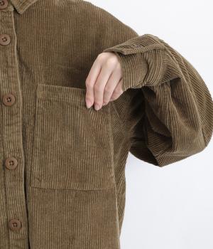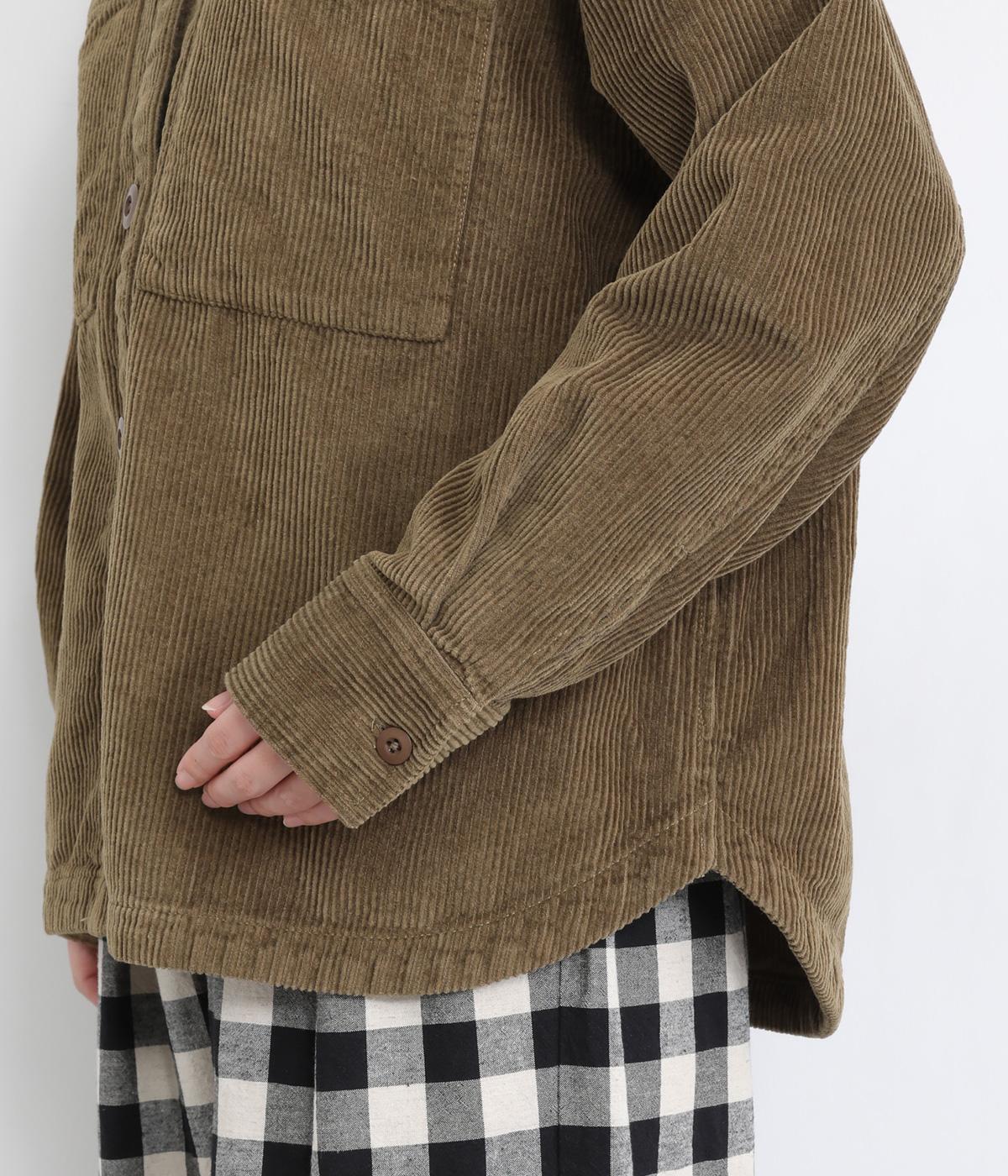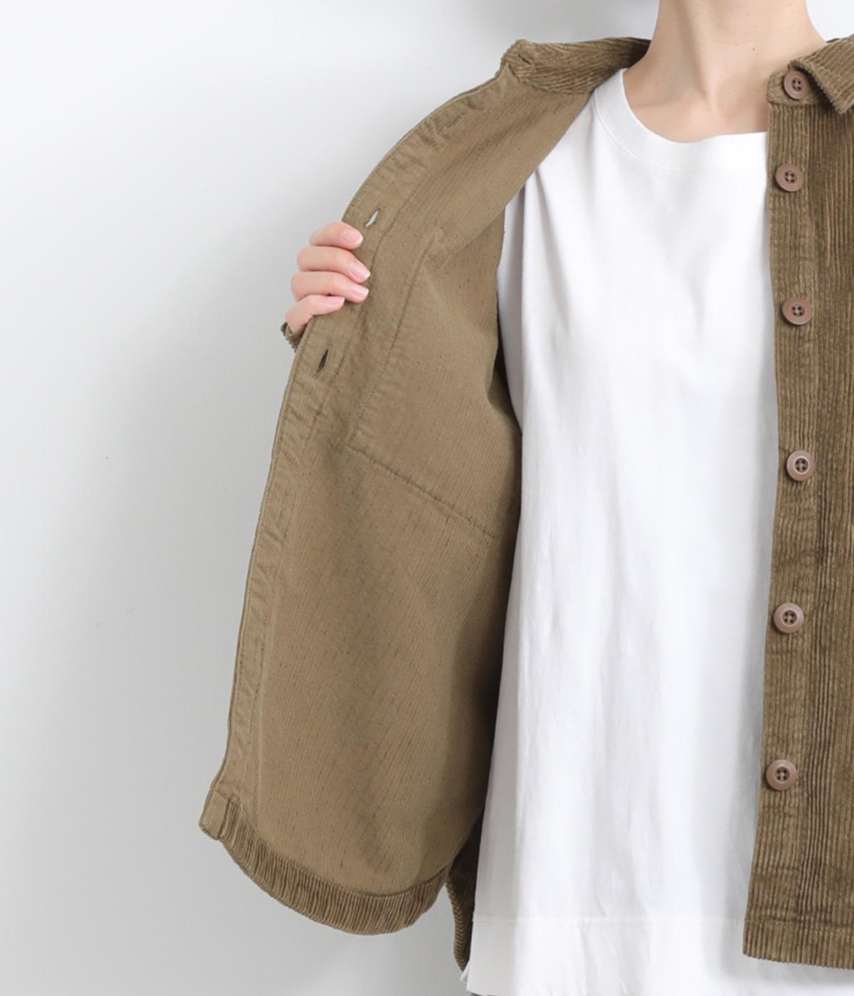 でこぼこと立体感のある、表情ゆたかな太コール生地を使用しました。ふわりとあたたかみのある素材は、羽織るだけで季節感のある着こなしをつくります。