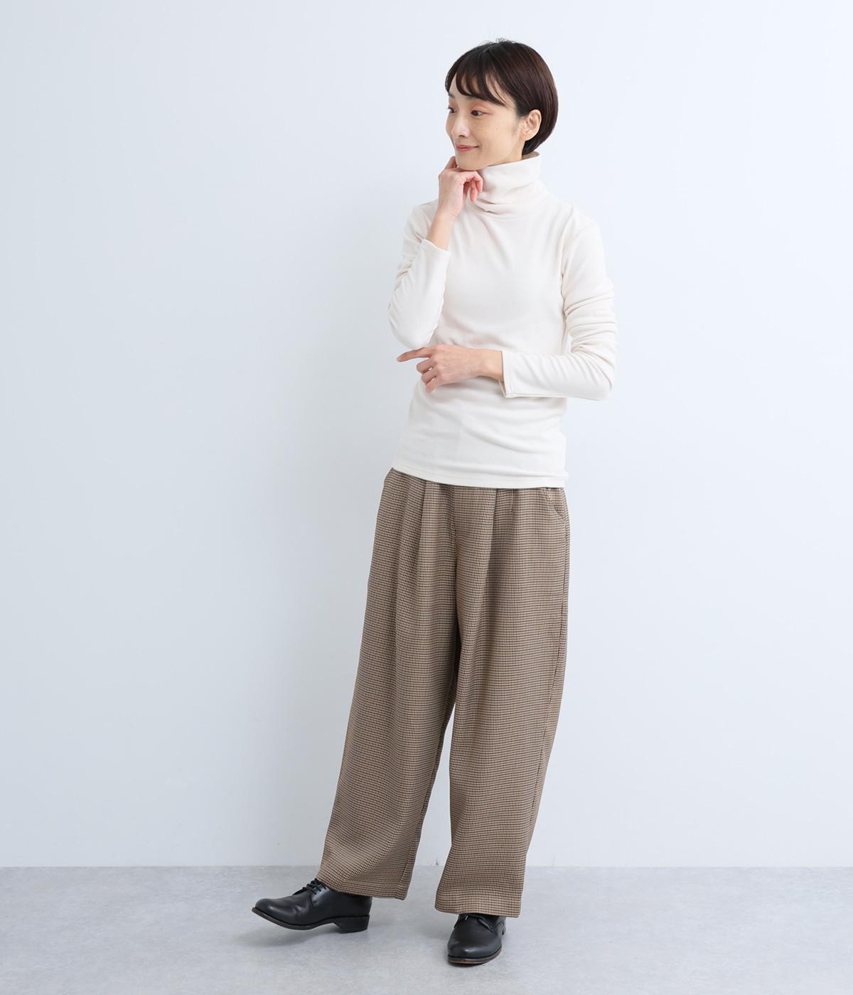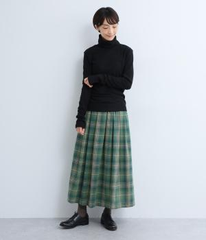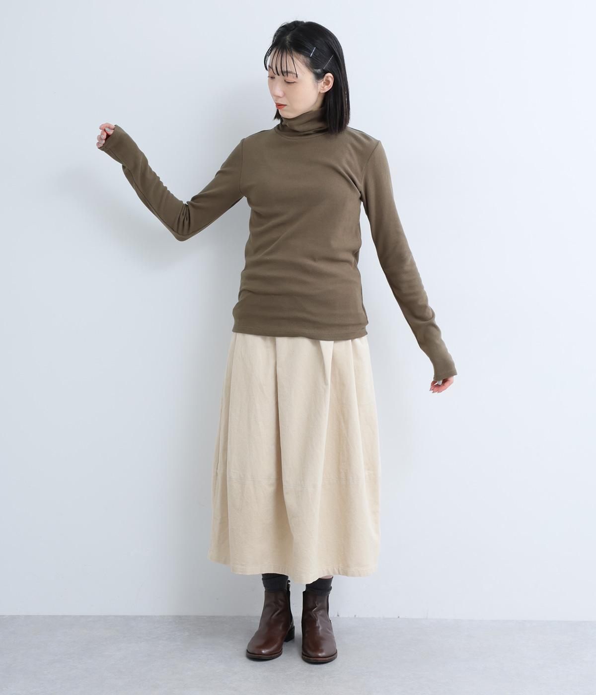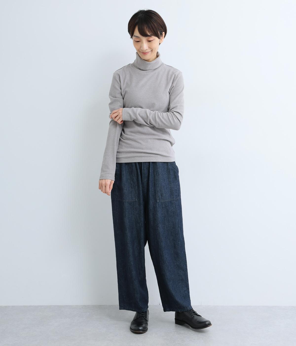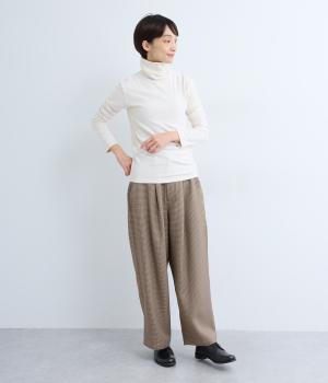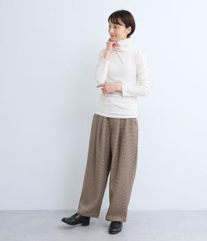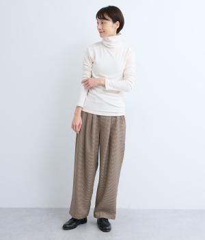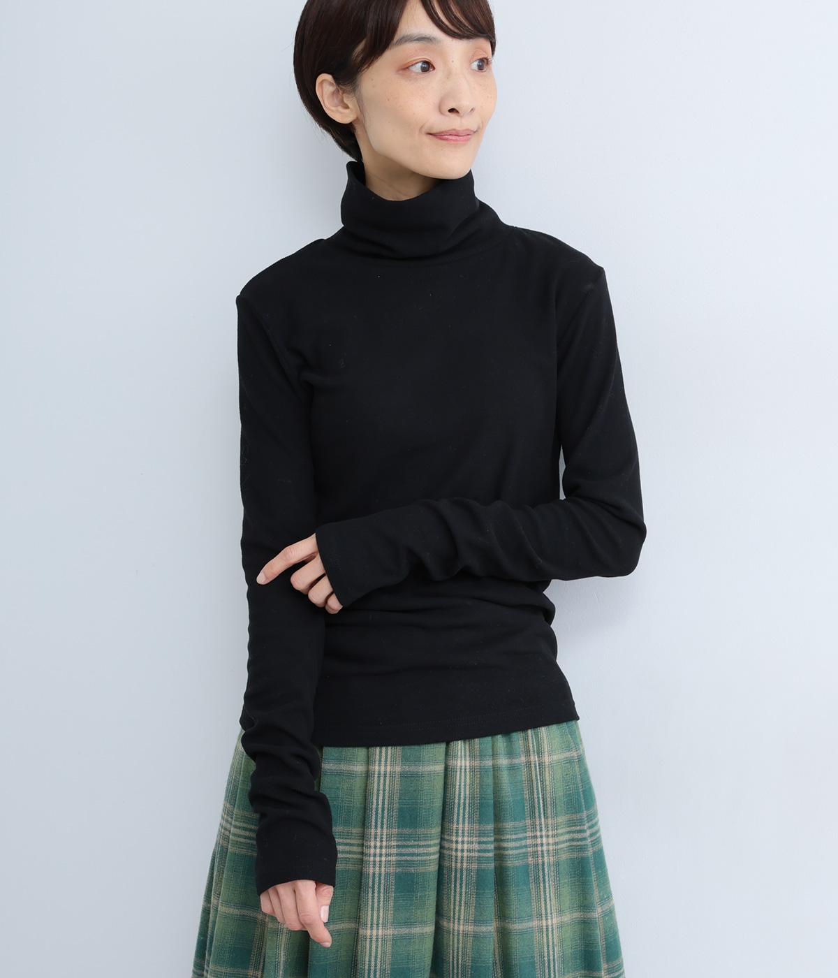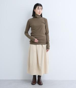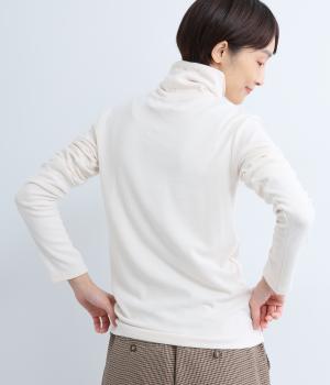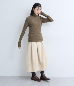 毎日の重ね着に活躍する、無駄のないミニマルなデザインです。高めのタートルネックは、その日の気分で折り返したり、ゆるくたゆませたりと、さまざまな表情をたのしめるのも◎。長めの袖が生み出す、手元にかけてのやわらかなシワが、大人の抜け感を演出します。