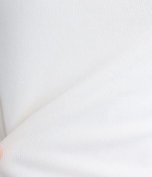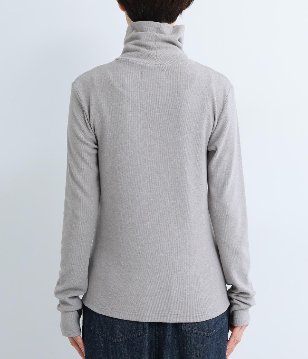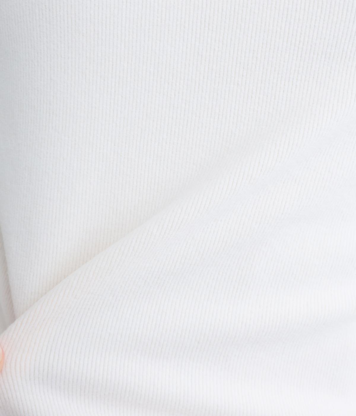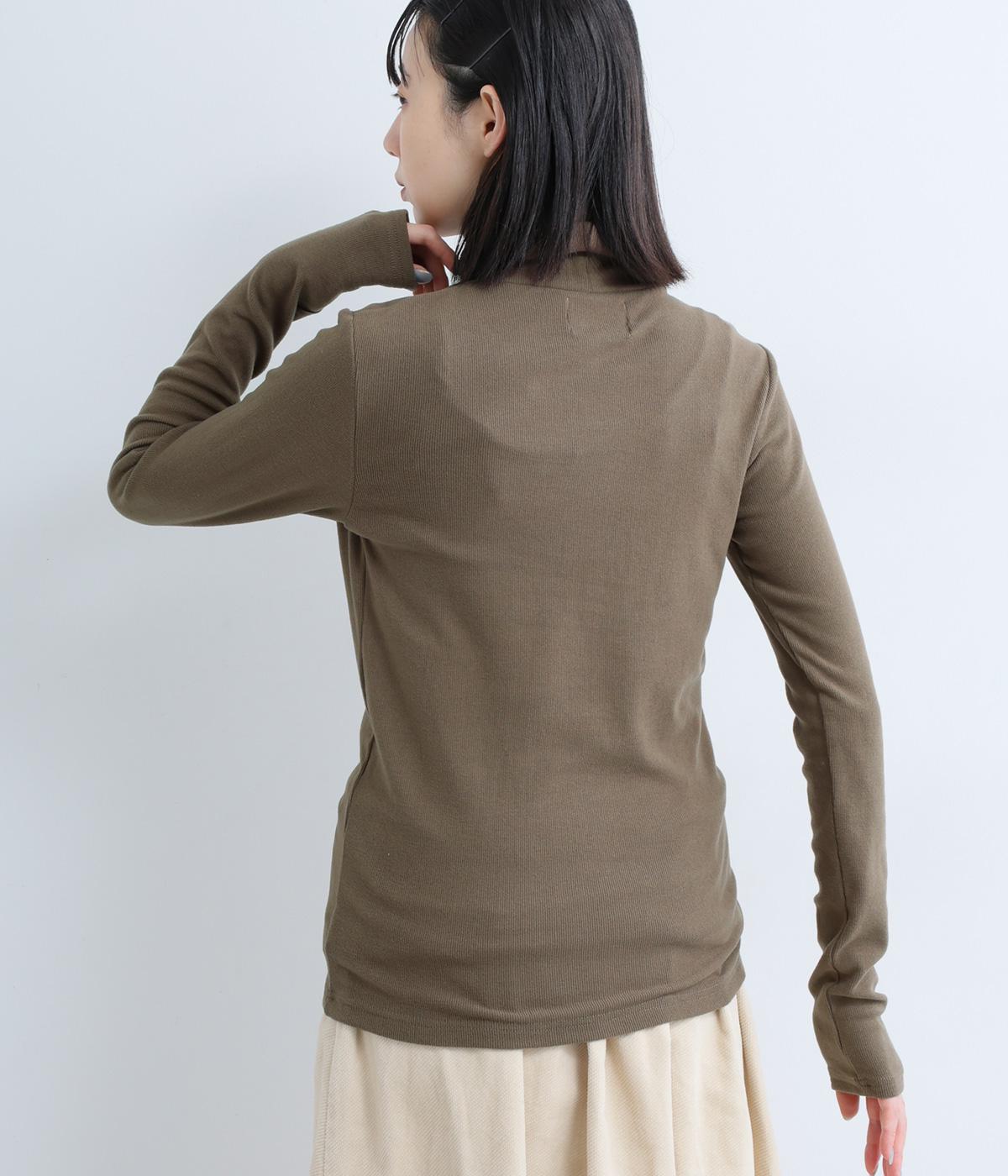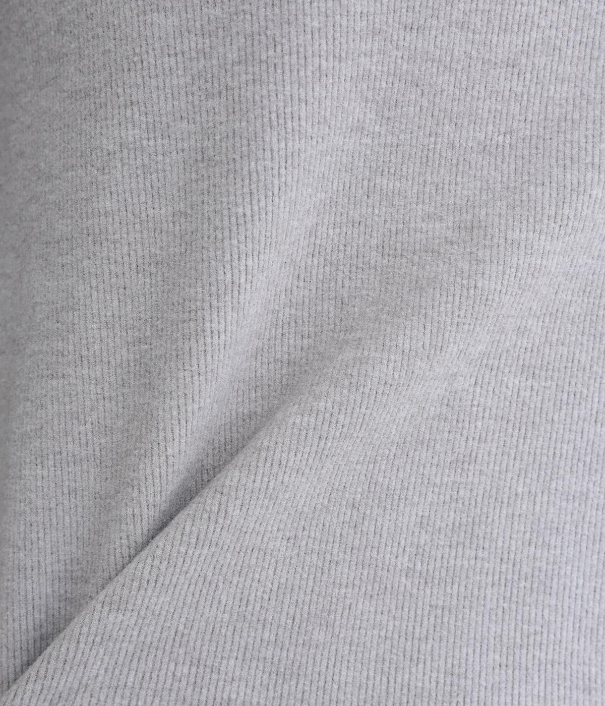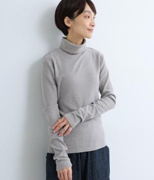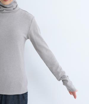極細のリブでていねいに編み上げられた生地は、軽くやわらかで、ストレスのない着心地です。ふわっと空気を抱え込むような編地で、薄手ながらあたたかさをキープします。ほどよいフィット感で、デイリー使いにぴったりな素材です。