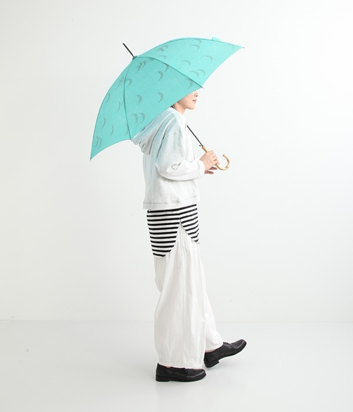 晴雨兼用がうれしい、ロングタイプの傘です。すっきりとした華奢なシルエットながら、特殊なバネ構造により強風にも耐えられる丈夫さを持っています。持ち手部分には竹を使い、ナチュラルな女性らしさをプラス。ジャンプ式の開閉で、使いやすさにもこだわりました。持ち手は天然素材を使用しているため、使用後は水分を拭き取り、室内で保管がおすすめです。