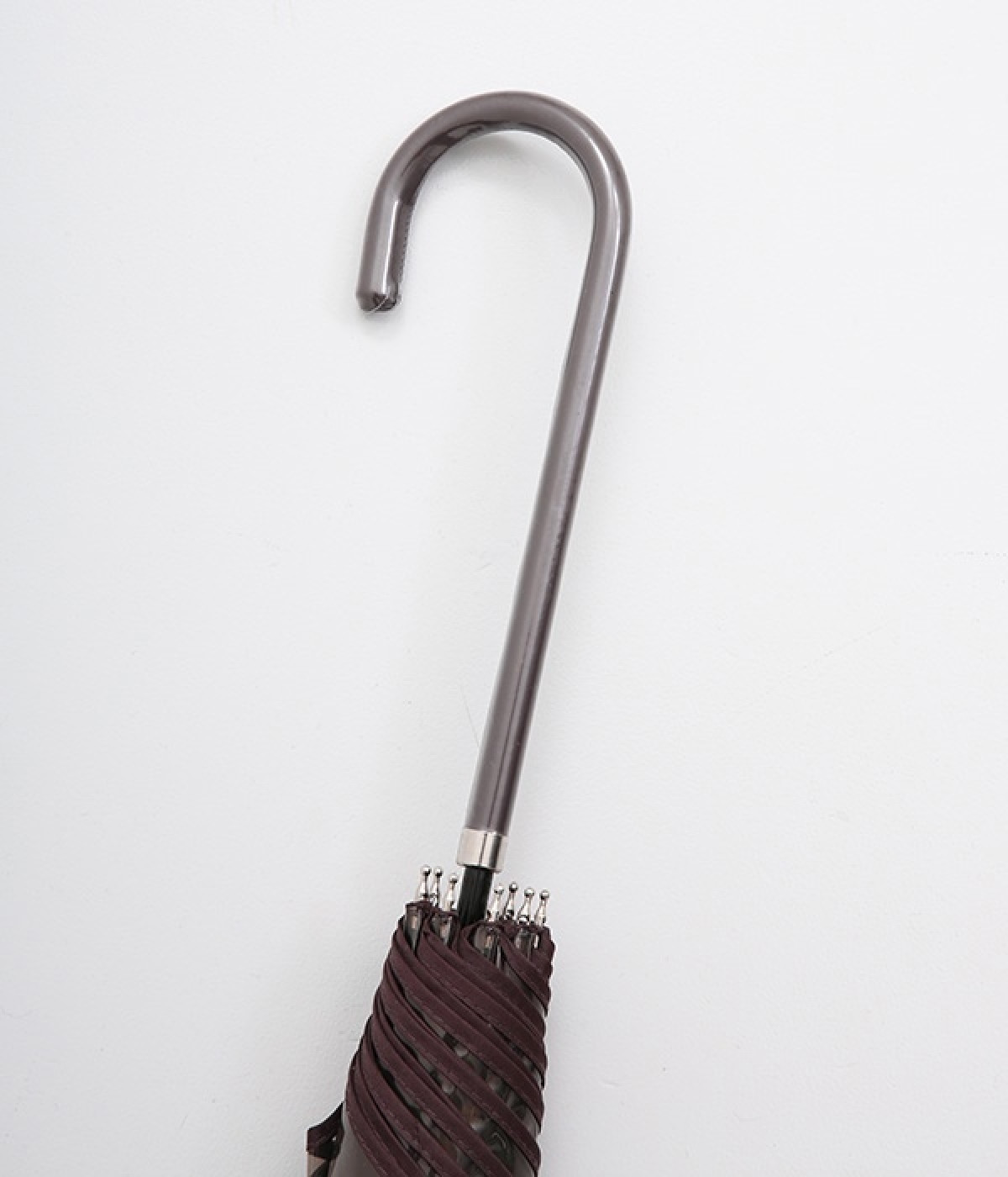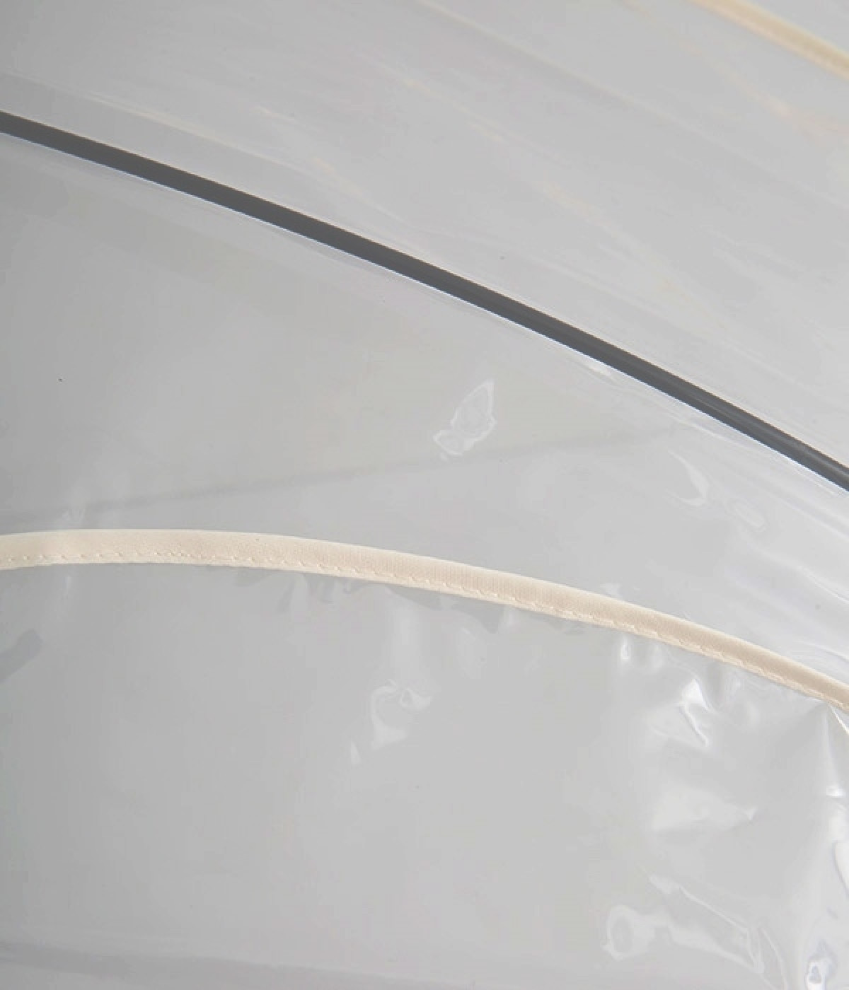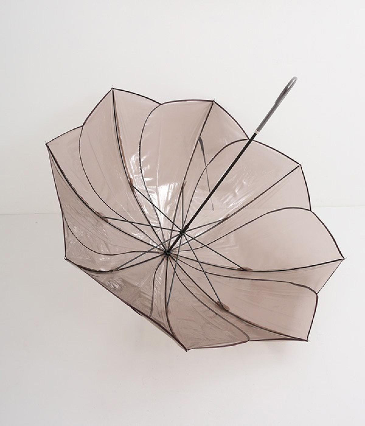 フラワーモチーフがパッと目を惹くビニール傘です。パイピングの配色がかわいらしく、シンプルながらも着こなしのアクセントになってくれます。落ち着きのあるカラーリングなのでコーディネートの邪魔をせず、そっと華やかさをプラスします。ハンドル部分は傘本体のカラーに合わせて、それぞれ異なるカラーの合皮を使用しています。