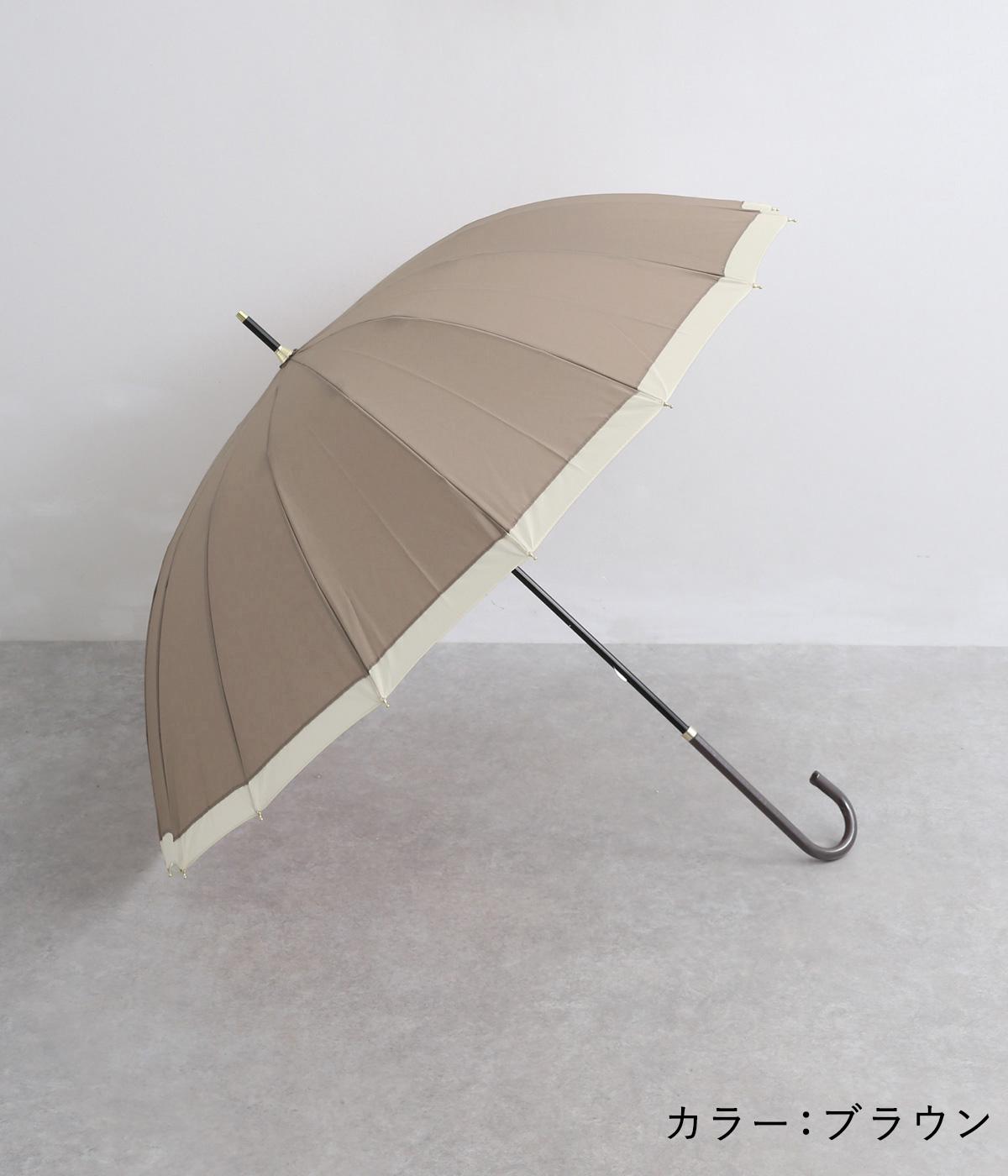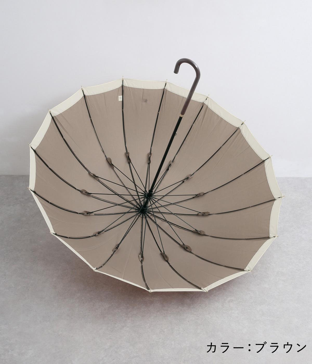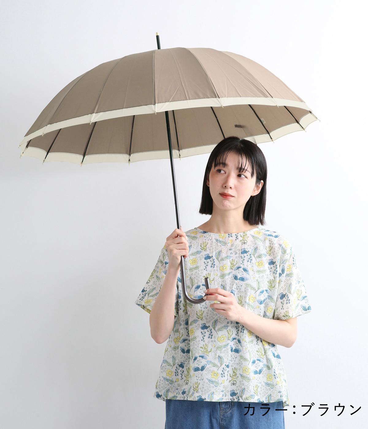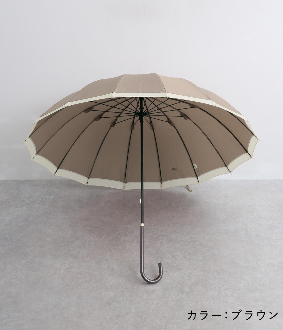 シンプルなバイカラーデザインでどんなスタイリングにも合わせやすい晴雨兼用長傘。軽くて丈夫なグラスファイバー骨を16本使用しているので壊れにくく、風の強い日も安心な頼もしいアイテムです。