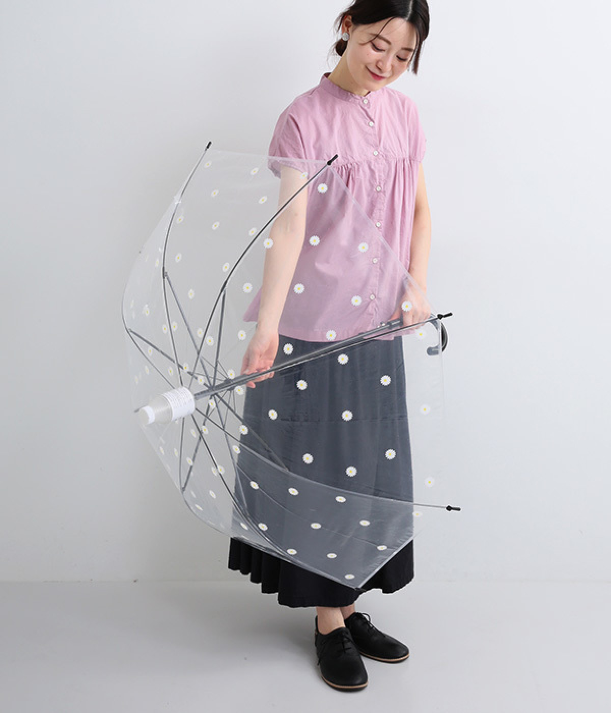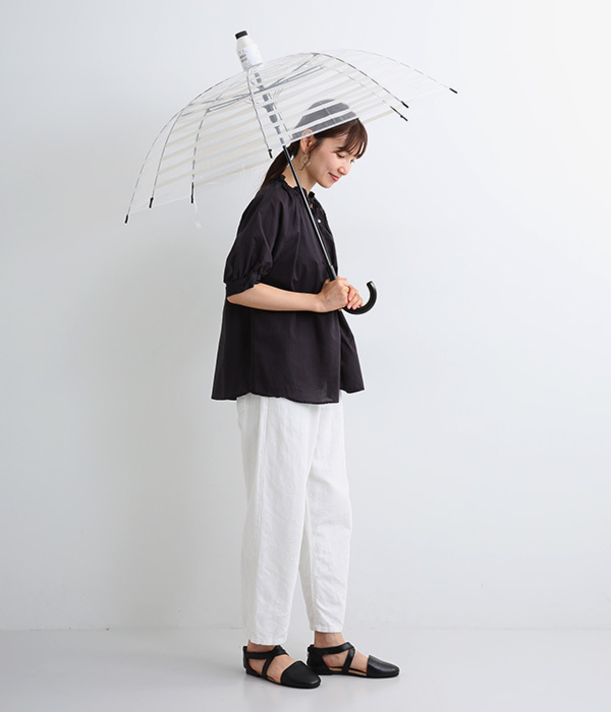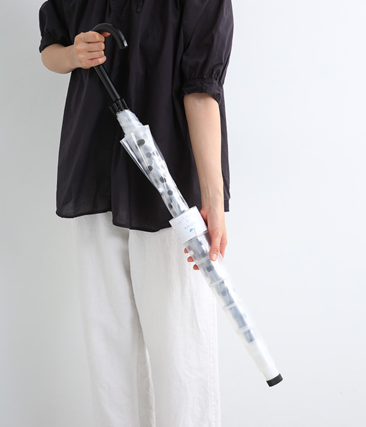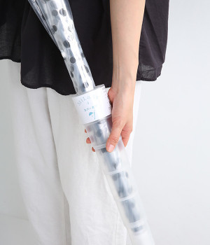 雨の日に畳んだ傘で、洋服やバッグ、床などが濡れるのを防いでくれるスライドカバーつきのビニール傘。混雑した電車やバス、屋内で、サッとカバーをスライドするだけで装着できる嬉しい簡単仕様です。店頭に置いてある傘用袋を使わずに済むので環境にも◎。傘の開閉はワンプッシュ手動式。透明ビニールを使用しているため視界も良好です。溜まった水はキャップを外すだけで簡単に抜くことができます。